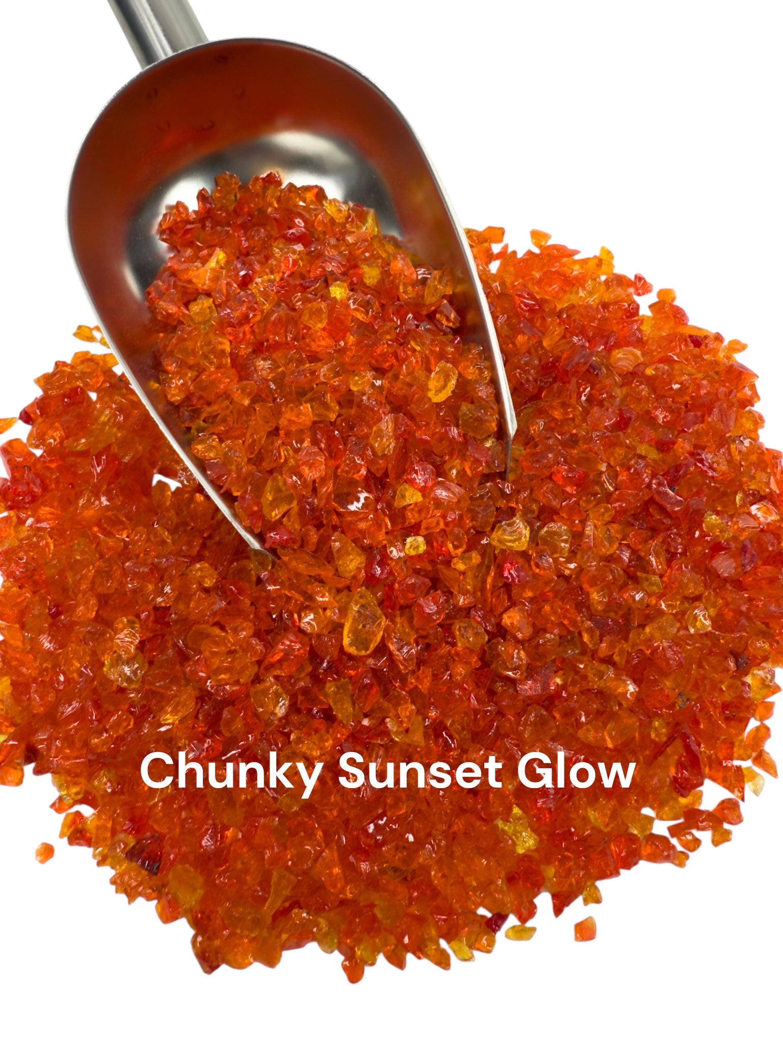 Add strength and elegance to your glass art projects with our 3-6 mm size CHUNKY Sunset Glow Crushed Glass.