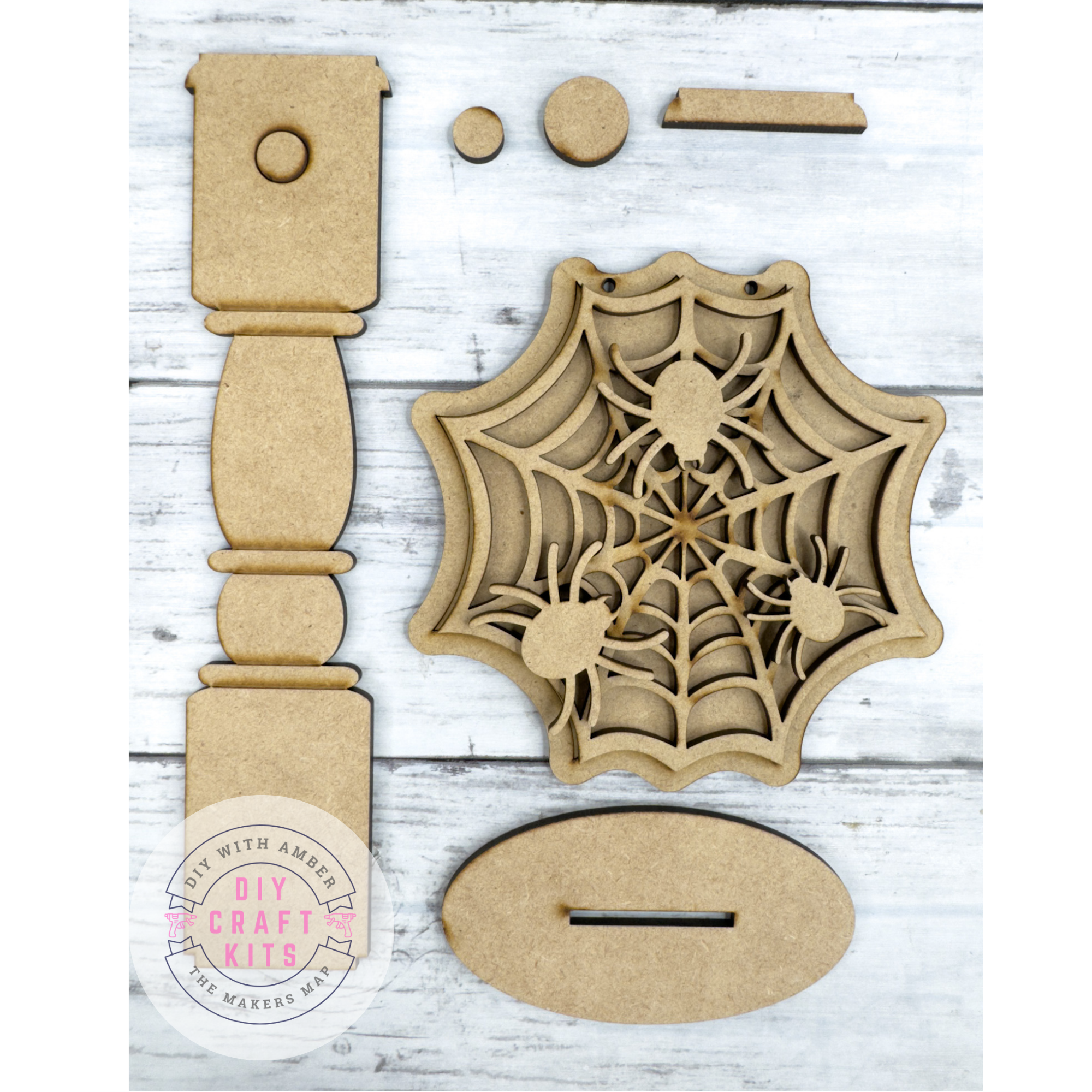 Get crafty this Halloween with our Spider Web Sign DIY Kit! Featuring layered spiders and a web design, this kit includes a stand so you can display it on a shelf, mantel, or tiered tray. The perfect DIY project for crafters, Halloween lovers, and spooky décor fans!