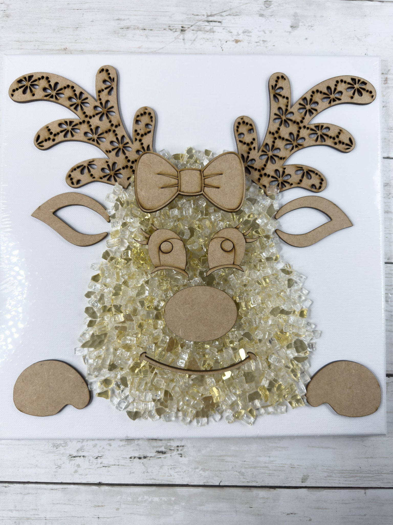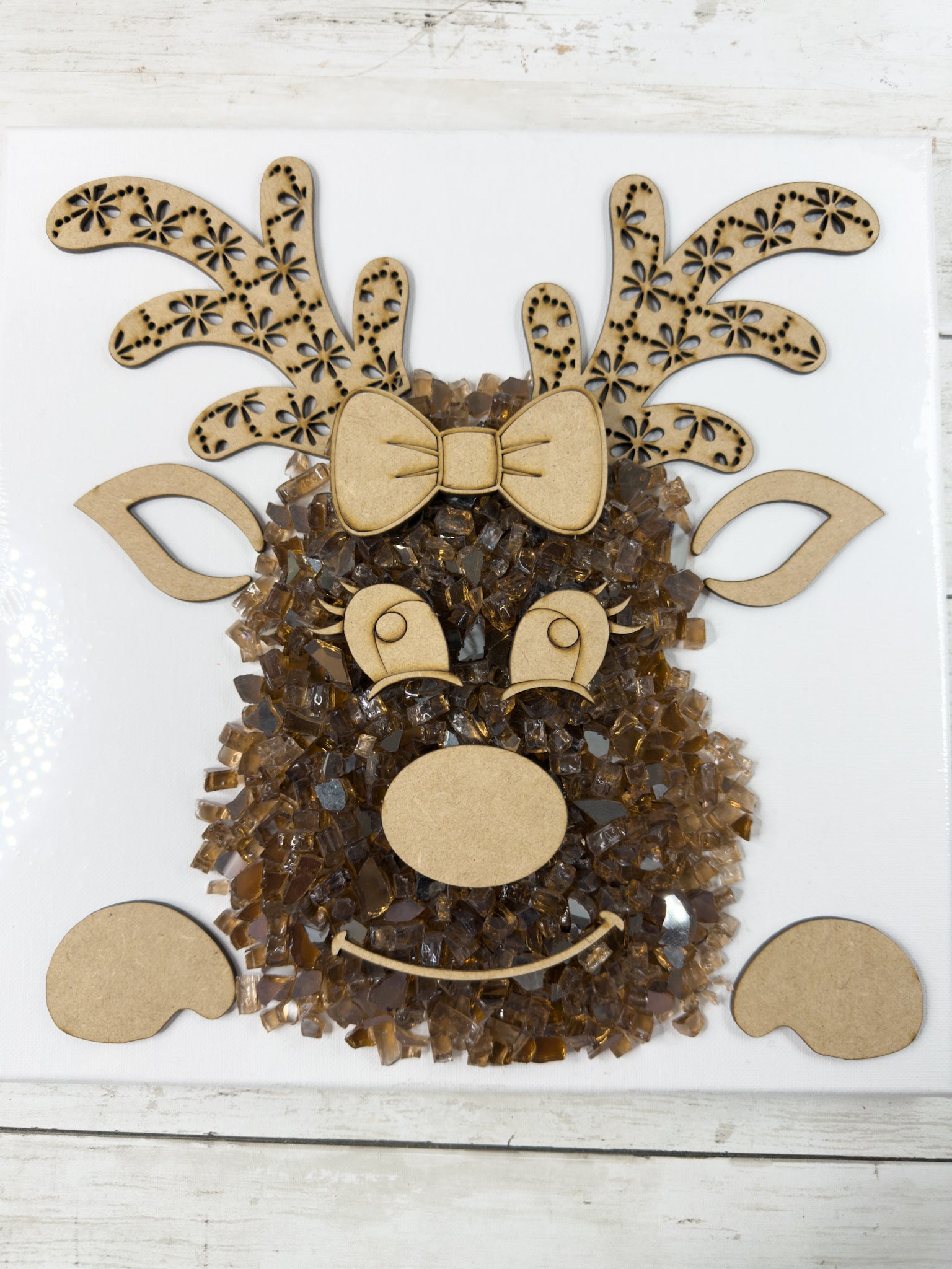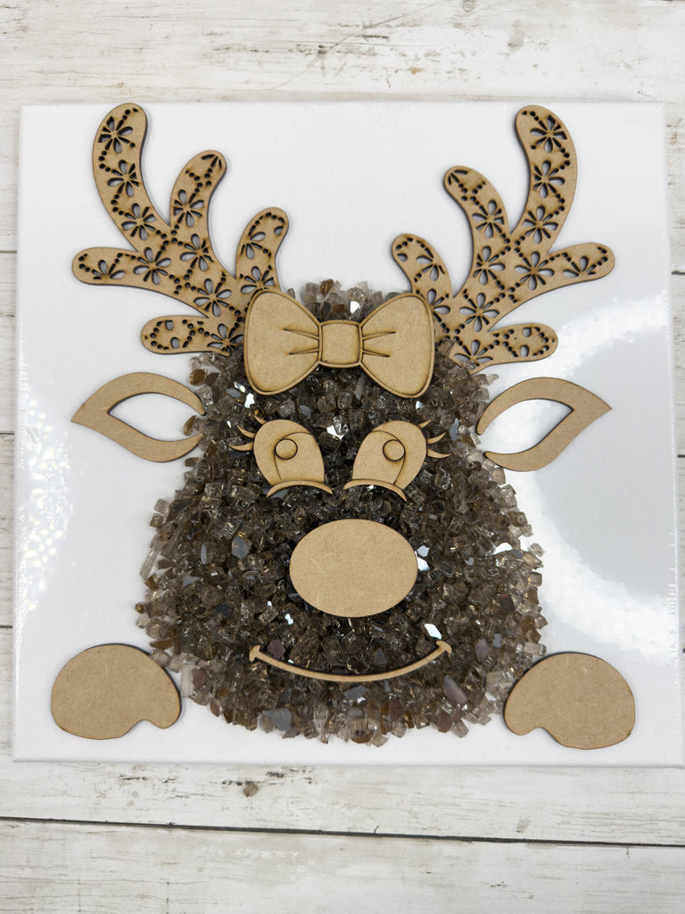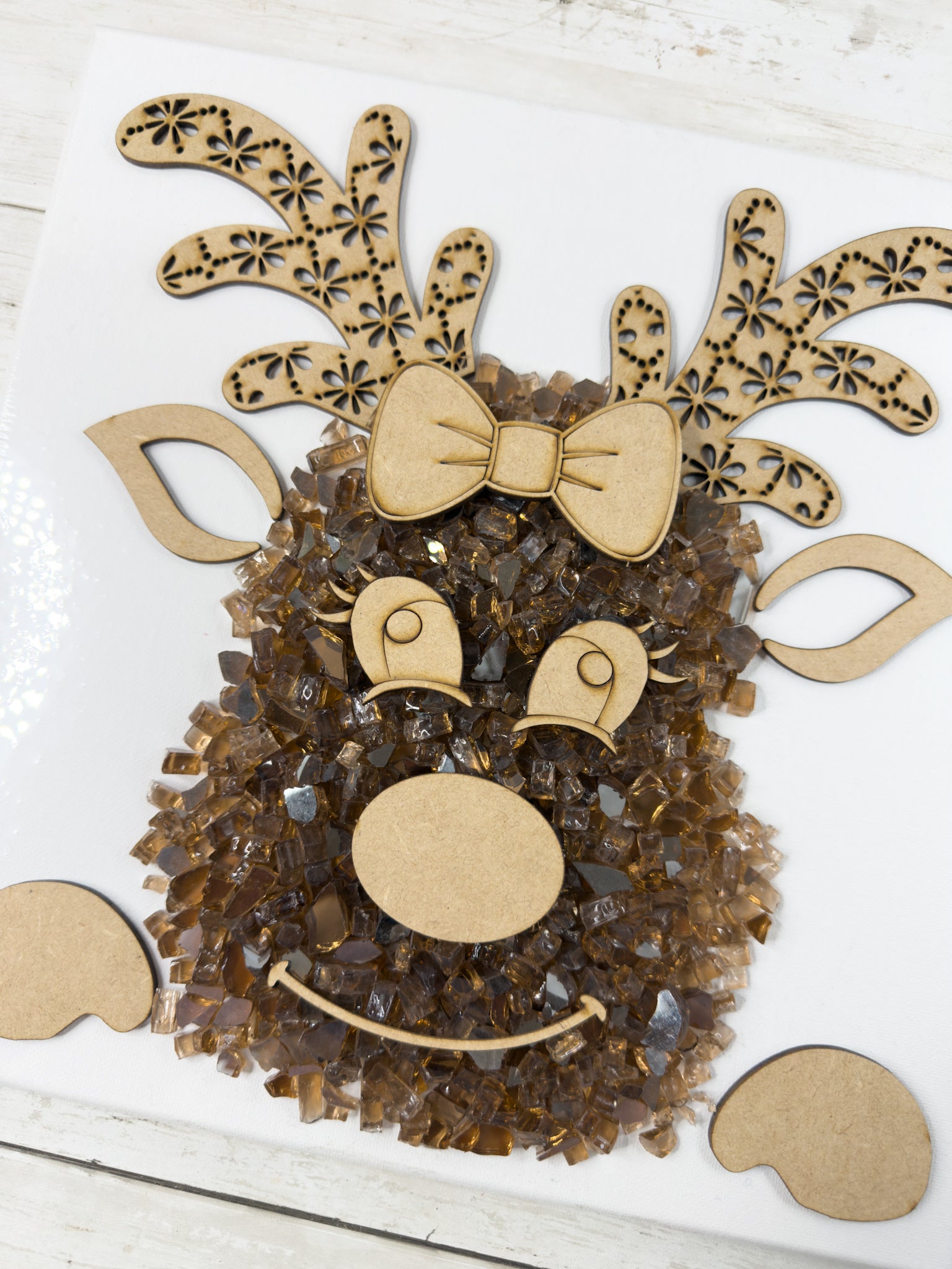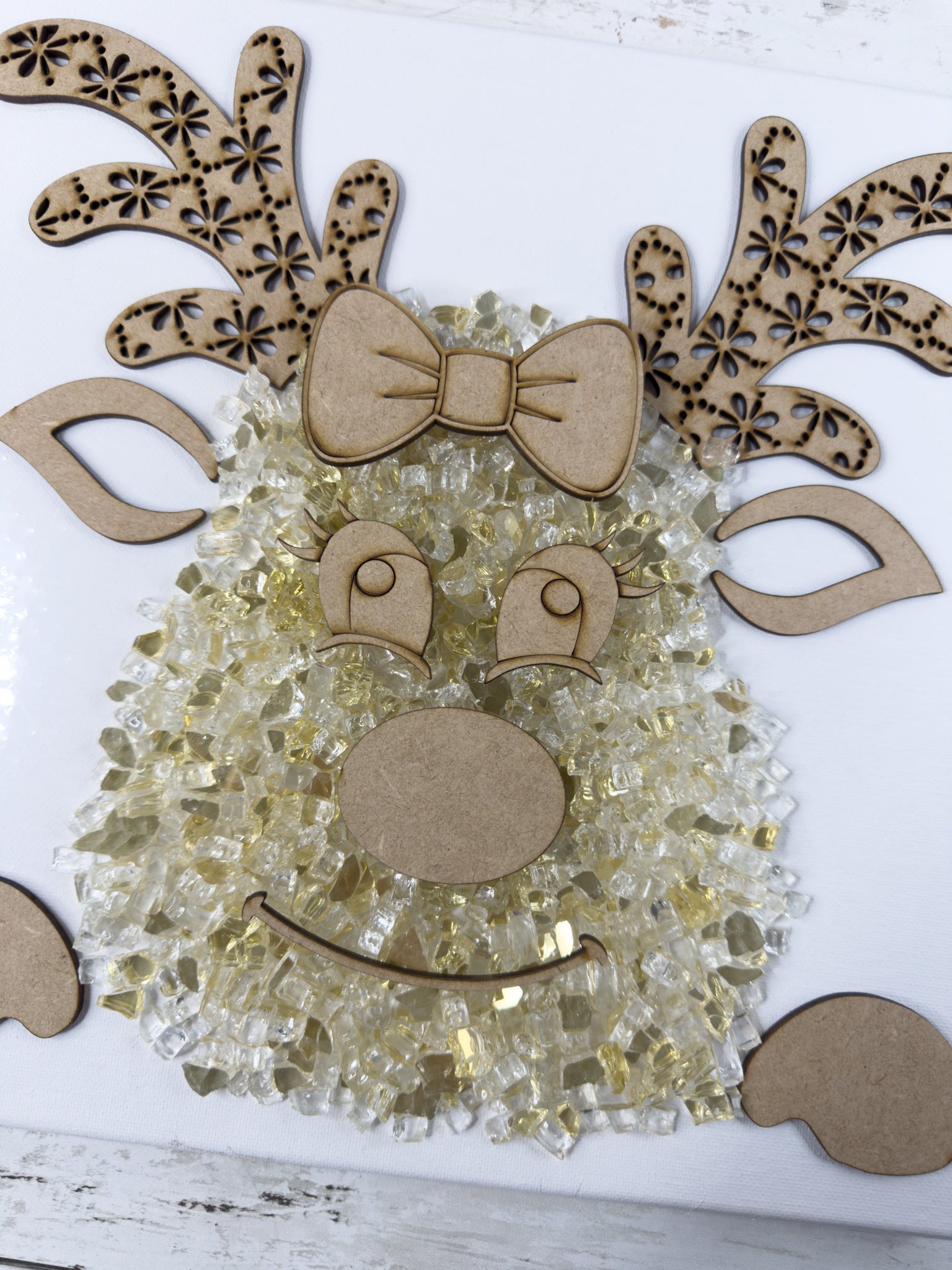 Create beautiful crushed glass Reindeer canvas art with this kit. Example shown has Bronze, Copper, Gold, Rose gold platinum glass shown. purchase Resin here