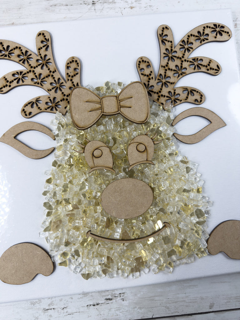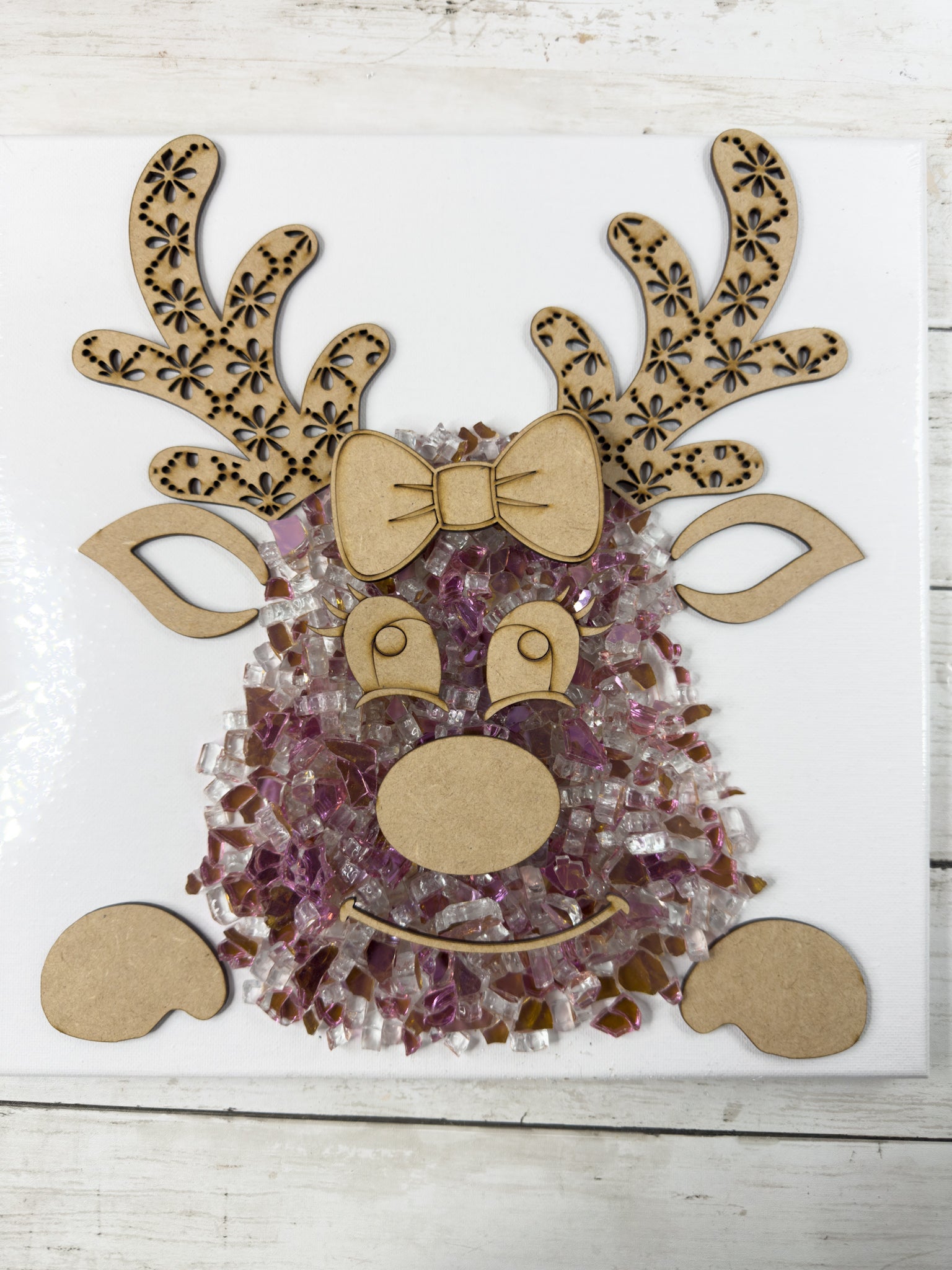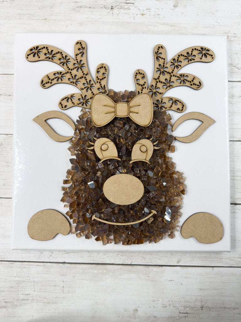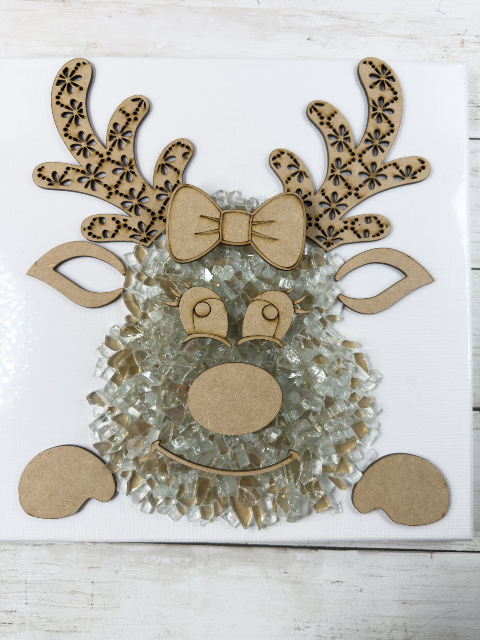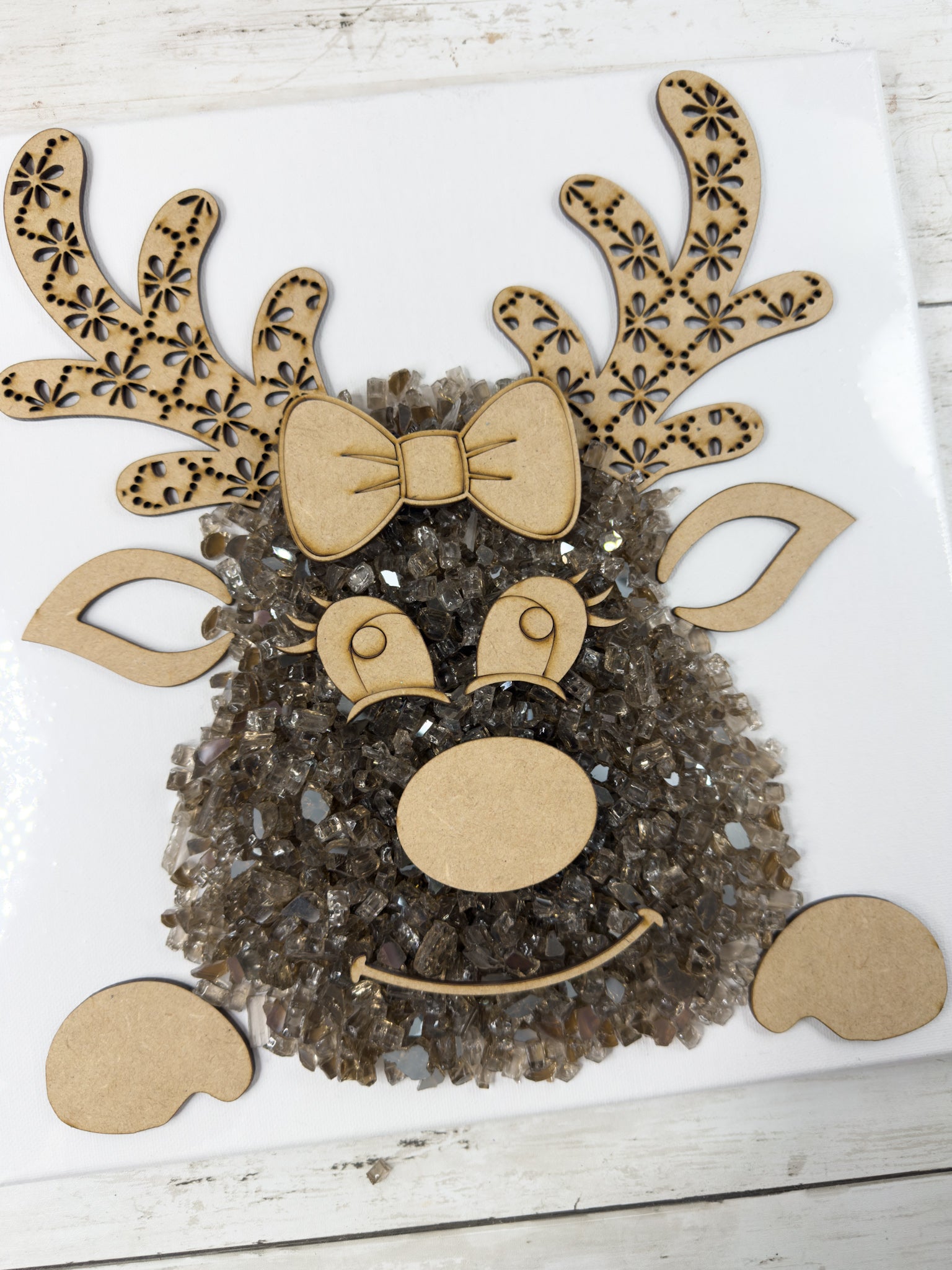 Create beautiful crushed glass Reindeer canvas art with this kit. Example shown has Bronze, Copper, Gold, Rose gold platinum glass shown. purchase Resin here