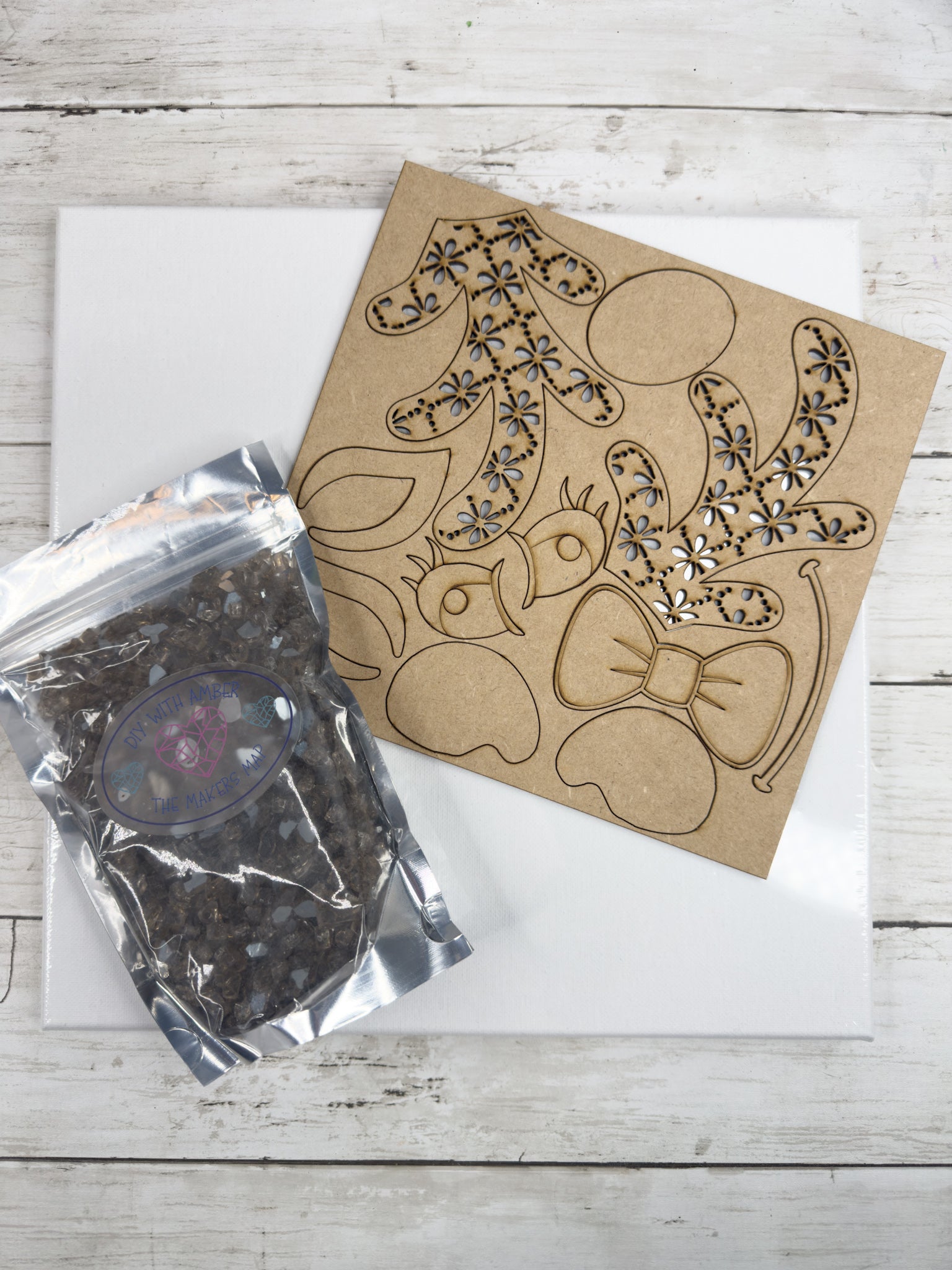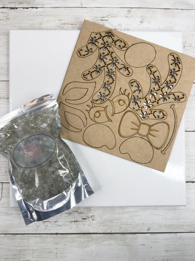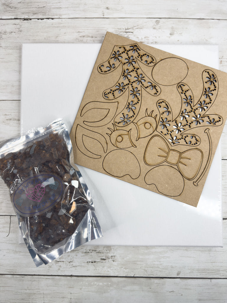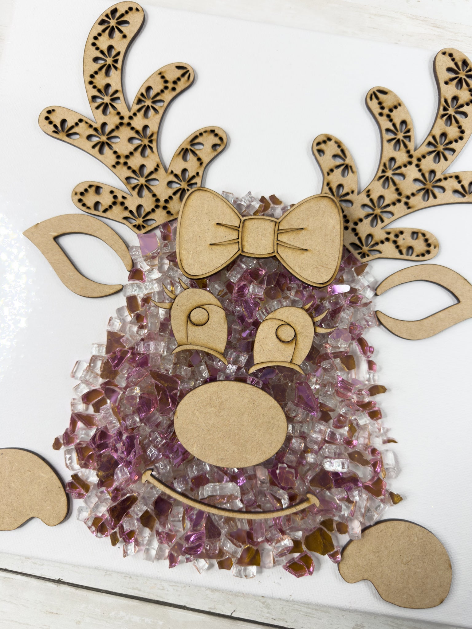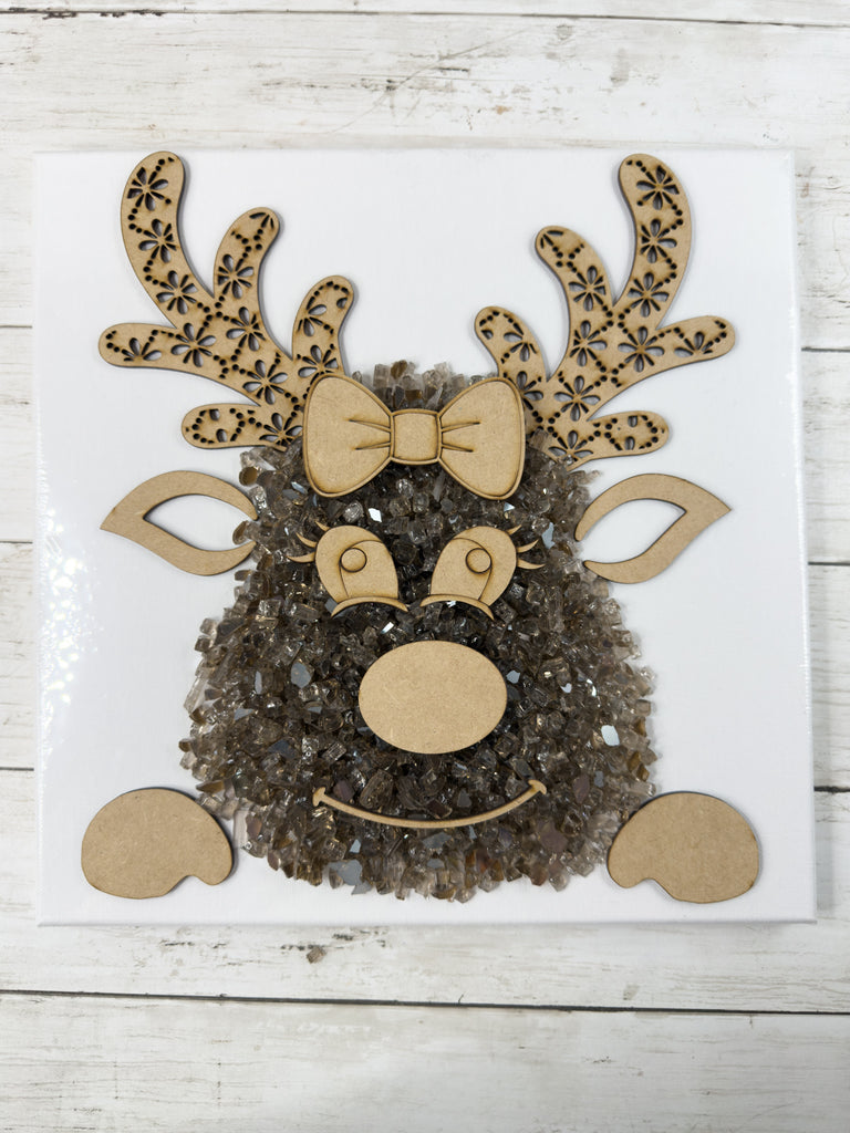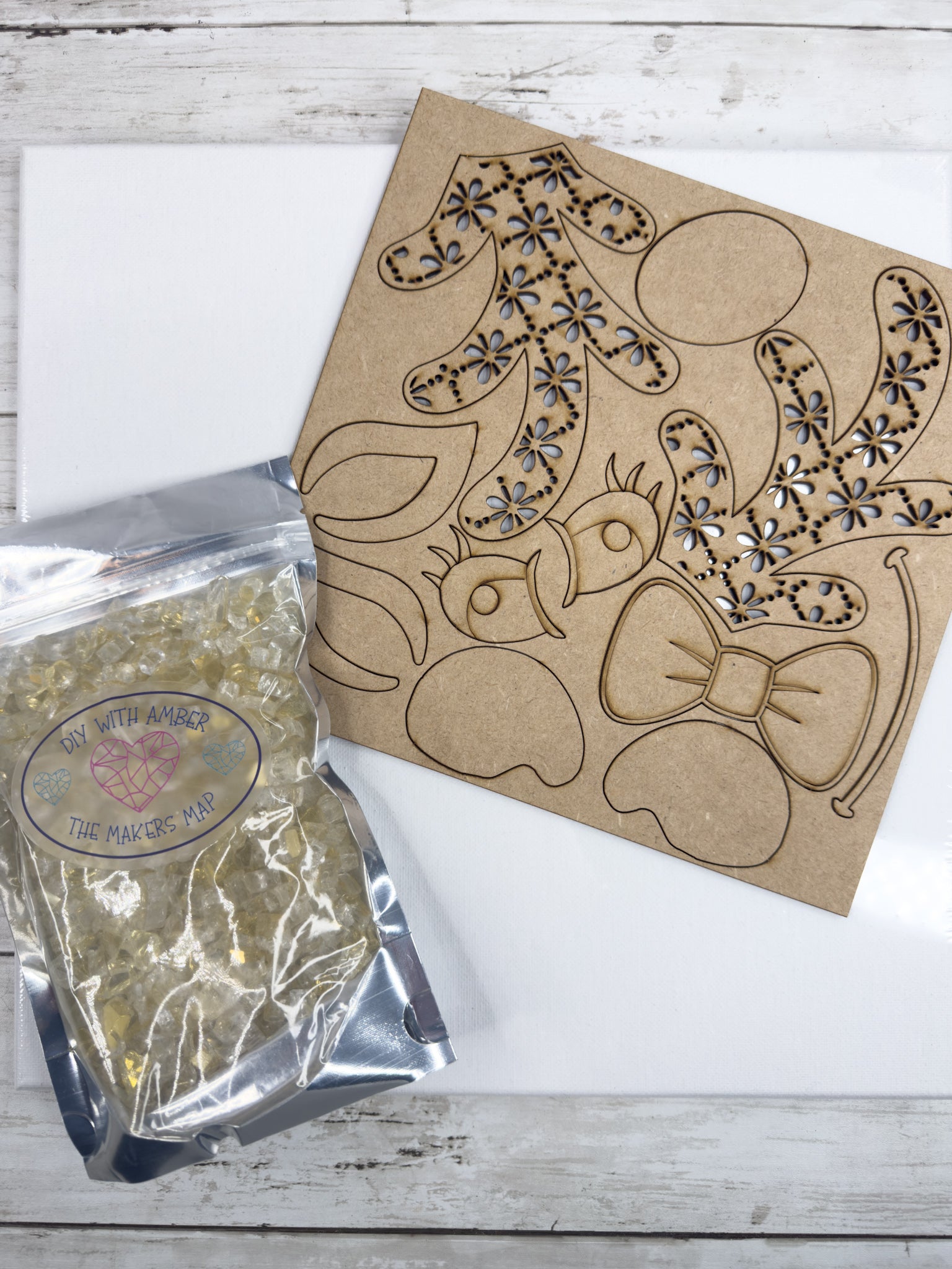 Create beautiful crushed glass Reindeer canvas art with this kit. Example shown has Bronze, Copper, Gold, Rose gold platinum glass shown. purchase Resin here