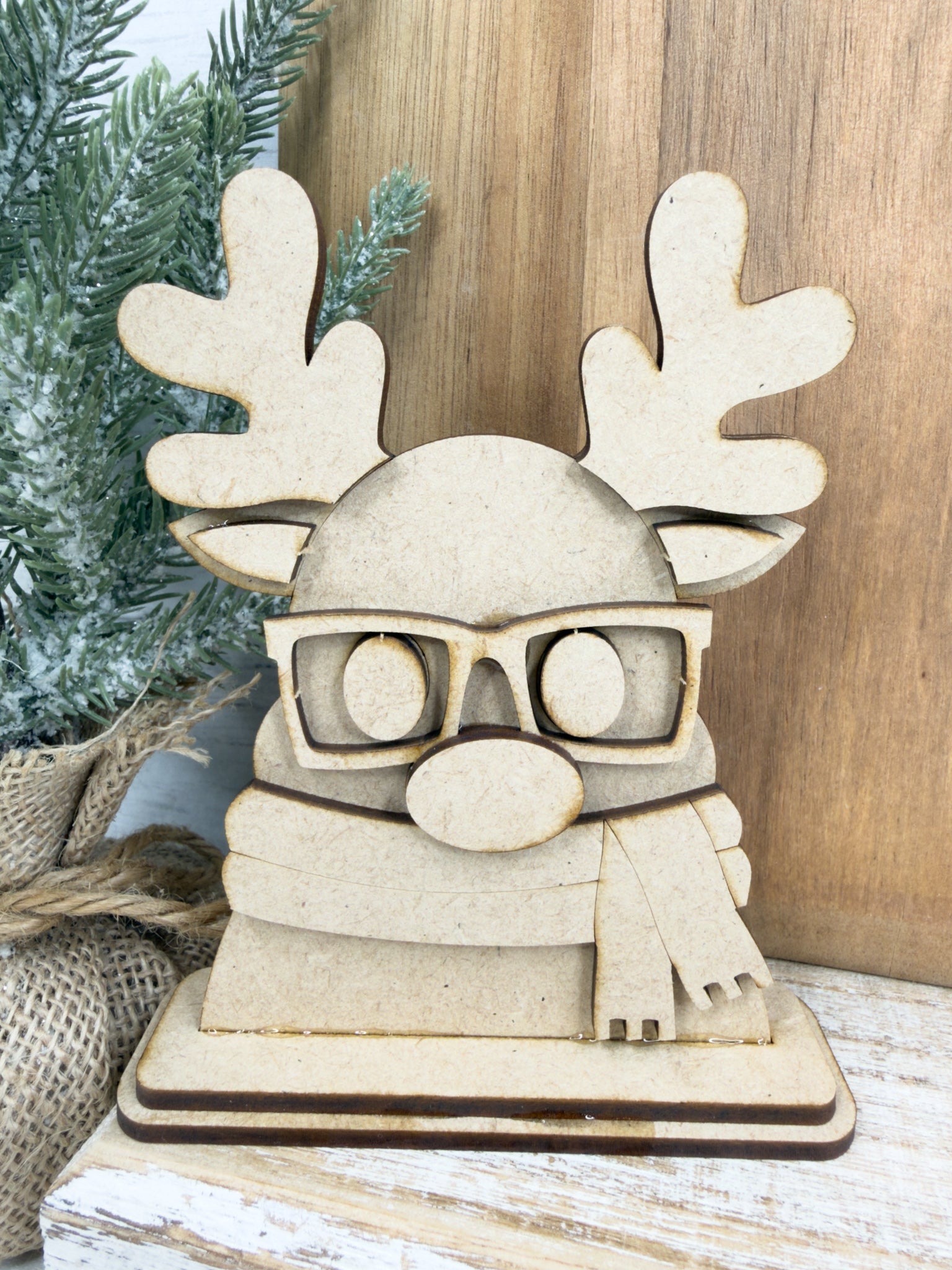 This stylish reindeer is rocking a cozy scarf and oversized glasses — perfect for modern, whimsical, or farmhouse holiday setups. Whether you paint it in bold colors or keep it rustic and natural, this piece makes a fun and trendy addition to your seasonal display.