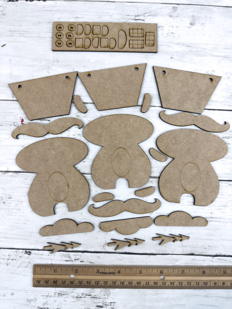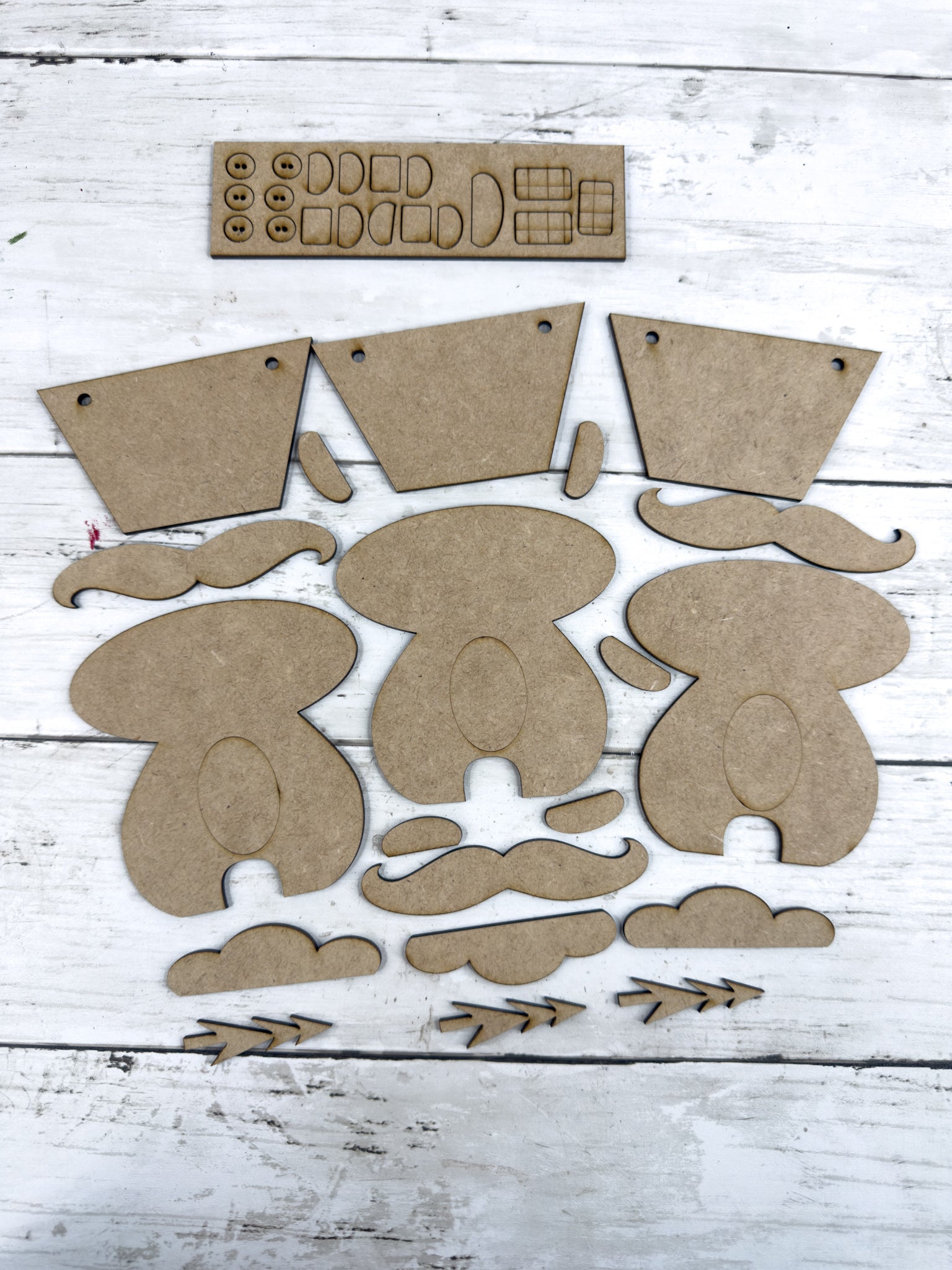 Add a touch of whimsical charm to your Christmas tree with this Wonky Nutcracker Ornament Kit! This set includes three primitive-style nutcracker ornaments, each with layered details, mustaches, and mini Christmas trees for that rustic, handmade holiday feel.