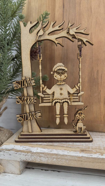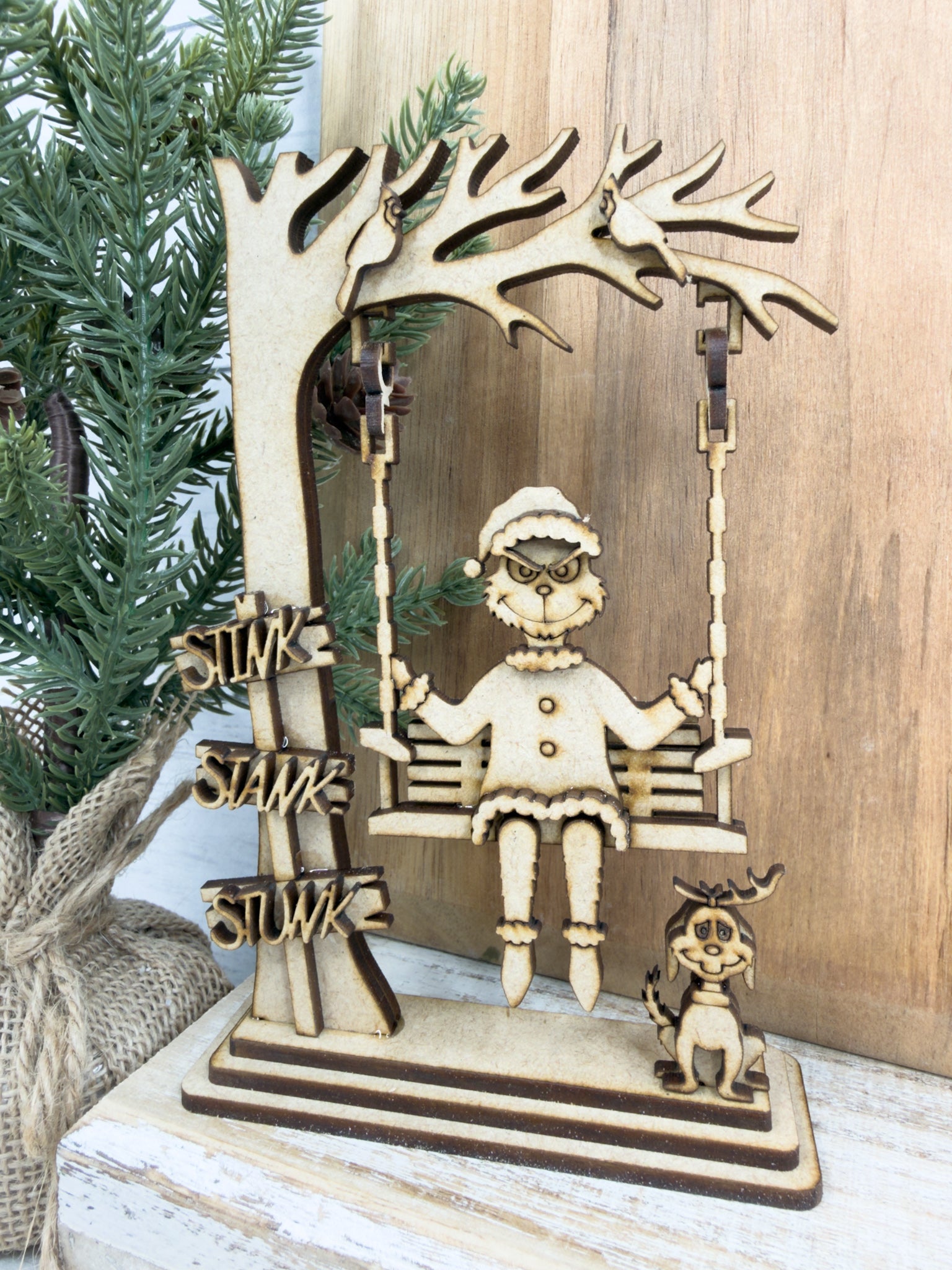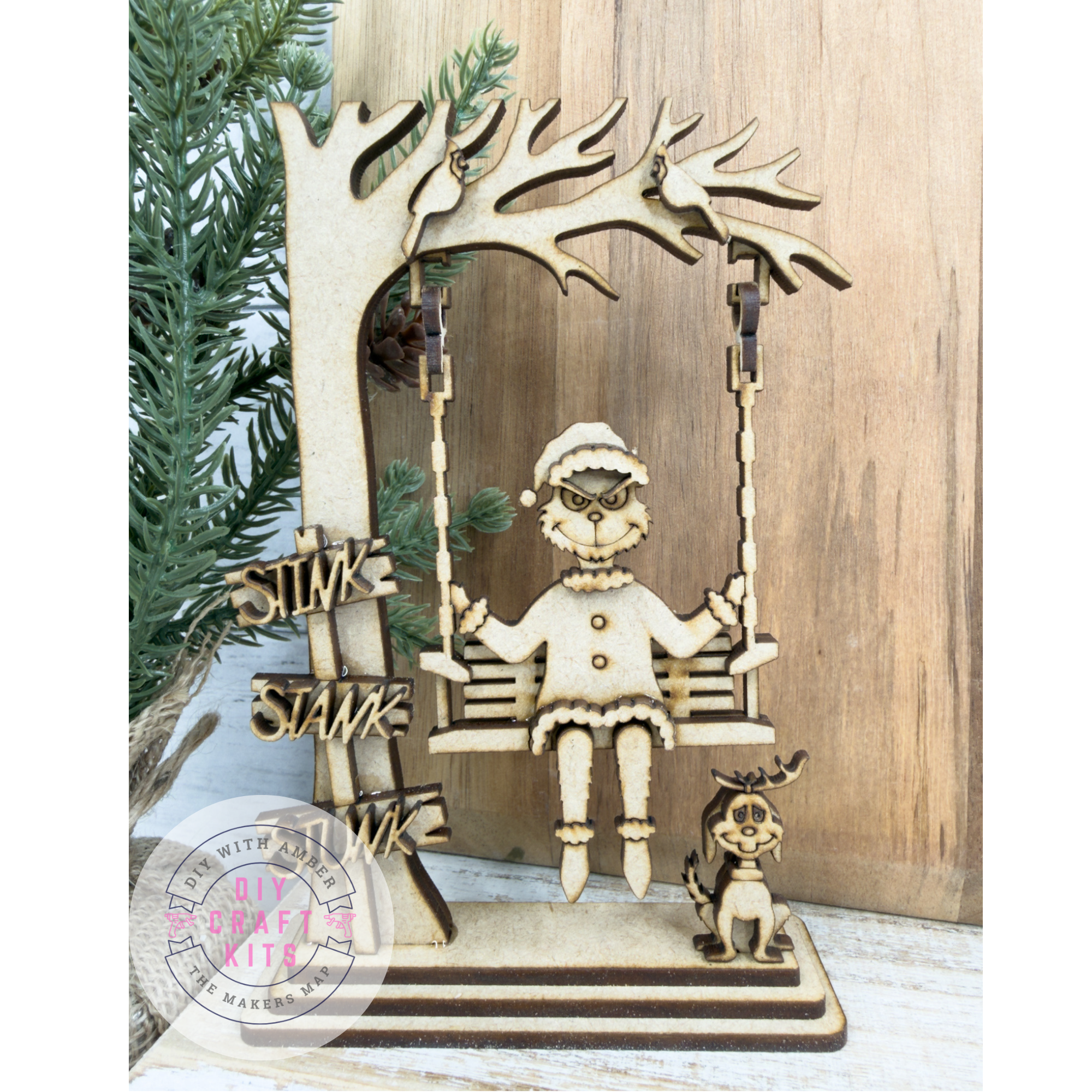 Bring a festive vibe to your christmas décor with this Swinging Stink Stank Stunk green guy DIY Craft Kit! This unique shelf sitter features a green guy and his reindeer dog while gently swinging — the perfect blend of holiday and cute.
