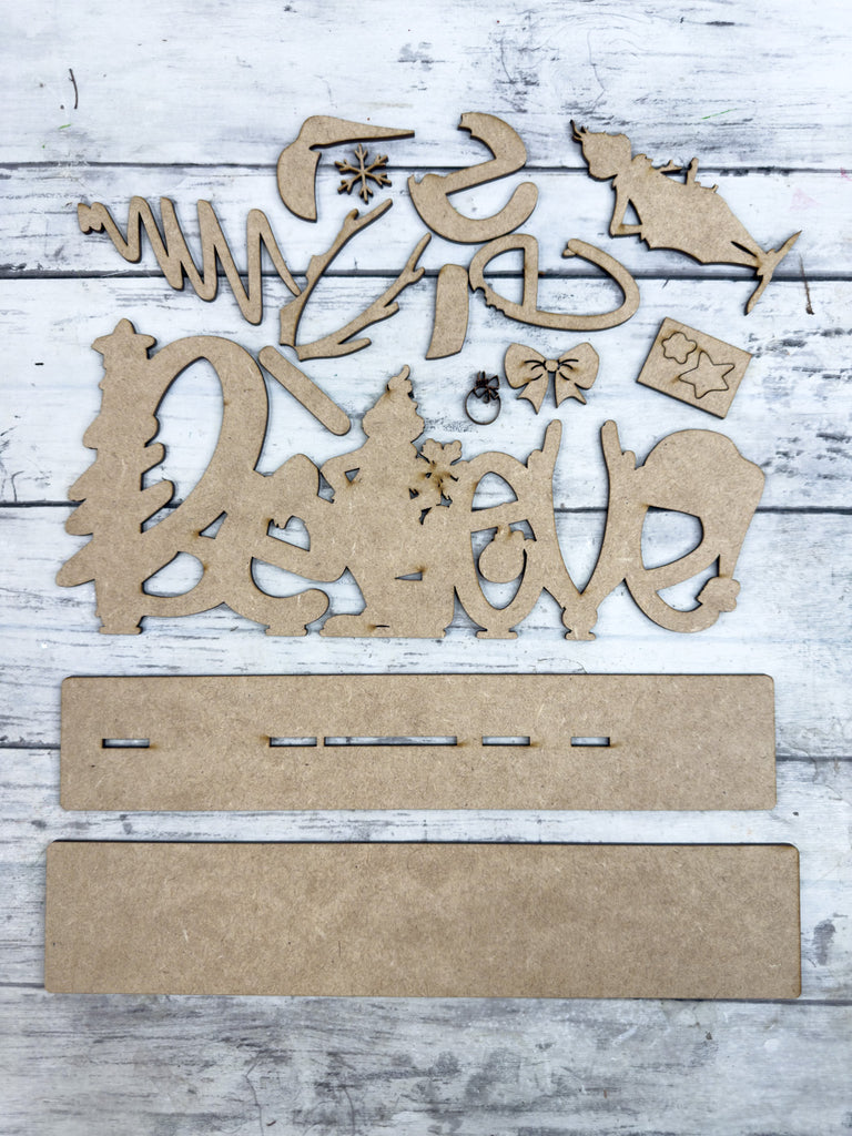 Each sign is laser cut from smooth MDF wood and ships unfinished, giving you the freedom to paint, stain, glitter, or embellish in your favorite holiday colors.