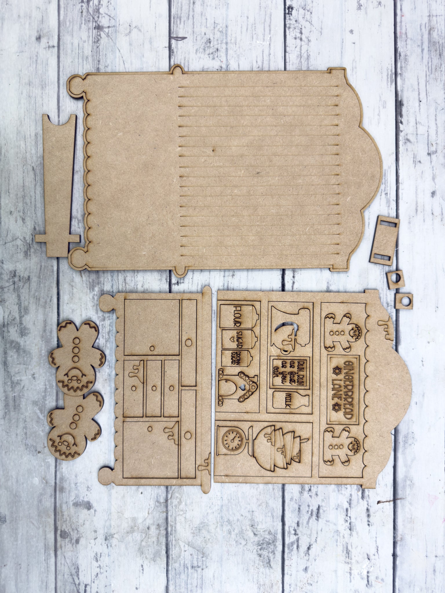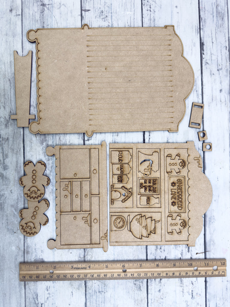 This kit does not include paint, glue, brushes, or any additional embellishments to complete the Mini gingerbread Christmas Hutch DIY Craft Kit.