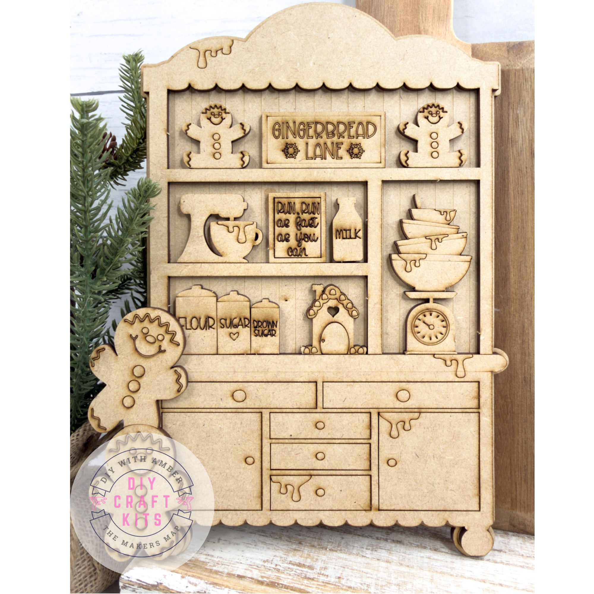 Add this adorable FANCY style Mini gingerbread Christmas Hutch DIY Craft Kit to your decorative dollhouse or shelves this Christmas!