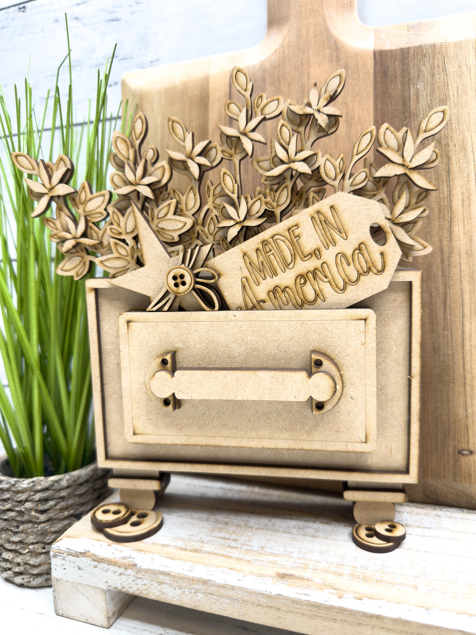 This paint-your-own craft kit includes the mdf wood blank insert for the interchangeable drawer Base DIY Craft Kit.