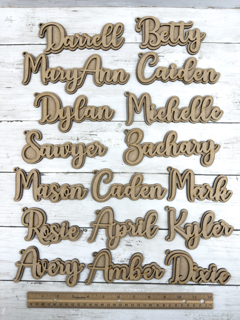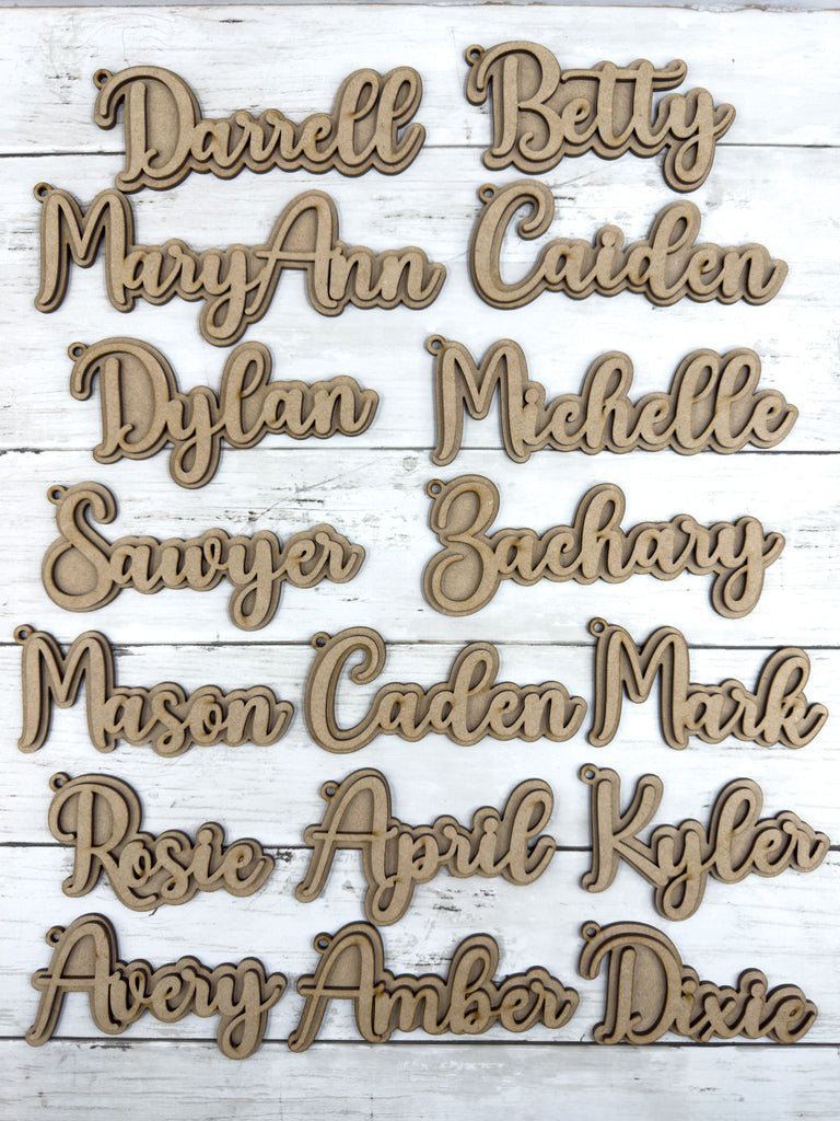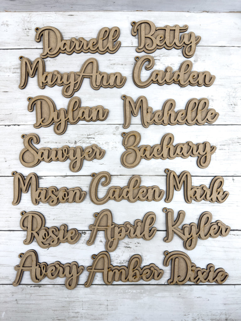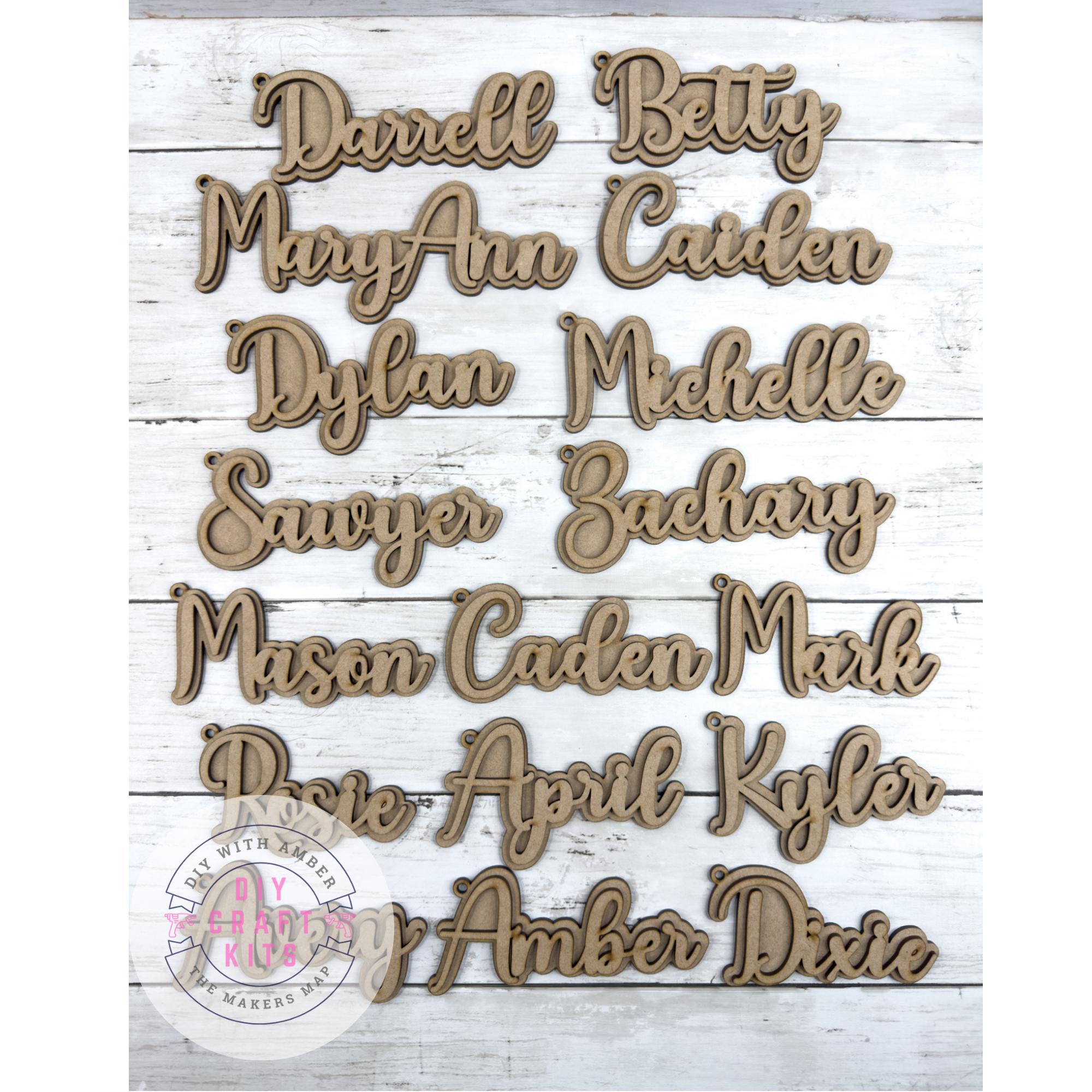 Personalized name and backer—a fun DIY ! Laser cut from 1/8” HDF, this kit features a custom single name detail with backer piece