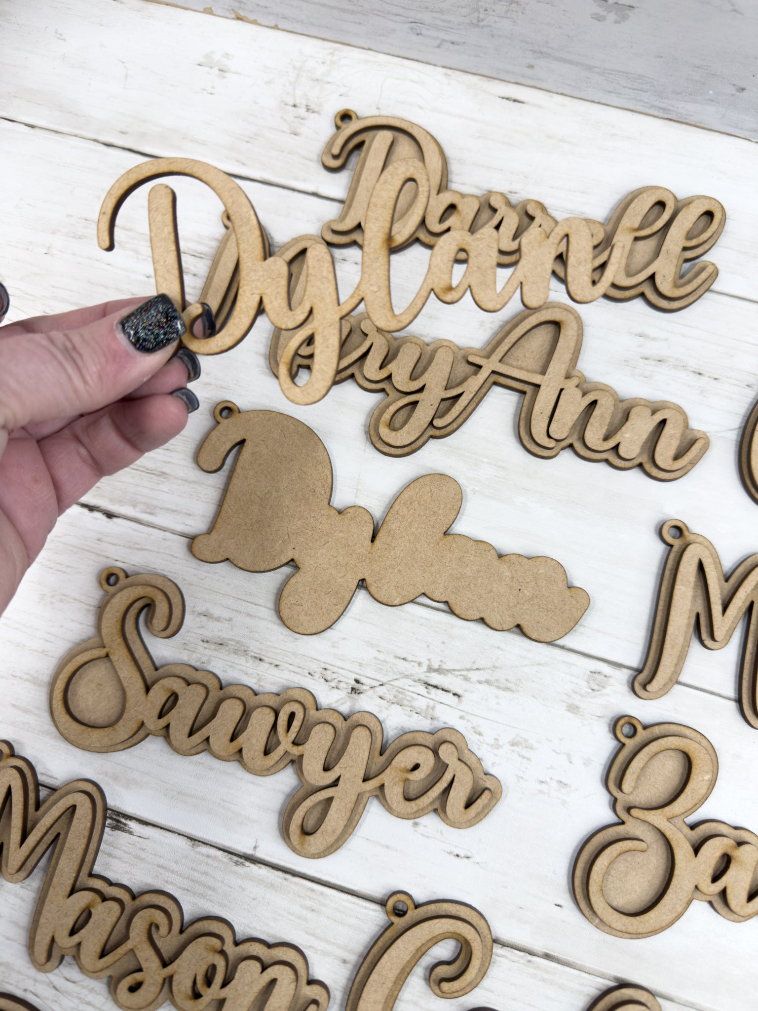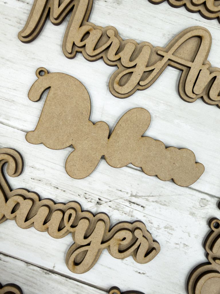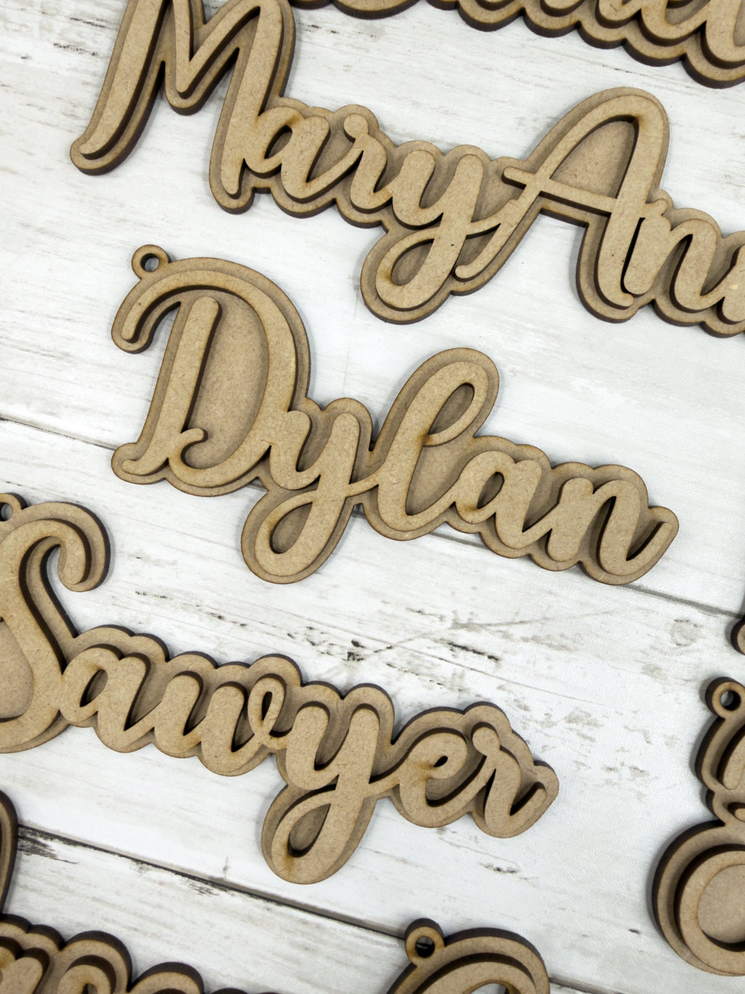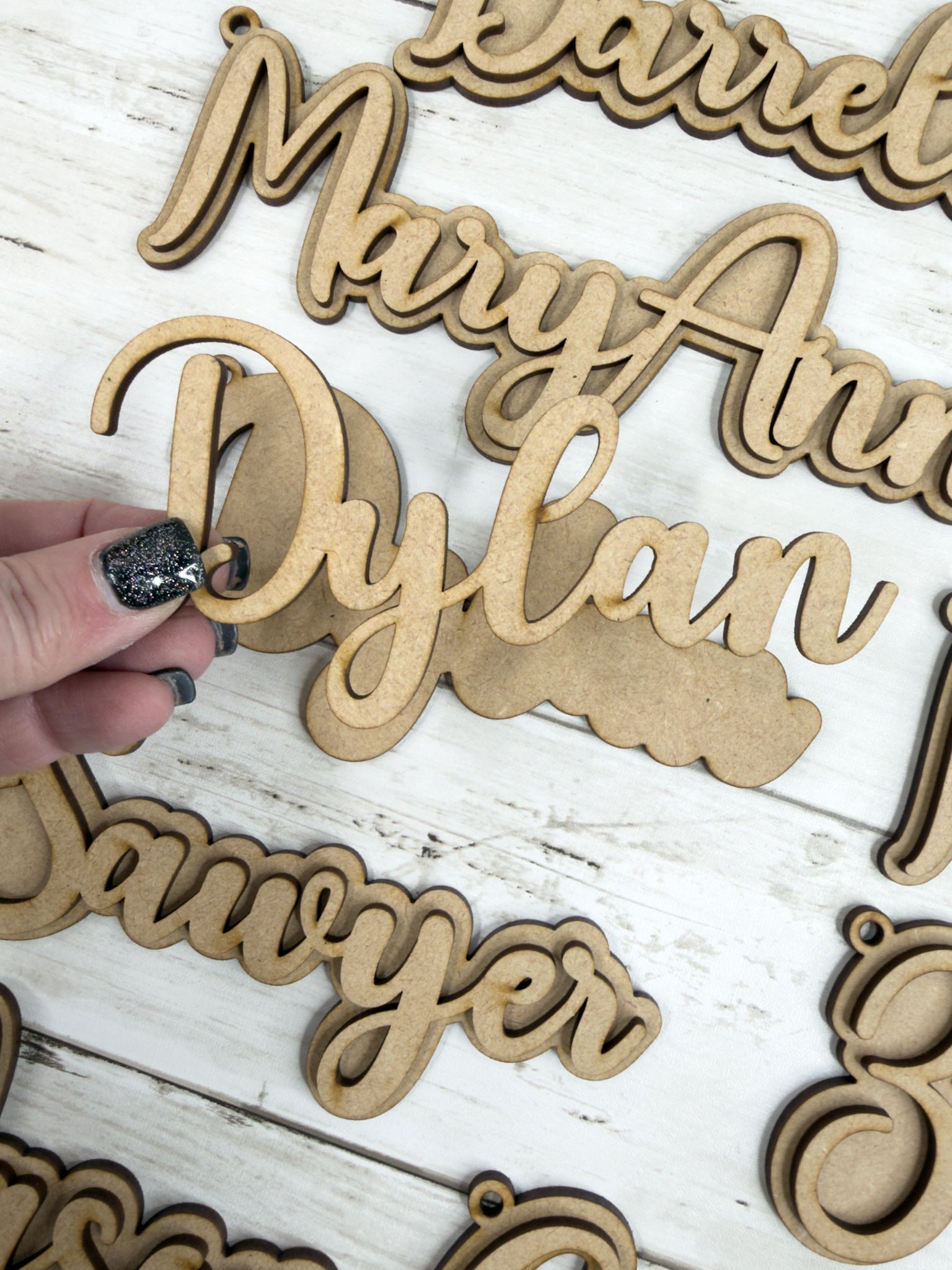 Personalized name and backer—a fun DIY ! Laser cut from 1/8” HDF, this kit features a custom single name detail with backer piece