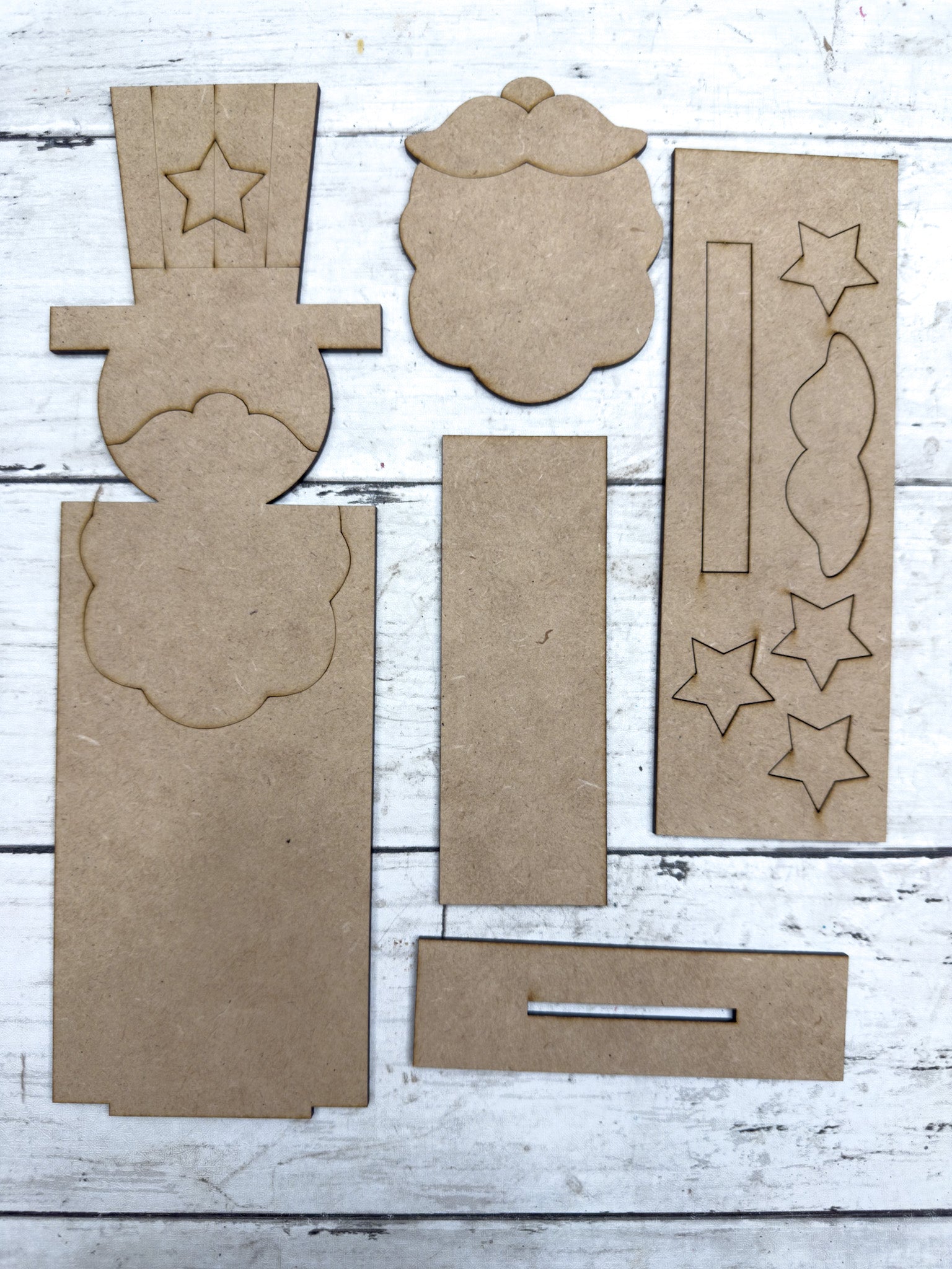 Go traditional with red, white, and blue or create a primitive look using muted tones, antiquing, and distressing techniques. Add shading around the stars and beard to really make the details pop.