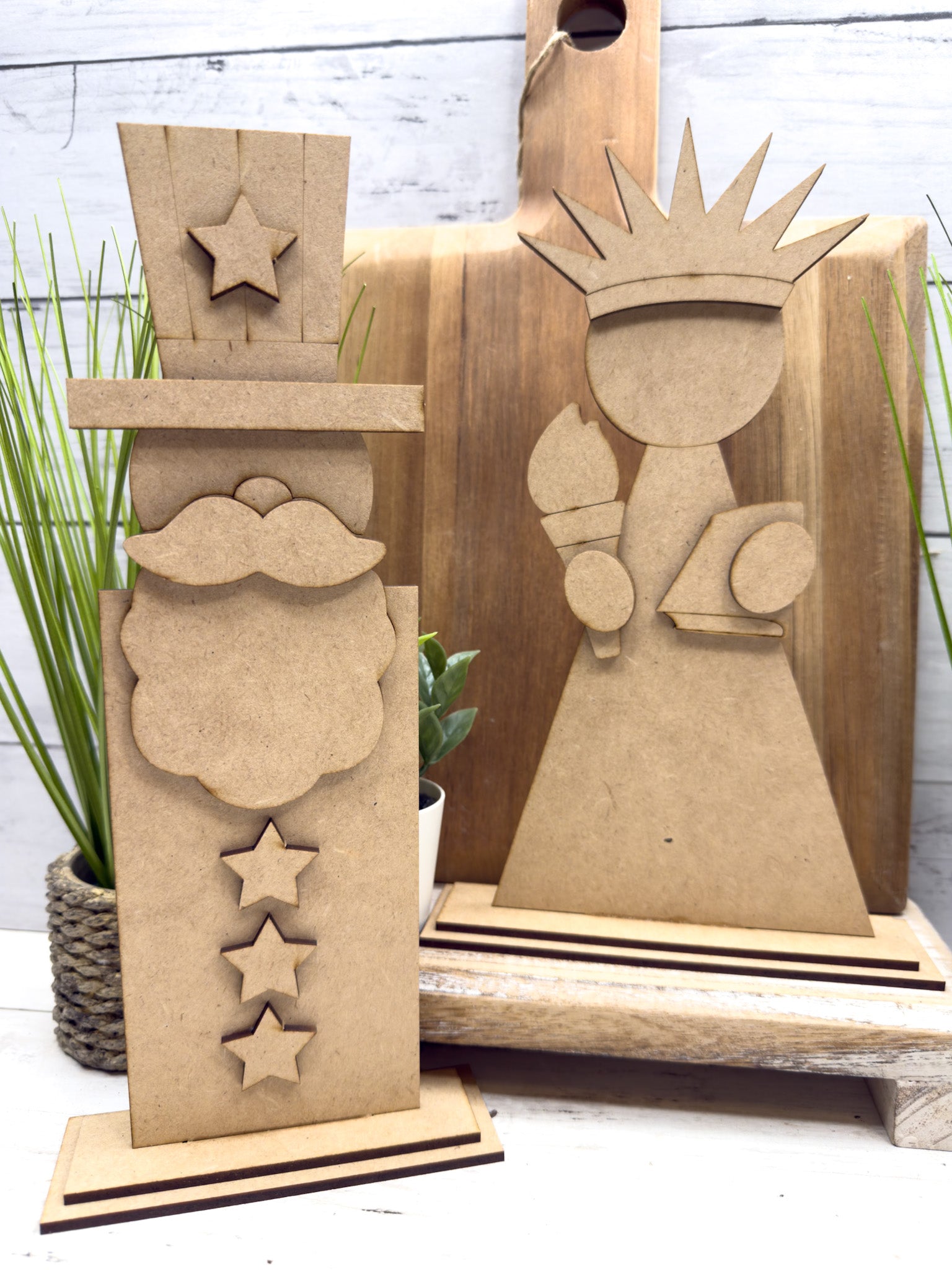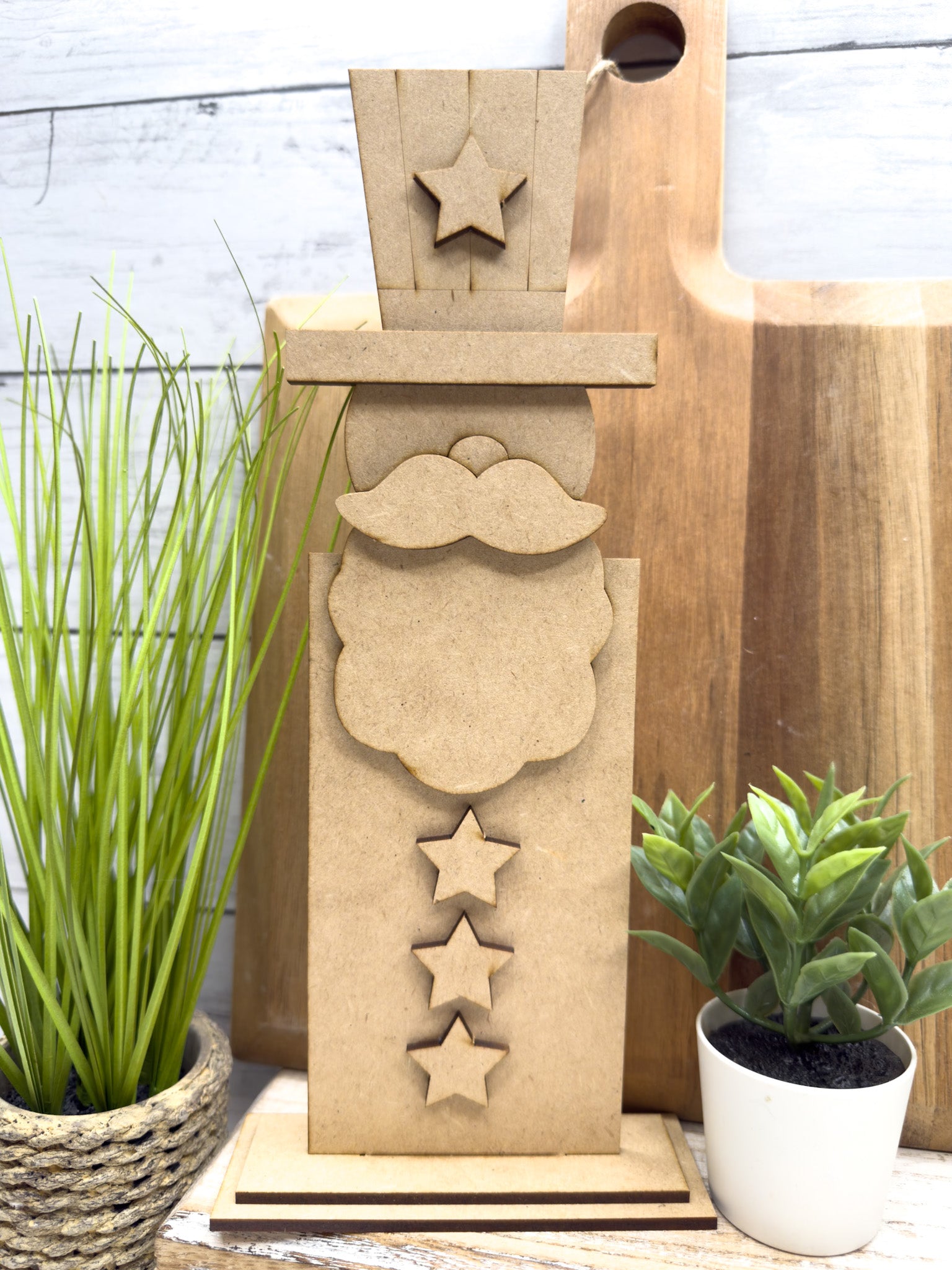 Bring a bold, rustic touch of Americana to your décor with this Primitive Uncle Sam Sitter DIY Kit! Featuring a classic top hat, mustache, and star details, this design has that timeless primitive charm your customers love.