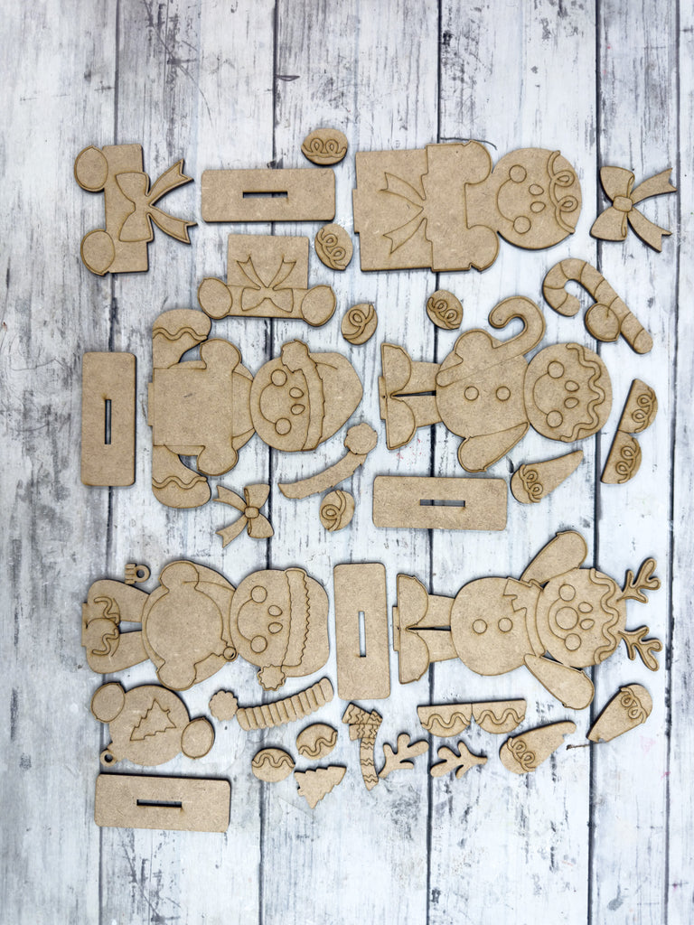Each figure is laser cut from smooth MDF wood and ships unfinished, ready for you to paint, stain, glitter, or embellish however you like. Display them on shelves, mantels, or as part of a centerpiece for a warm and festive Christmas touch.