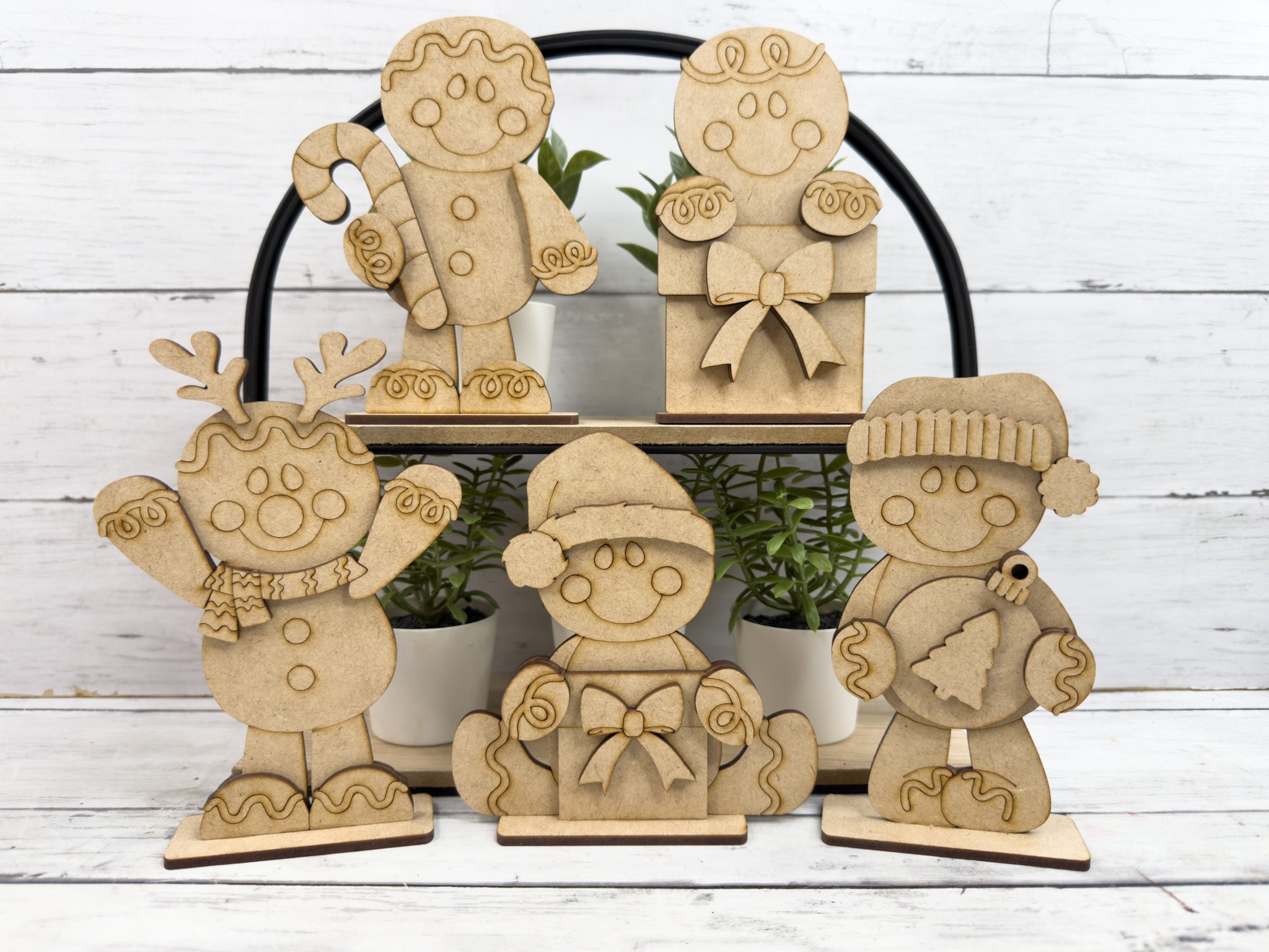 Create sweet holiday memories with this adorable Gingerbread Christmas Friends set! Featuring 5 whimsical gingerbread characters — each with unique holiday details like candy canes, gifts, ornaments, scarves, and bows — this set is perfect for festive decorating or as a fun holiday project with family and friends.
