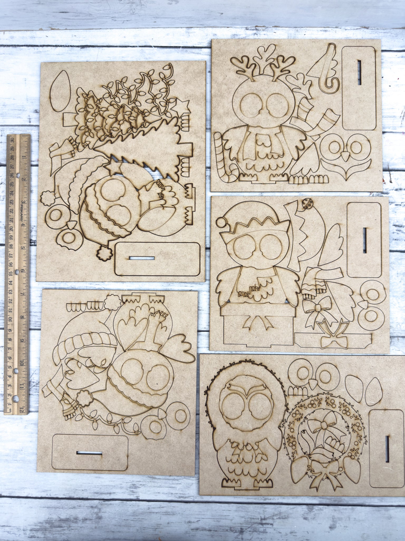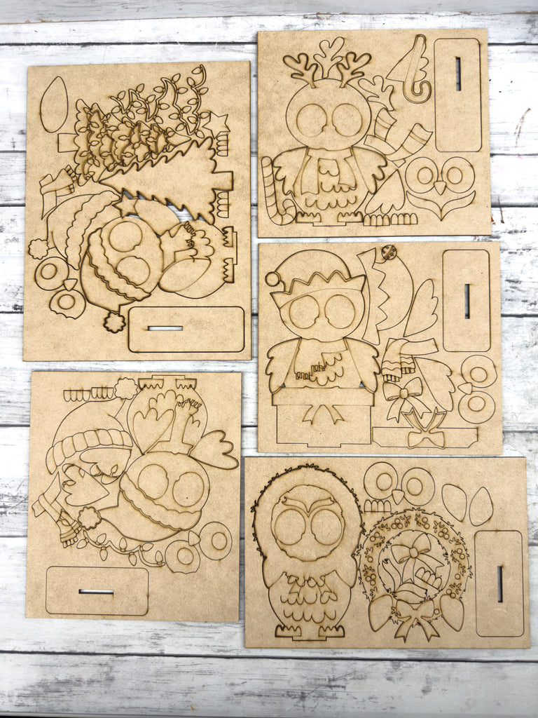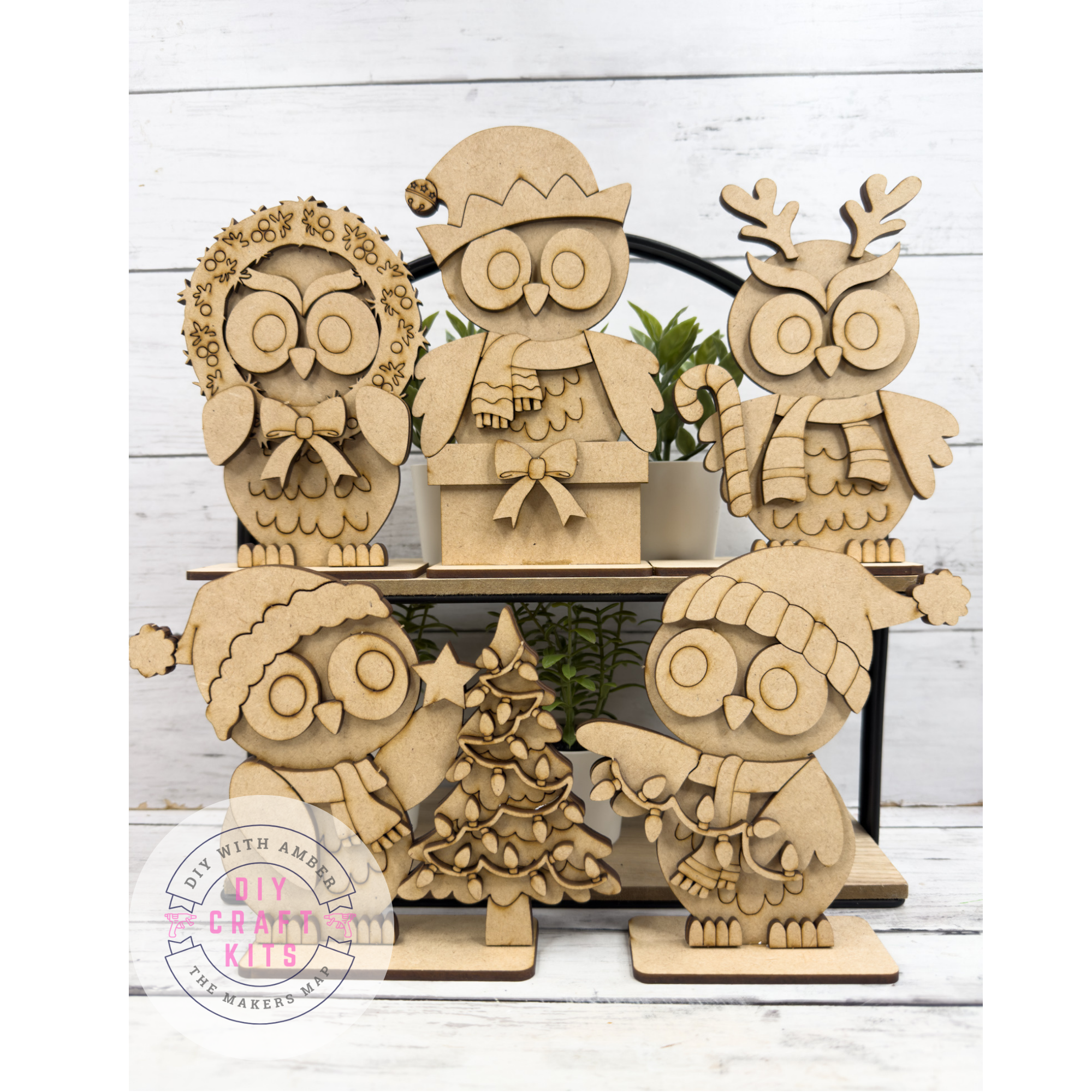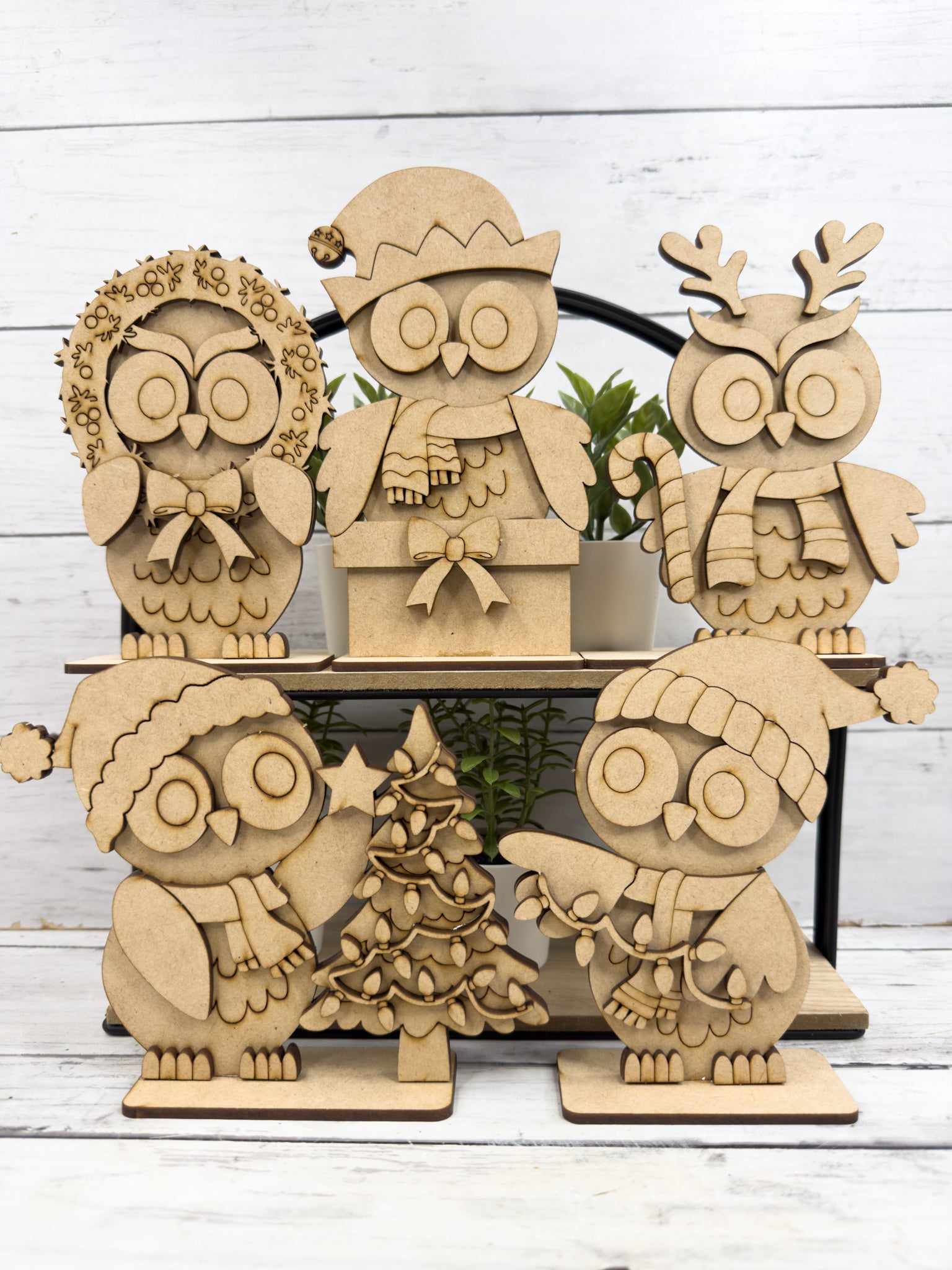 Each figure is laser cut from smooth MDF wood and ships unfinished, ready for you to paint, stain, glitter, or embellish however you like. Display them on shelves, mantels, or as part of a centerpiece for a warm and festive Christmas touch.