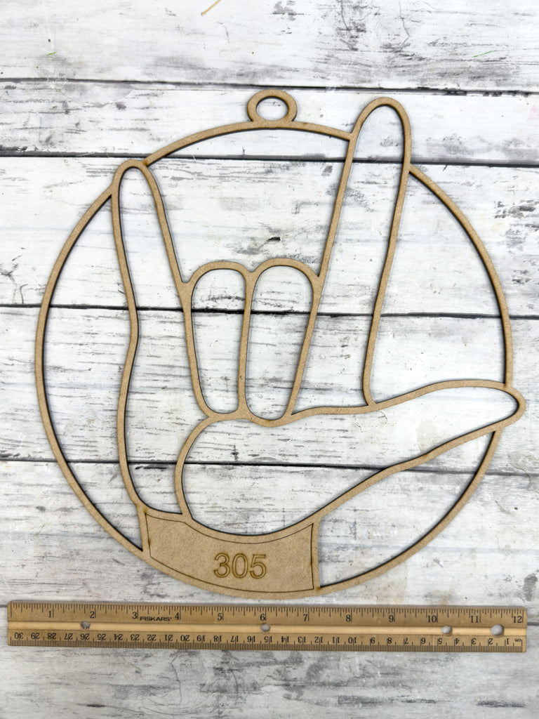 Style 305 I Love You ASL Laser Cut Outline Frame Blank