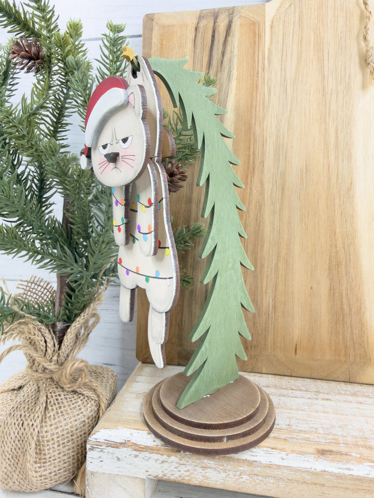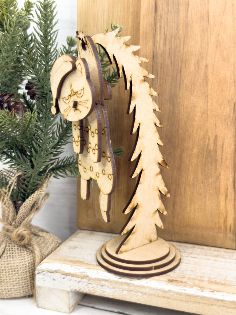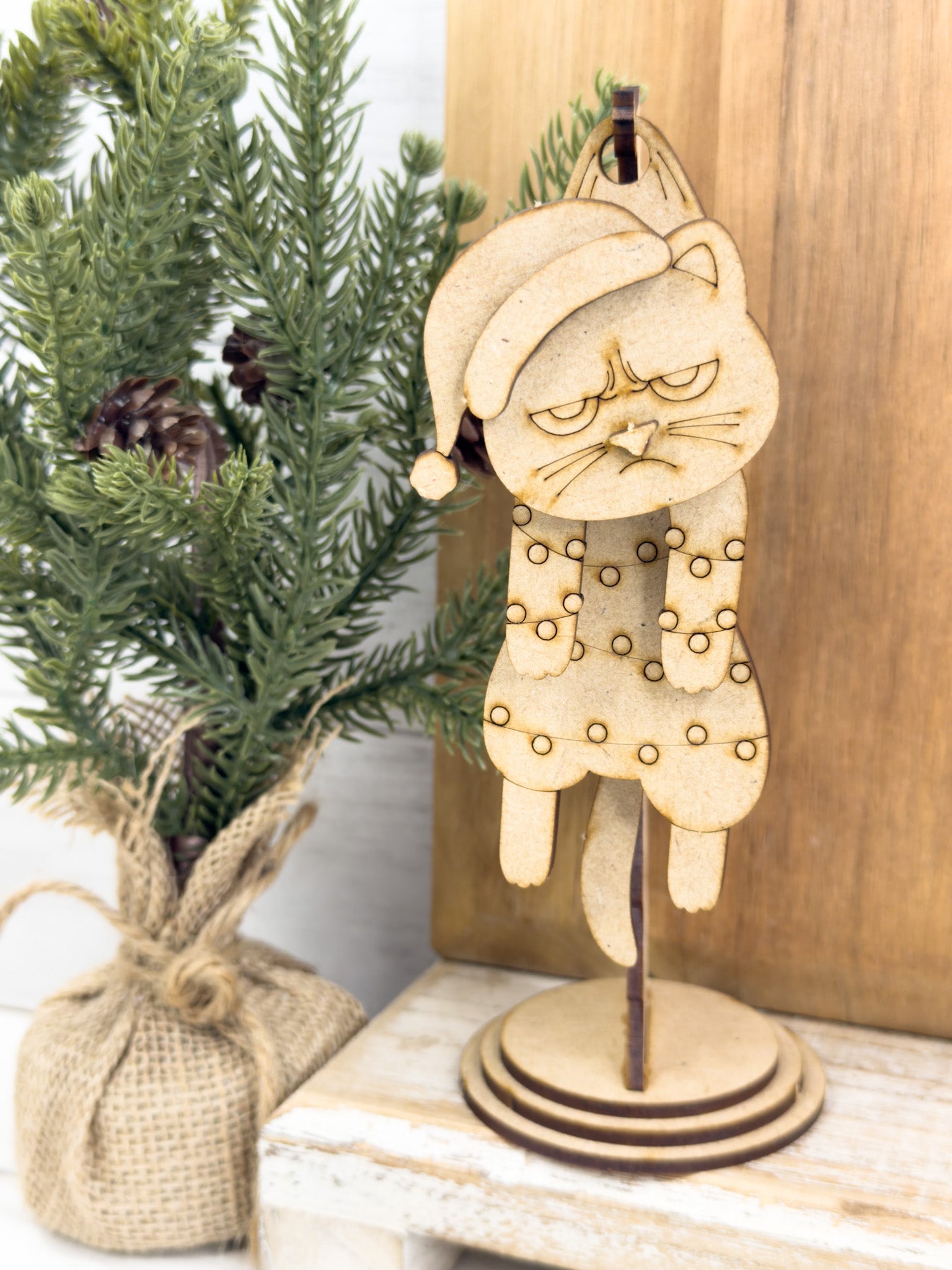 Bring some jolly movement to your holiday decor with this Swingy Grumpy Kitty Hanging Stand DIY Kit! 🎄🎅 This adorable Christmas craft features a curved display stand and a layered Grumpy Kitty piece that gently swings when touched. Each part is laser cut from 1/8 inch MDF and arrives unfinished, perfect for painting, staining, or adding glitter in your own festive style. ✨