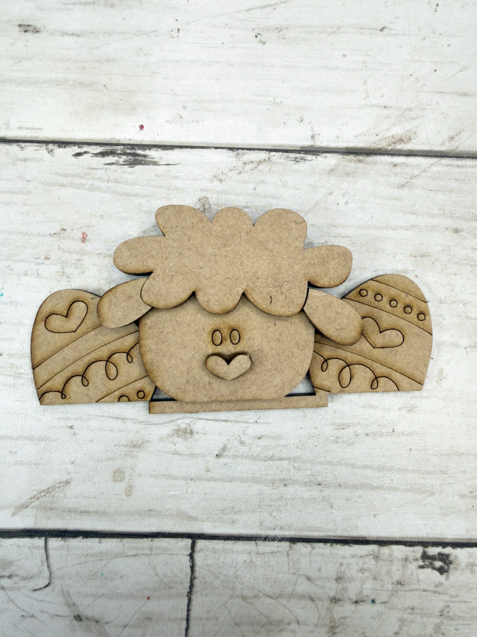 This Lamb with Eggs Add on Insert is specifically for adding onto the Lantern insert for the Interchangeable Spindle Base, the lantern sitter base, and the interchangeable candlestick sitter, bird cage sitter, and picnic basket sitter. See photos for options