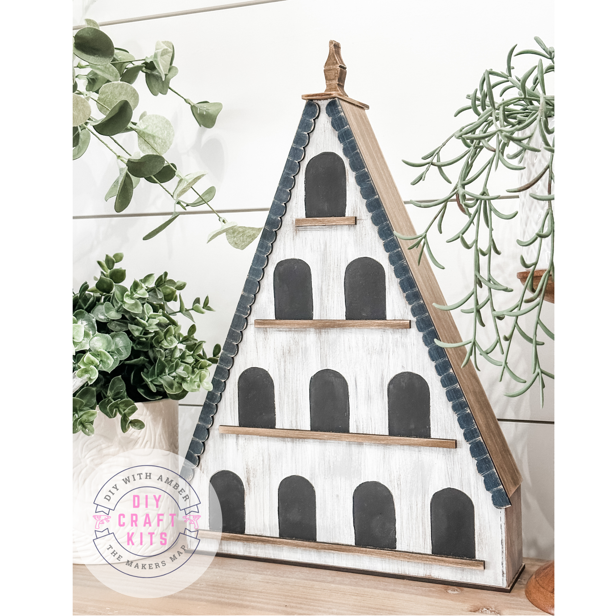 Create a charming decorative birdhouse display with this Bird Hotel Martin House DIY Kit! Designed to resemble a multi-level martin house, this tall A-frame structure includes scalloped trim, multiple “rooms,” and shelves for added detail. Perfect for painting in farmhouse, rustic, cottagecore, or whimsical styles. Display it on shelves, mantels, entry tables, or as part of a seasonal vignette! ❤️🎨