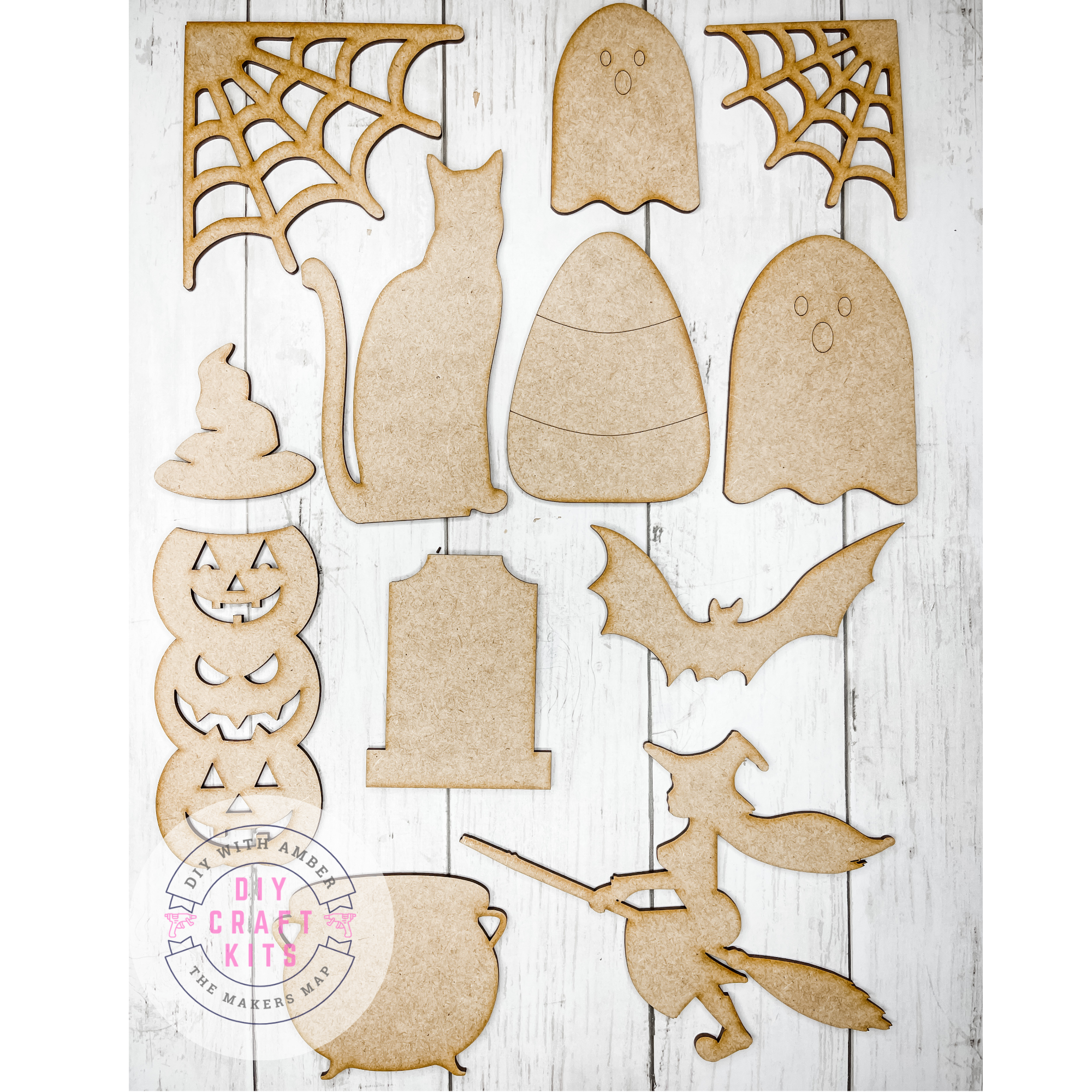 Get creative this spooky season with these Halloween Shape Cutouts! This set includes classic Halloween icons like a witch on a broom, black cat, ghosts, candy corn, pumpkins, spider webs, cauldron, tombstone, and bat.