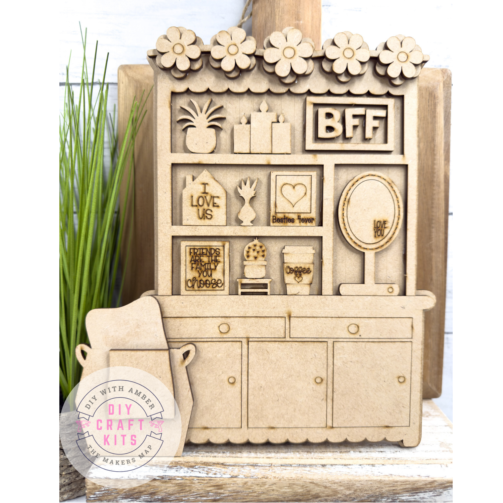 Add this adorable Mini Hutch DIY Craft Kit to your decorative dollhouse or shelves!