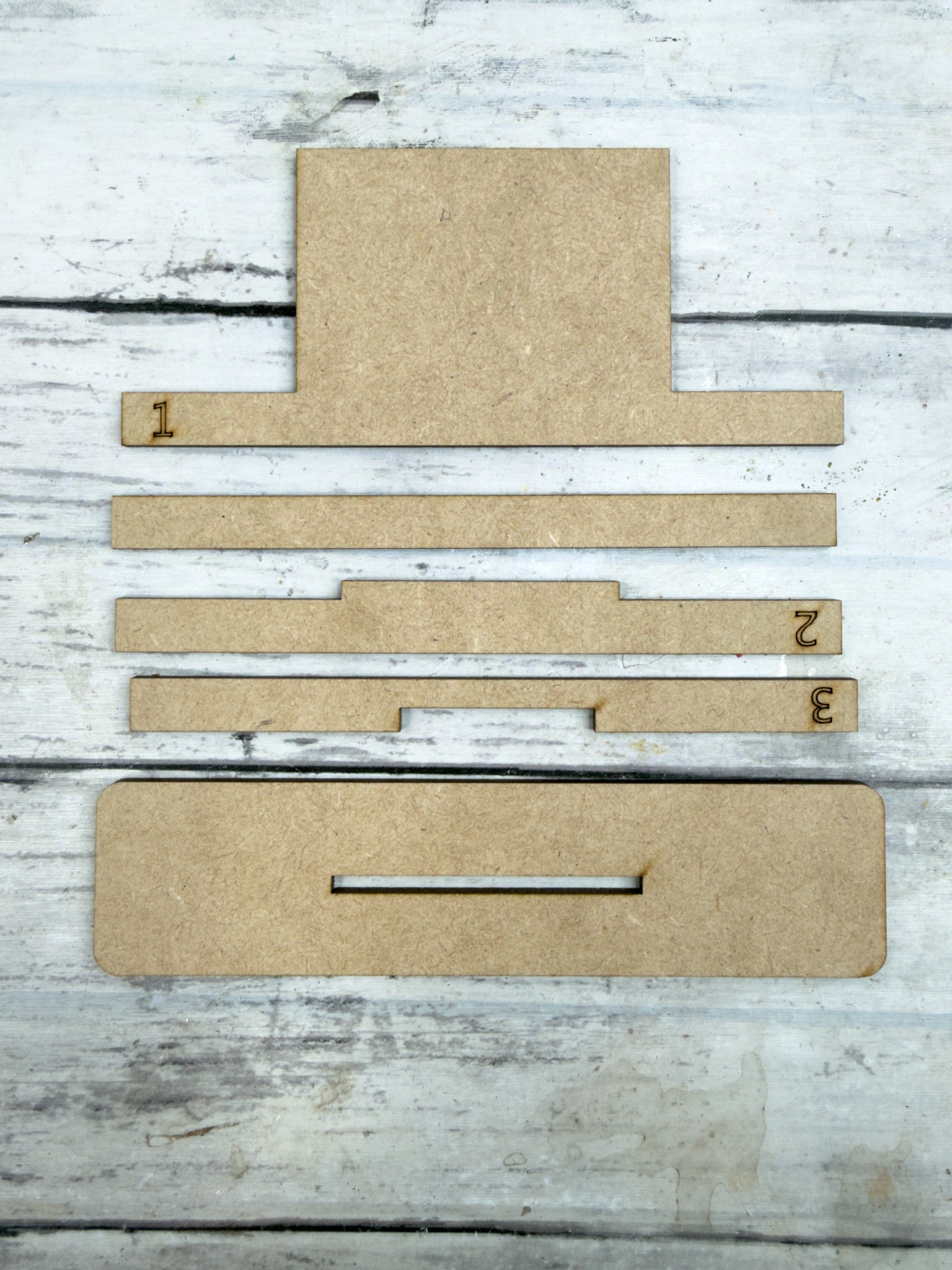 Laser cut from 1/8” HDF (High-Density Fiberboard)