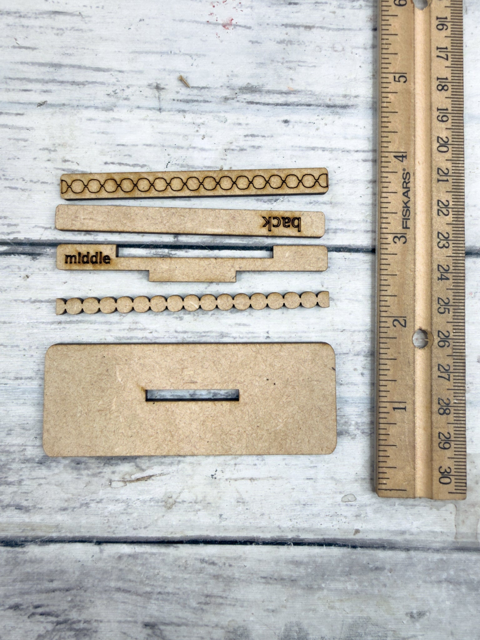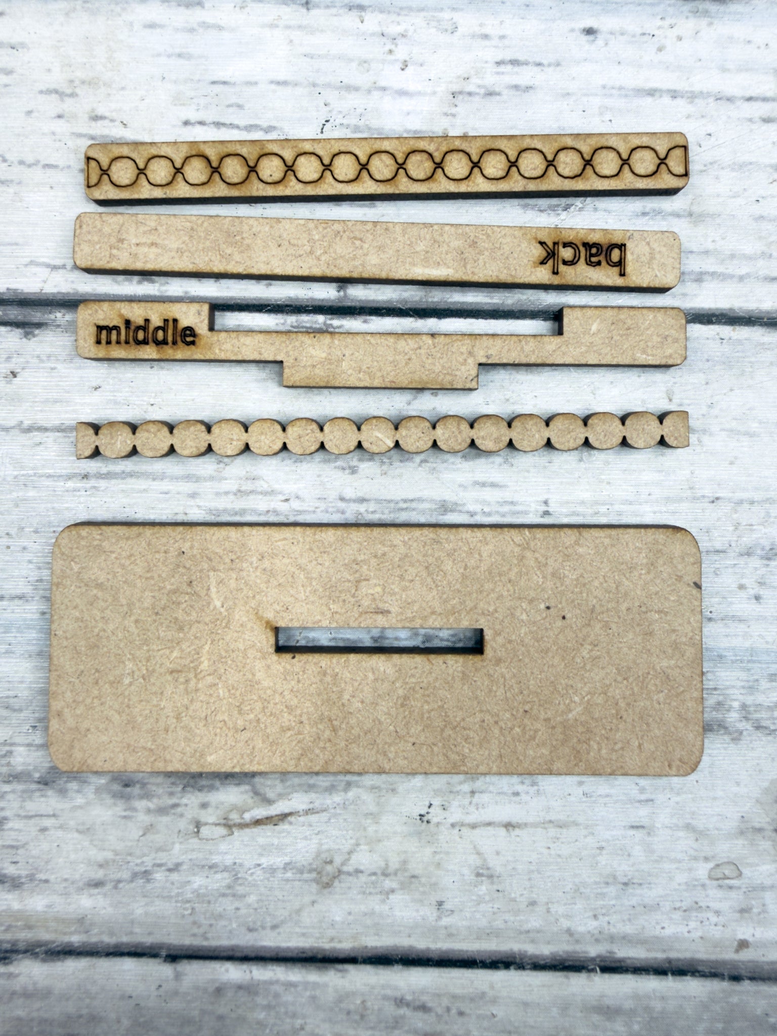 Laser cut from 1/8” HDF (High-Density Fiberboard)