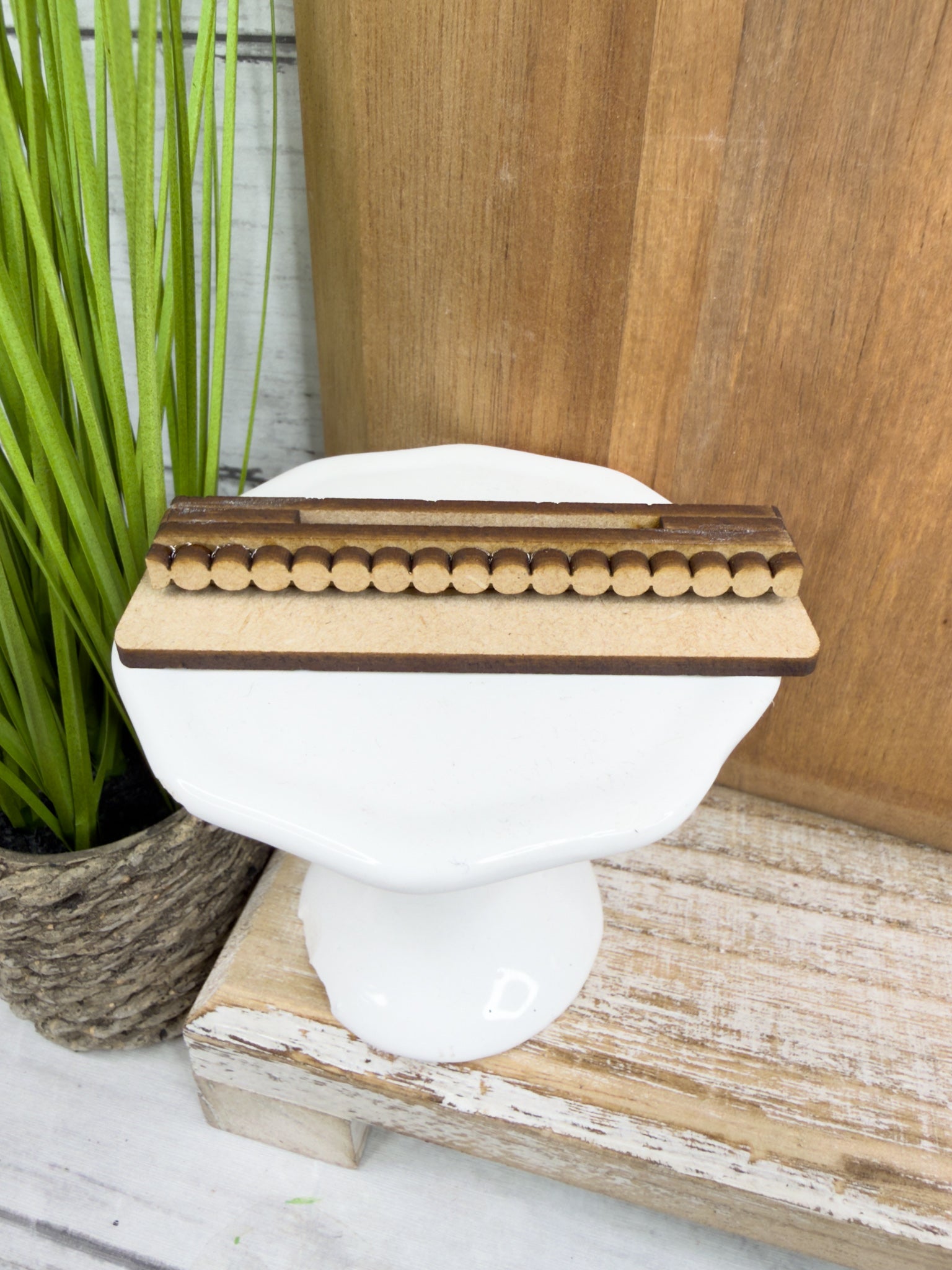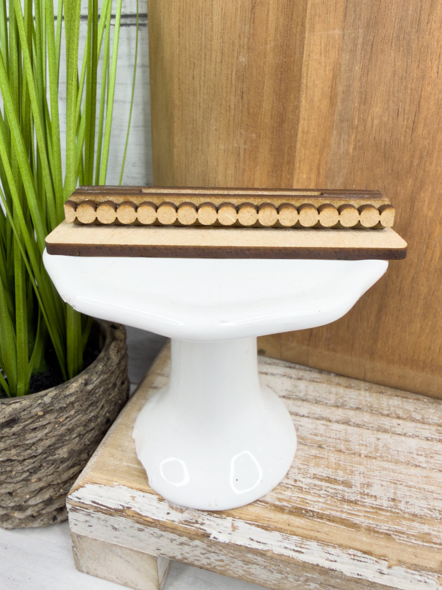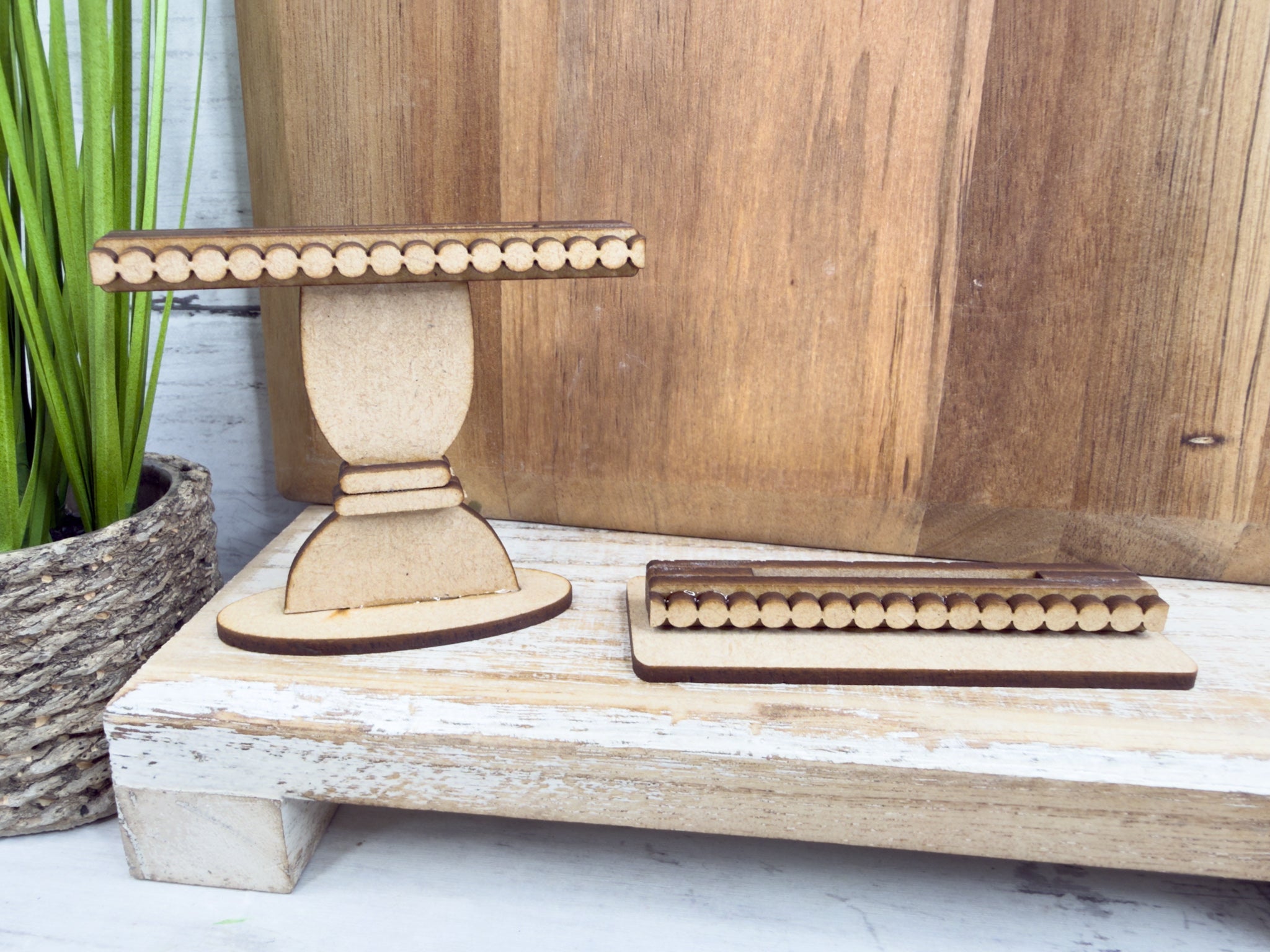This flat pedestal-style base is designed to fit our Mini Cake Inserts and is perfect for tiered trays, shelves, and tabletop displays. Paint, stain, or decorate it to match your style — the possibilities are endless!