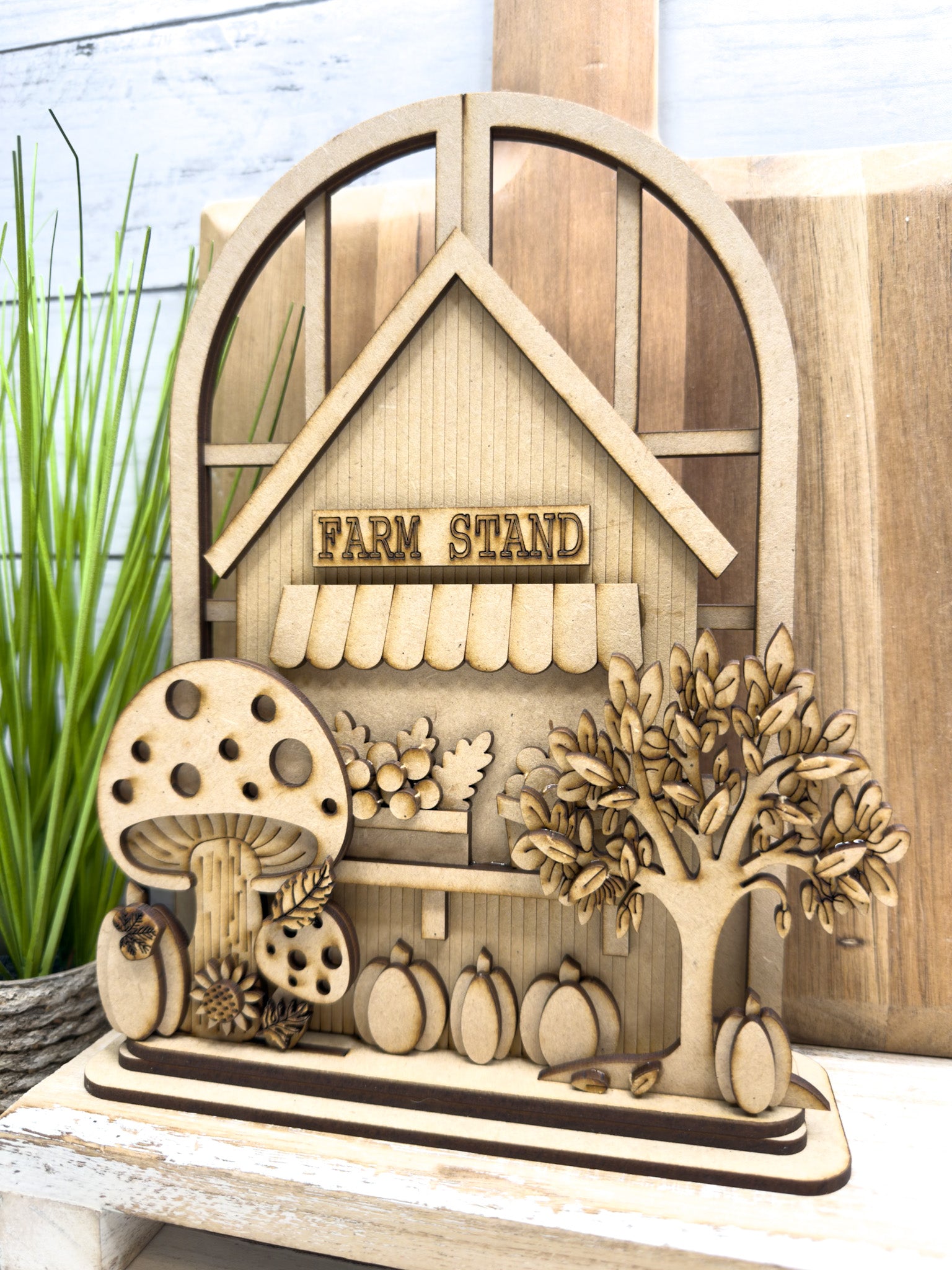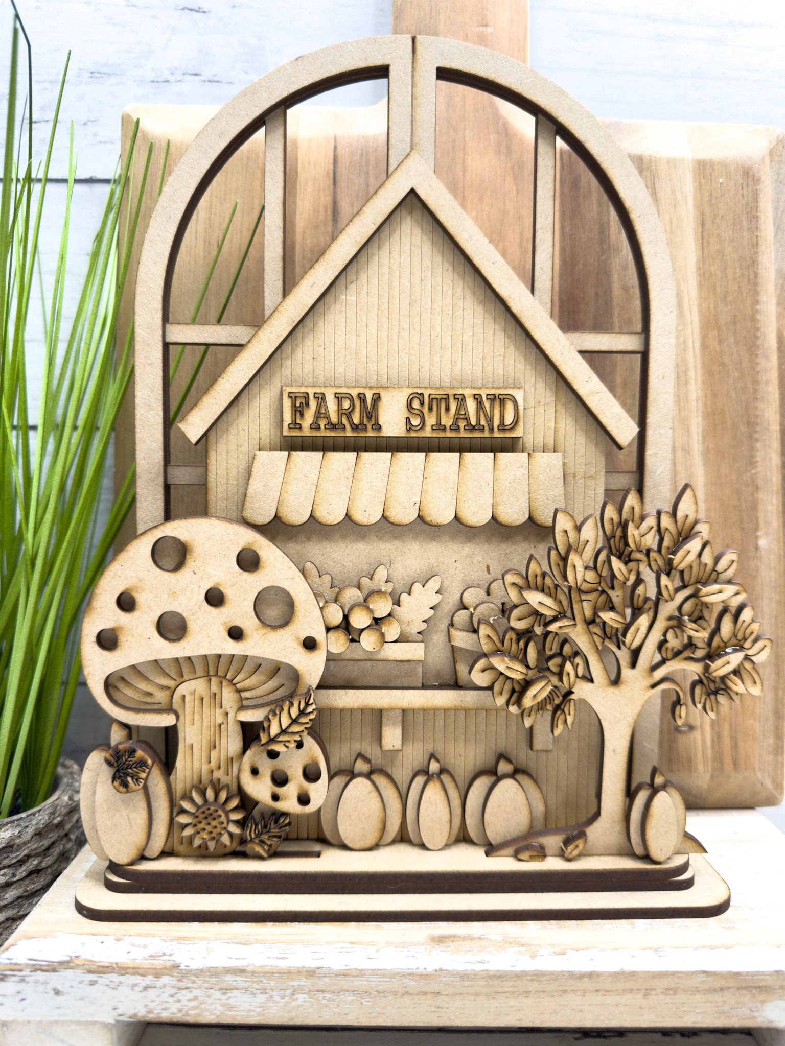 Bring cozy harvest vibes to your seasonal décor with the Fall Farm Stand Trio Insert, part of our Interchangeable Arched Window Collection. This layered DIY insert is designed to sit in front of our arched window base, making it easy to swap seasonal décor while keeping the same beautiful backdrop in place year after year.