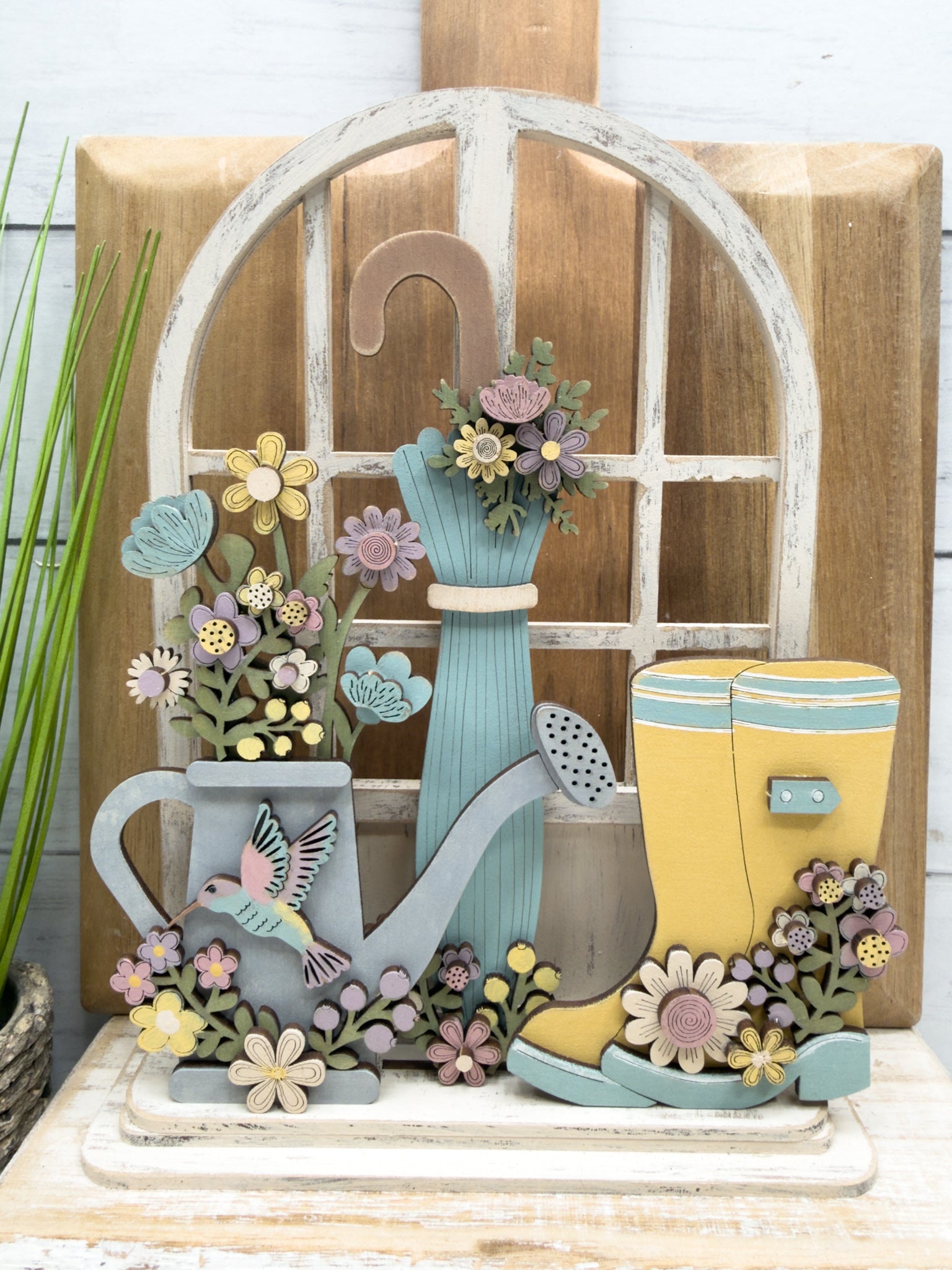Welcome fresh spring vibes into your home with the Rain Boots Umbrella Spring Trio Insert, part of our Interchangeable Arched Window Collection. This layered DIY insert is designed to sit in front of our arched window base, making it easy to swap seasonal décor while keeping the same charming backdrop in place all year long.