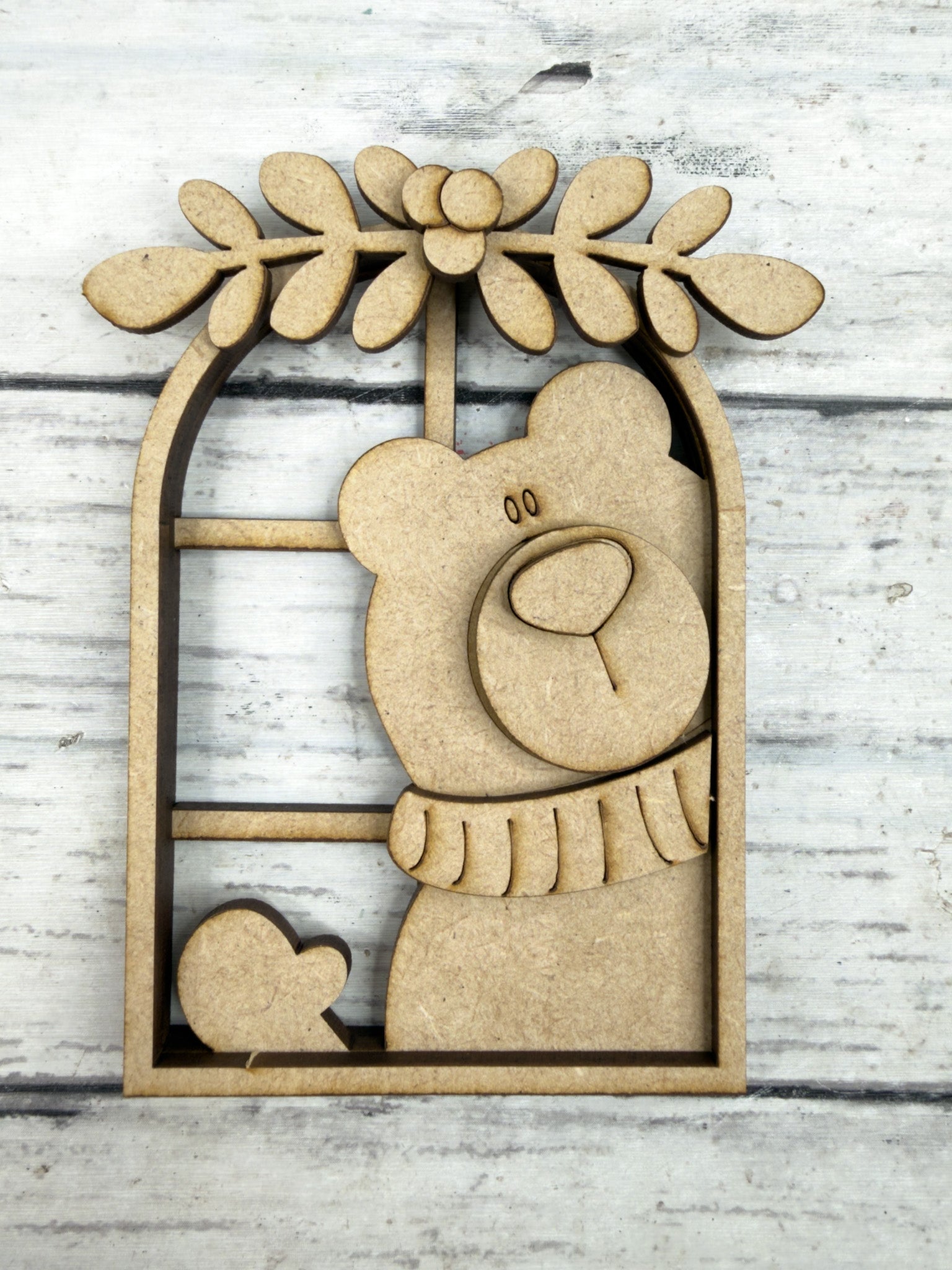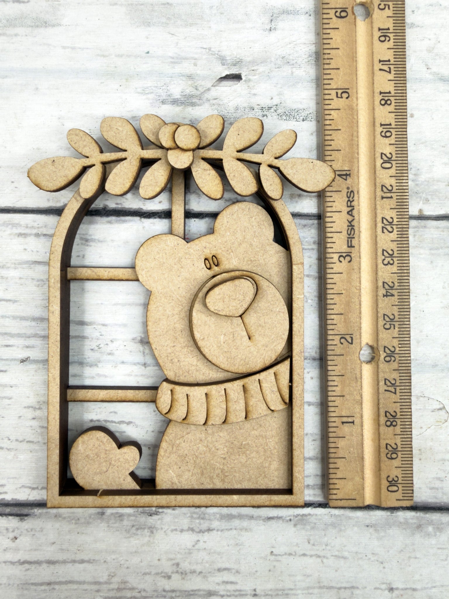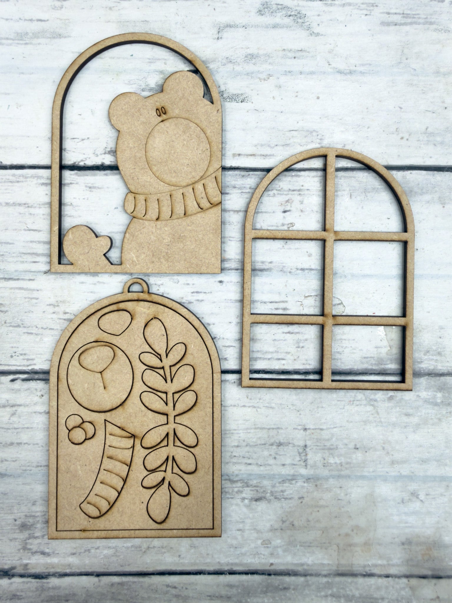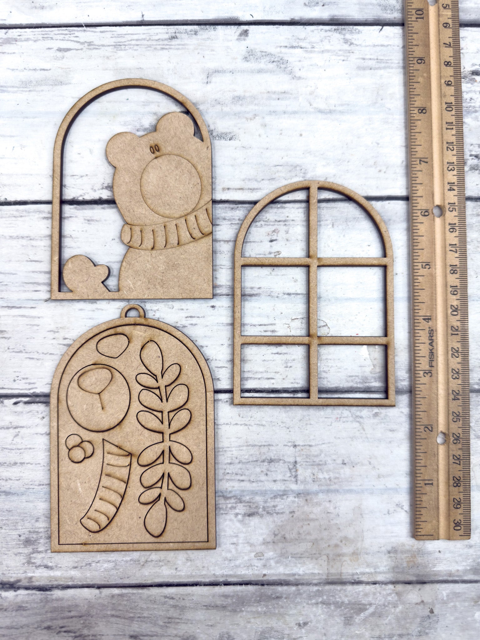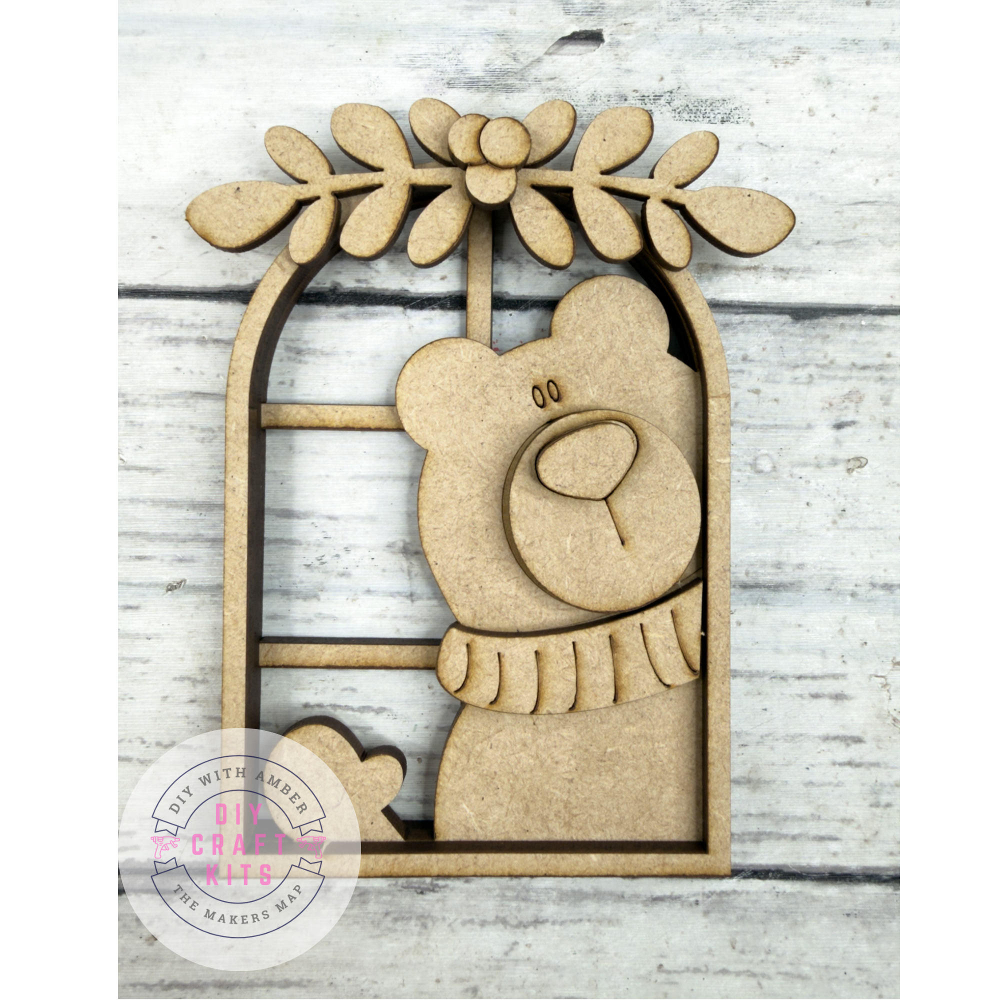Bring holiday cheer to your crafting table with this festive Bear Arch Window Ornament! Featuring a waving bear peeking through a window frame adorned with leaves and a flower topper, this piece makes a fun and whimsical addition to your Christmas décor.
