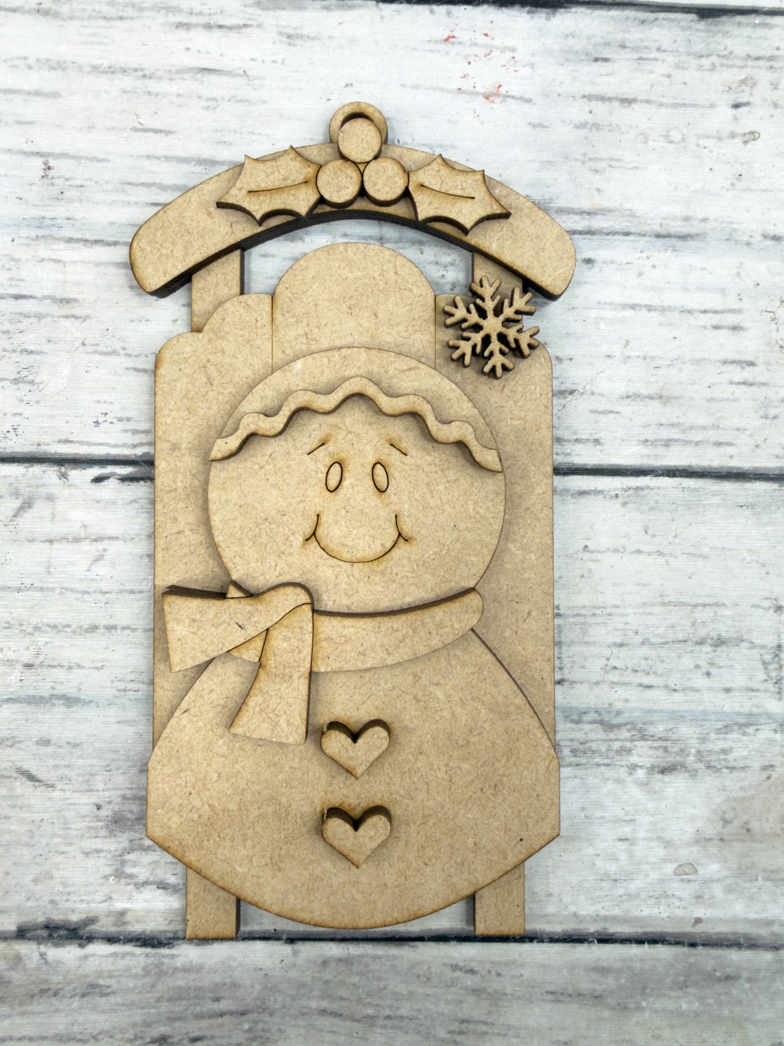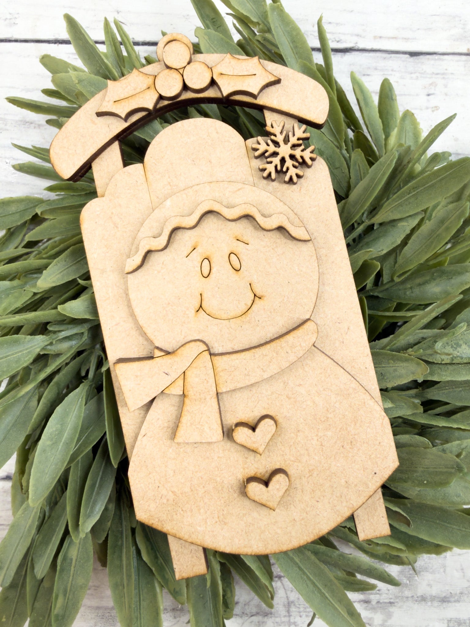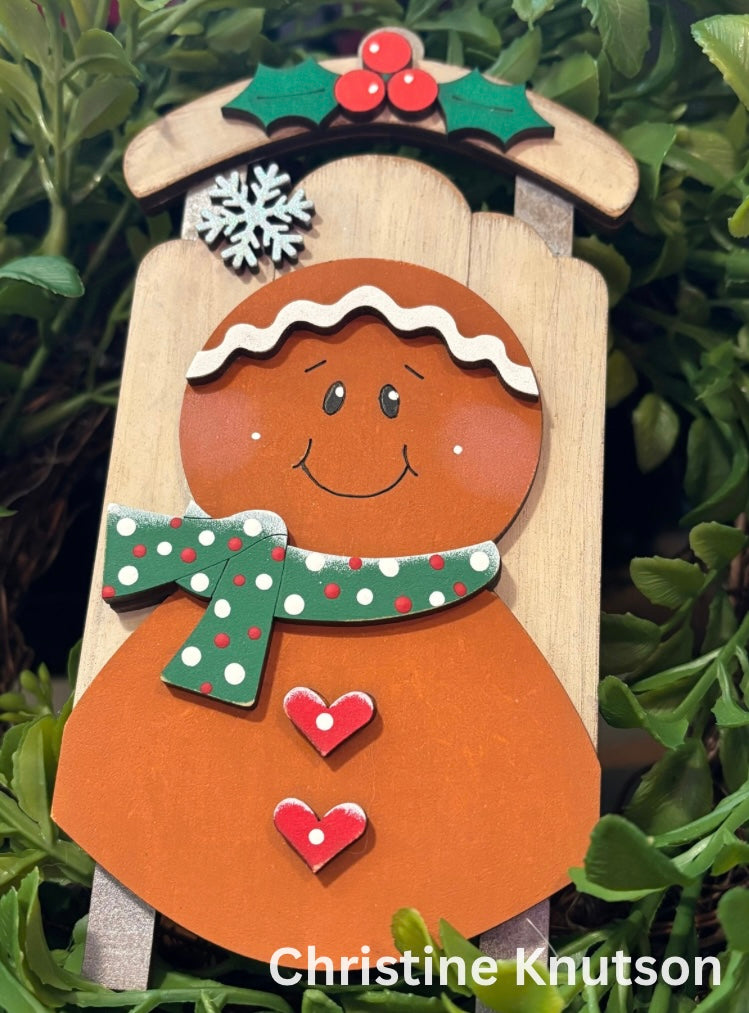 Add a touch of cozy holiday charm to your décor with this Gingerbread Face Sled Ornament! Featuring a smiling gingerbread character with heart cutouts, a scarf detail, and a festive sled frame topped with holly and a snowflake accent, this piece is perfect for farmhouse and rustic Christmas decorating.