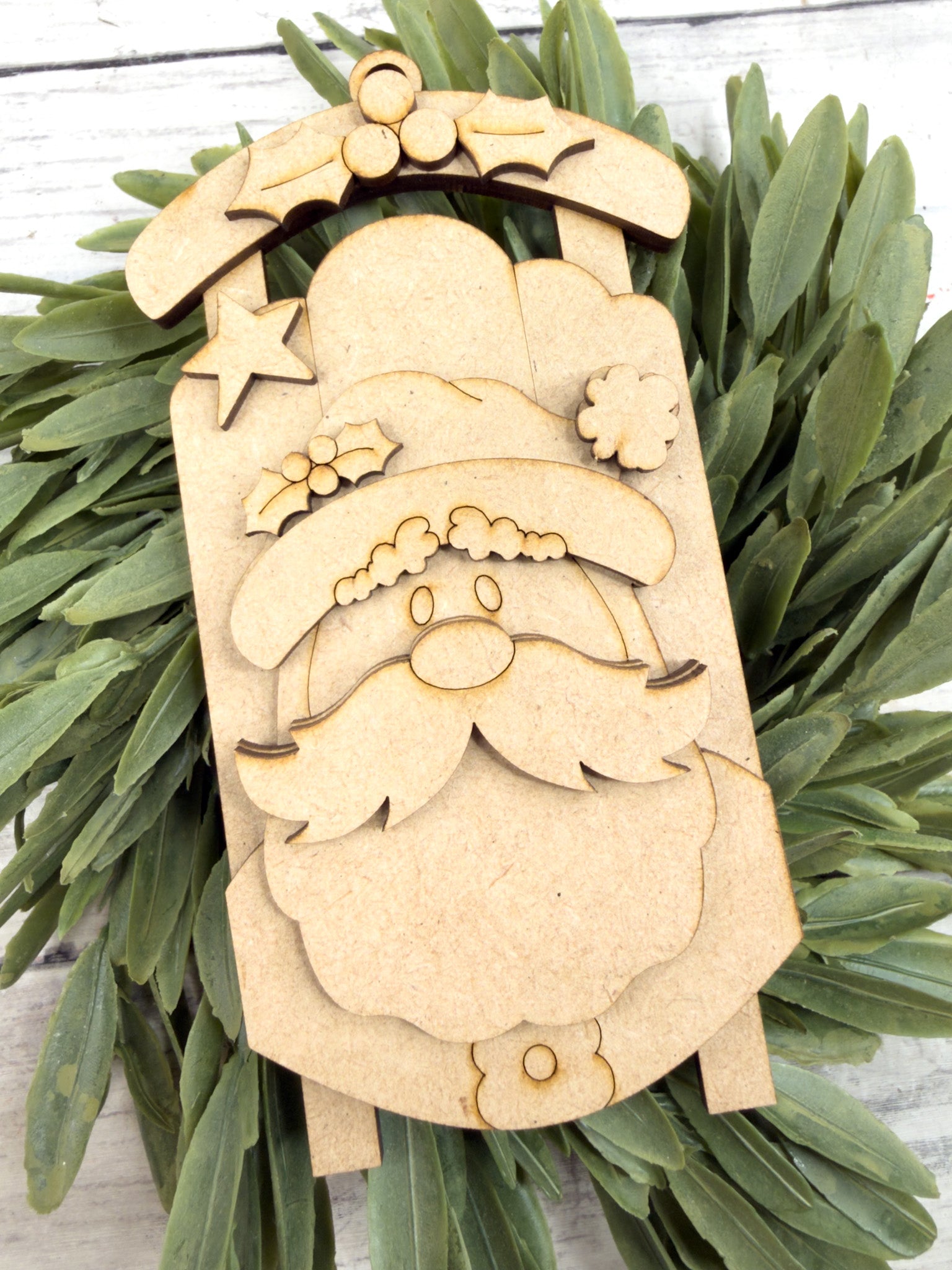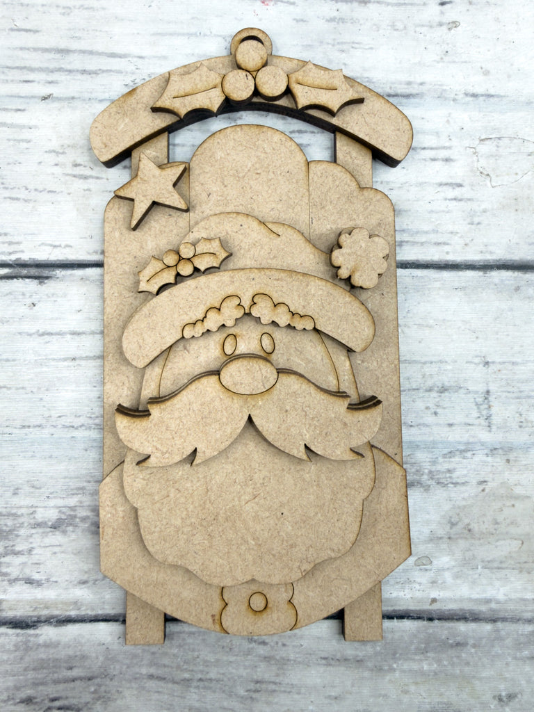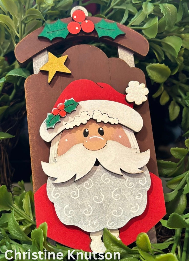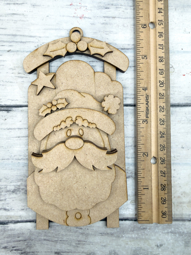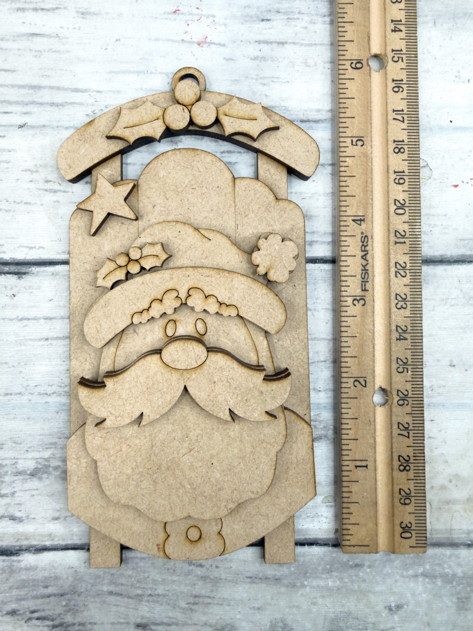 Bring classic Christmas charm to your holiday crafting with this Santa Face Sled Ornament! Featuring a jolly Santa with his fluffy beard and hat, framed on a traditional sled with holly and star accents, this piece is the perfect blend of festive cheer and rustic farmhouse style.
