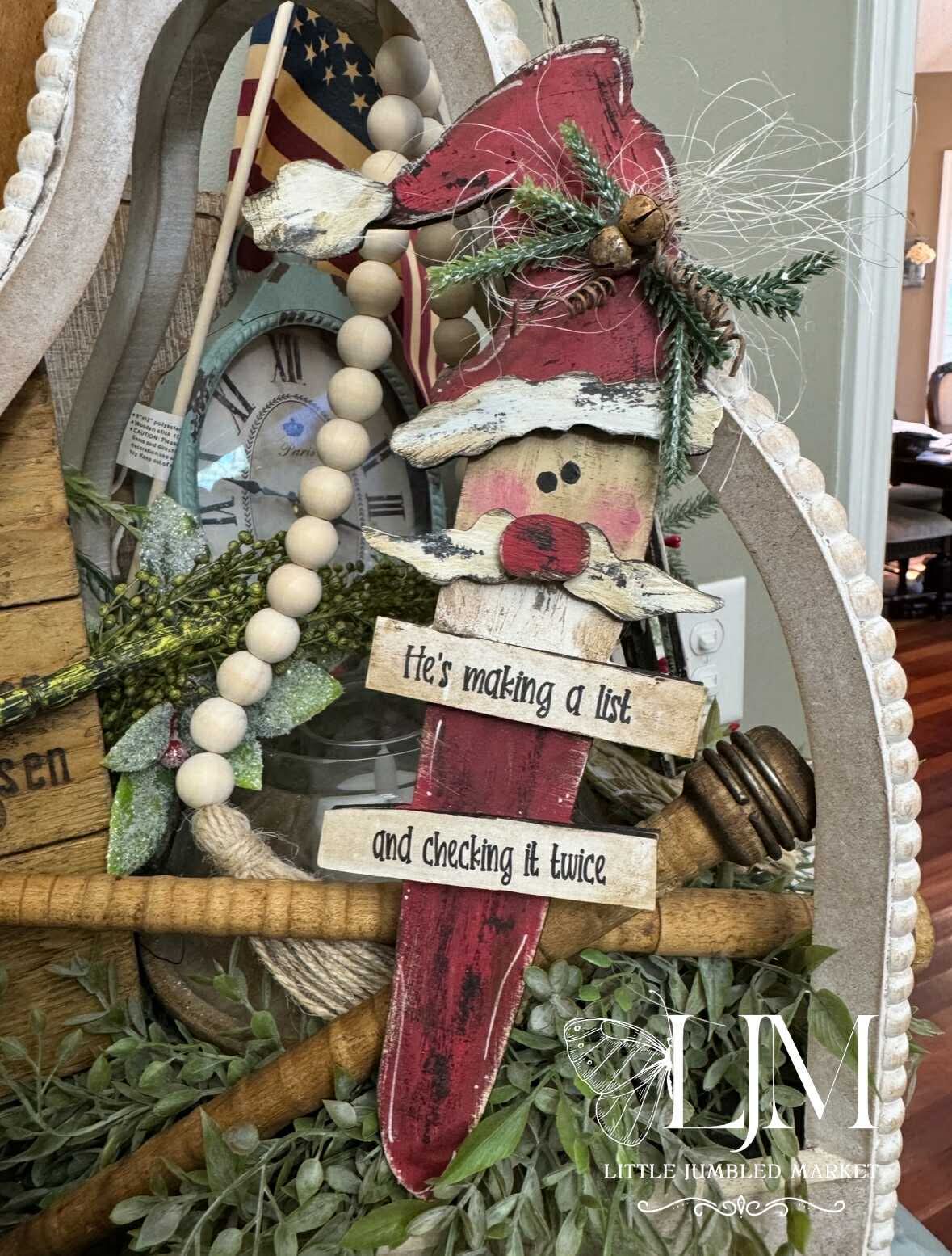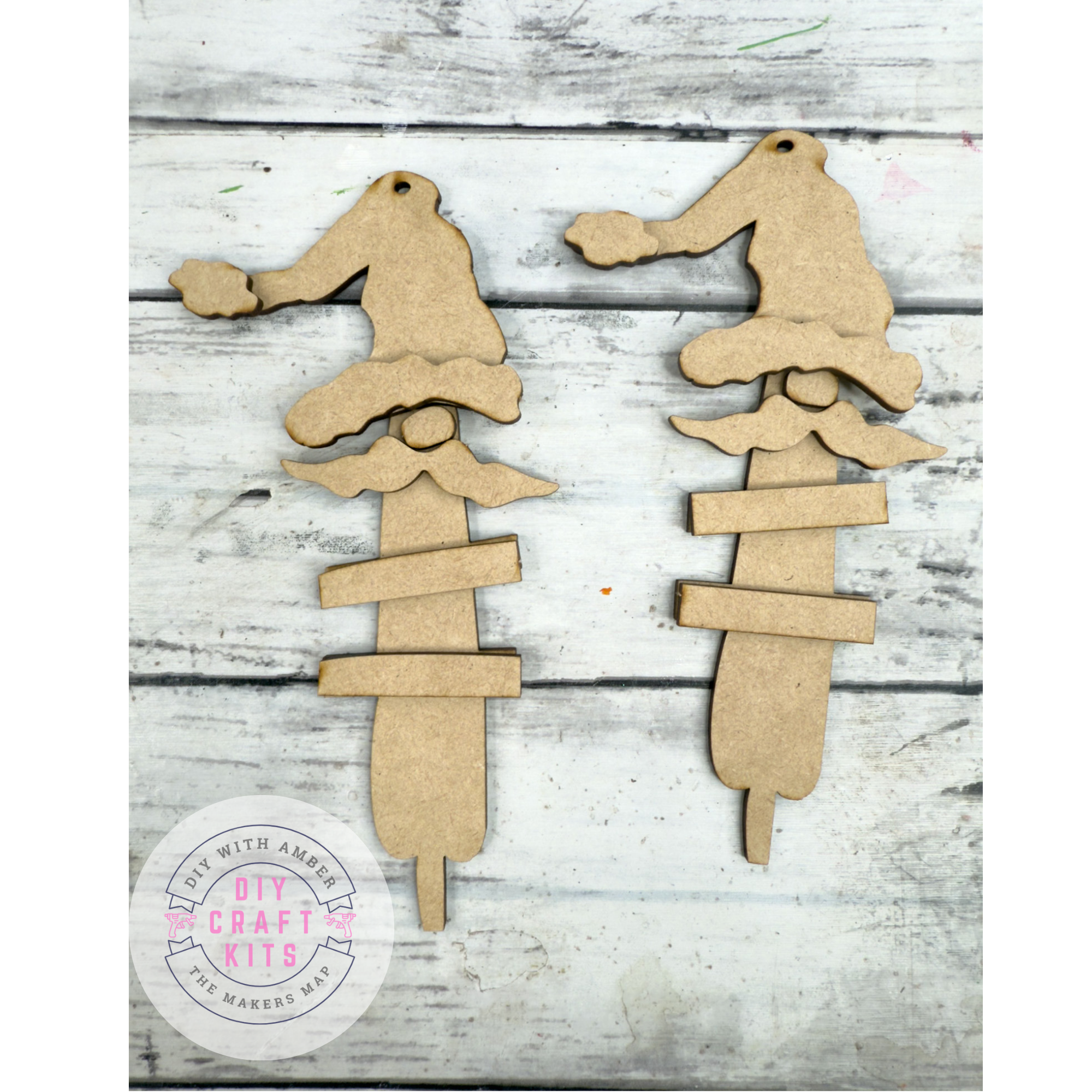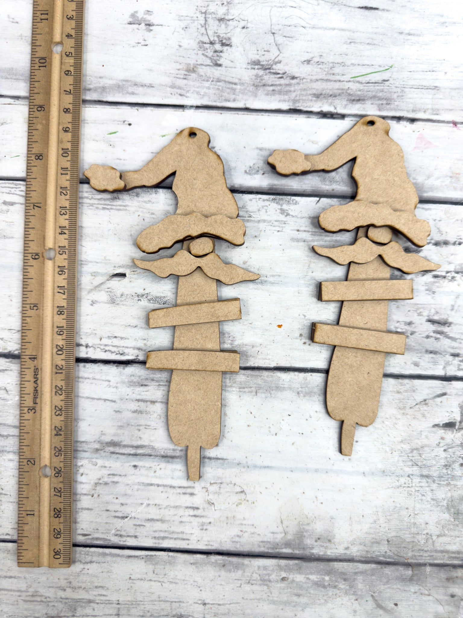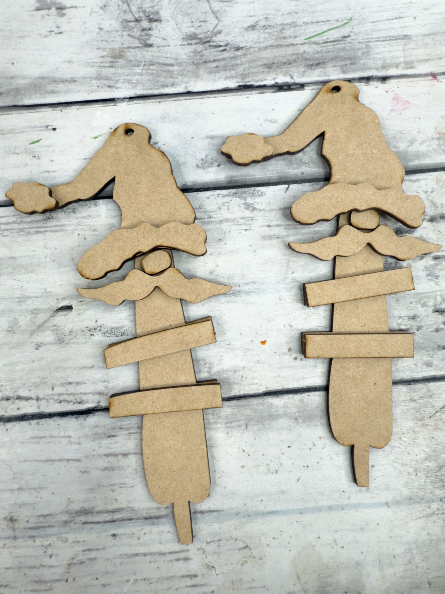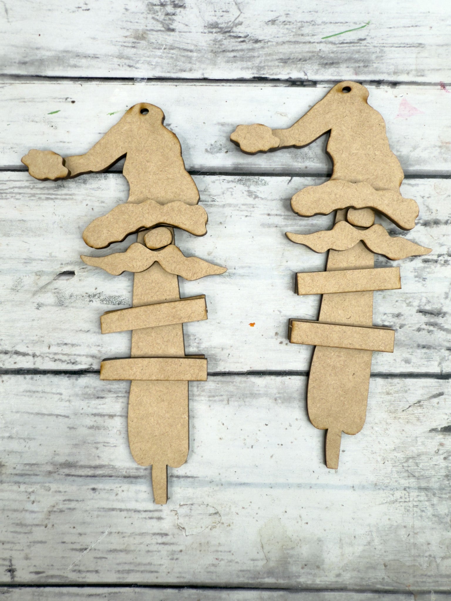 Add rustic Christmas charm to your tree with this Set of 2 Primitive Santa Ornaments DIY Kit! These whimsical primitive Santas feature layered hats, mustaches, and tree-style bodies, each with a built-in hanging hole. Perfect for holiday workshops, ornament exchanges, craft nights, and farmhouse Christmas décor.