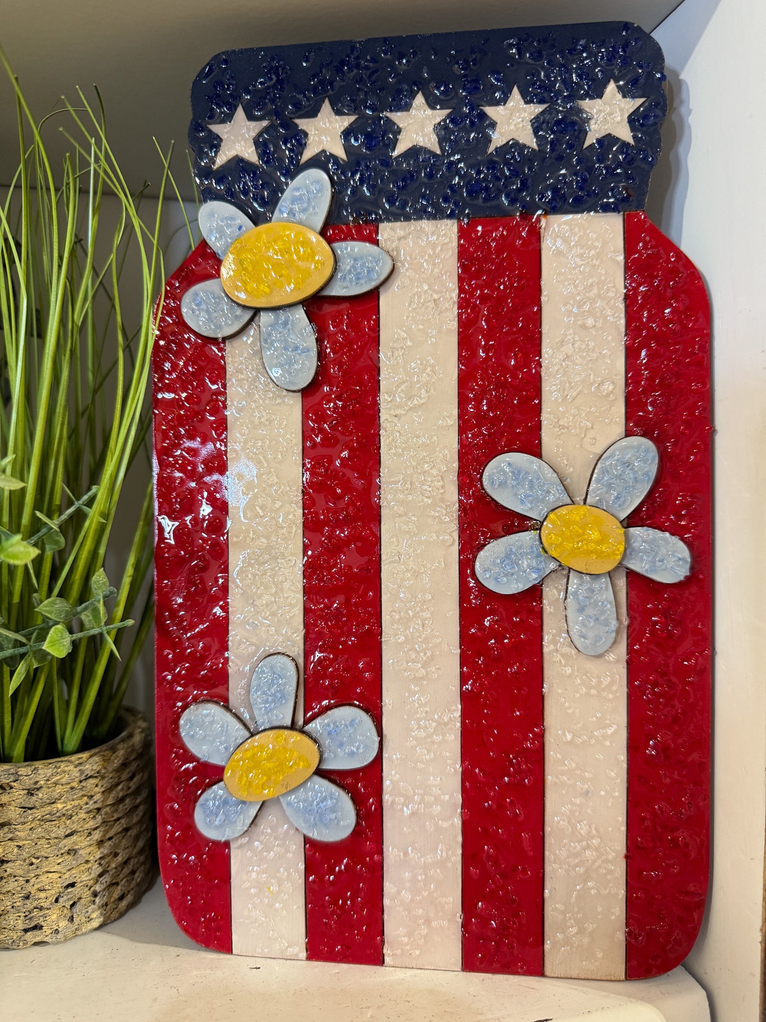 This paint-your-own craft kit includes the mdf wood blank pieces to create the Americana Mason Jar DIY Kit.