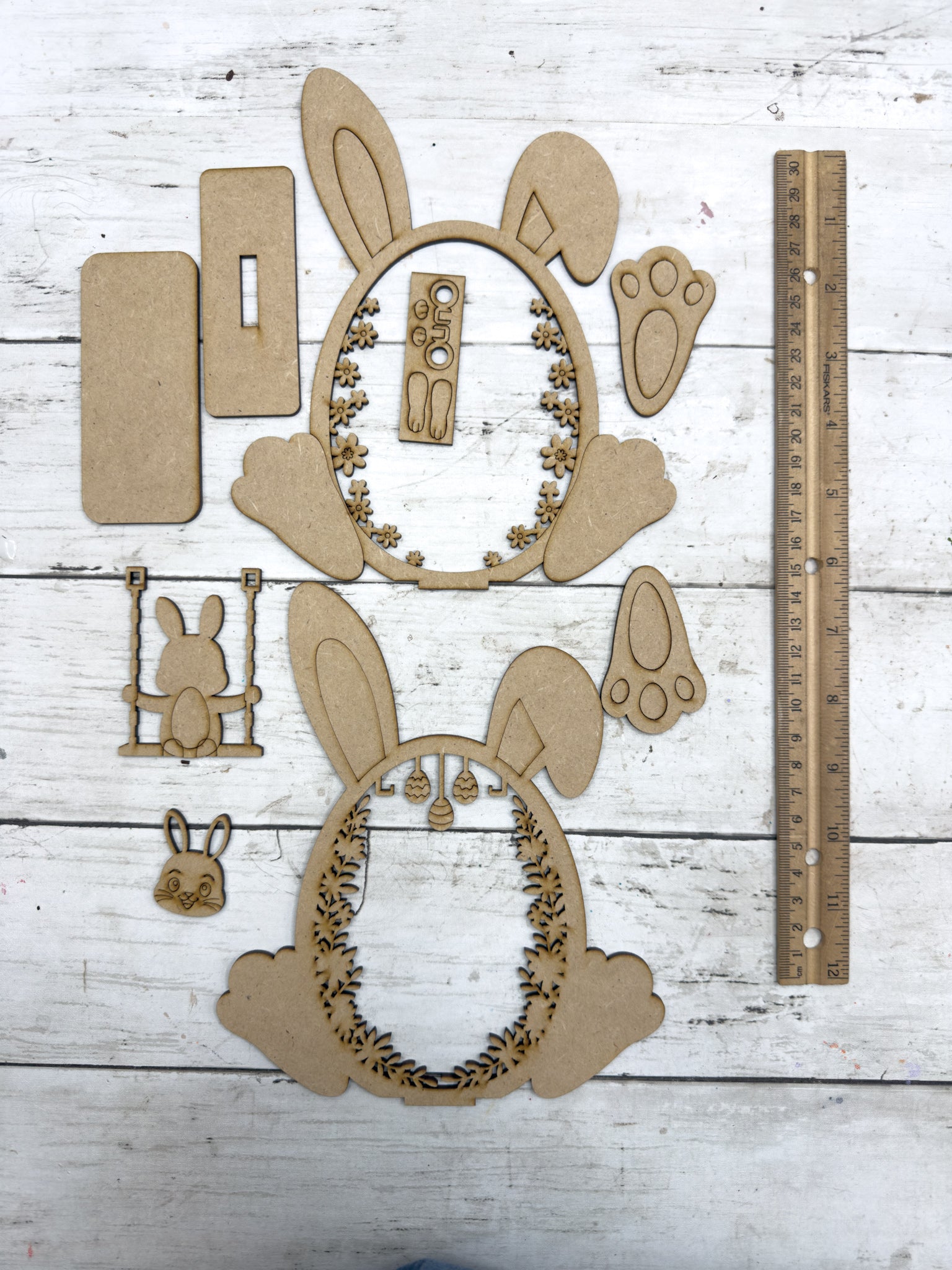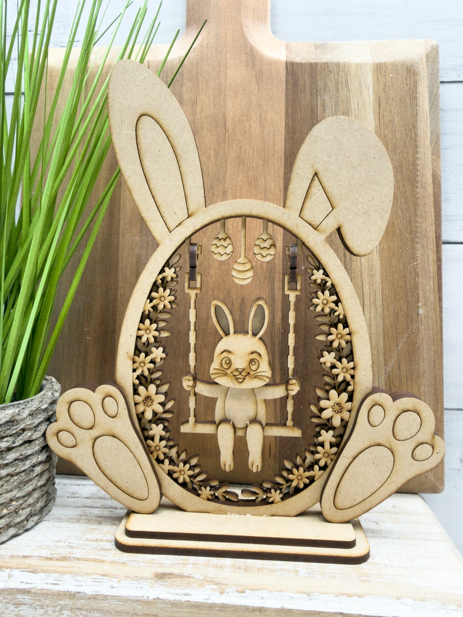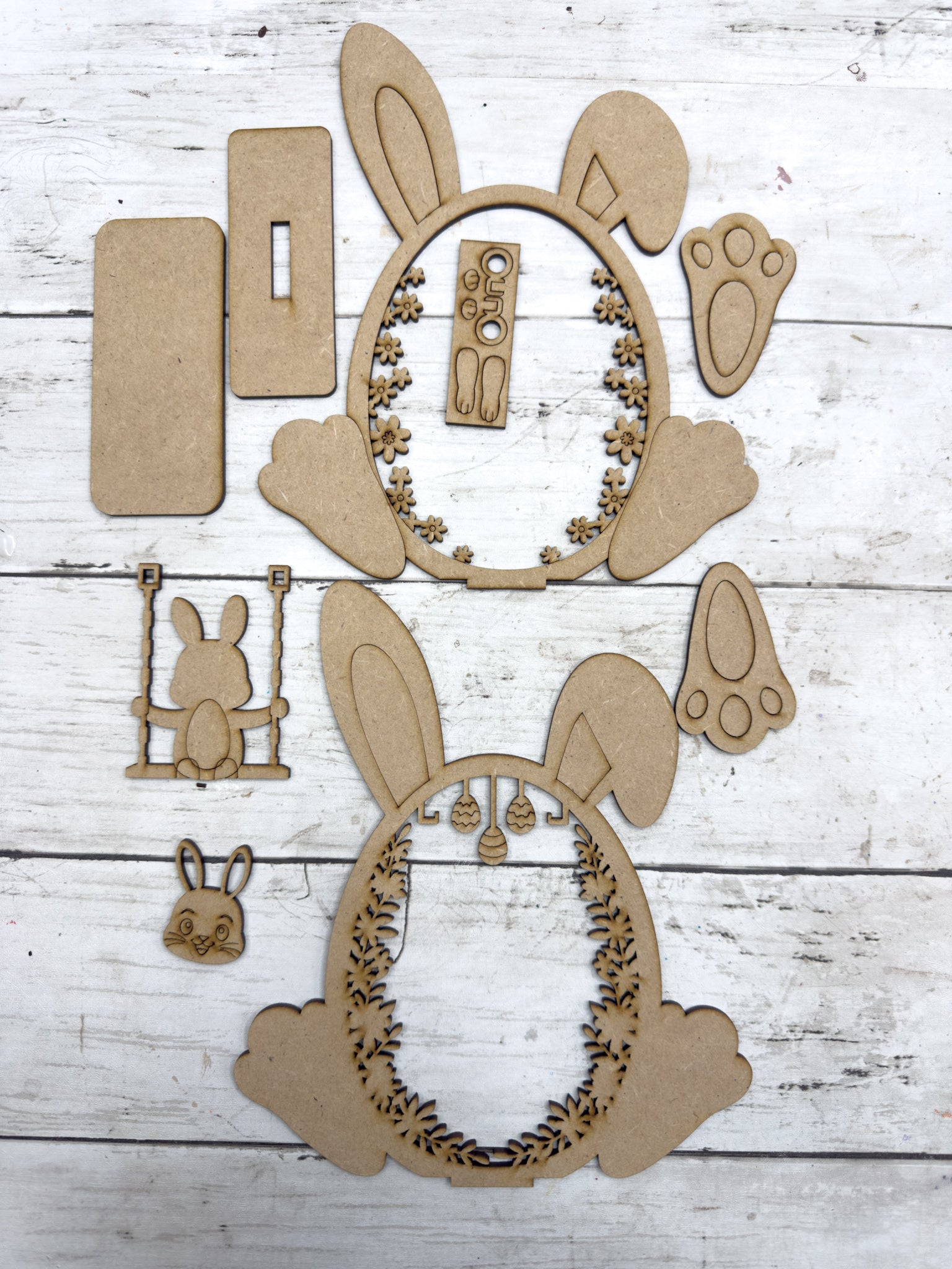 Bring an easter vibe to your decor with this bunny body Swinging bunny DIY Craft Kit! This unique shelf sitter features a cute bunny swinging inside the belly of a bunny body — the perfect blend of holiday and cute.