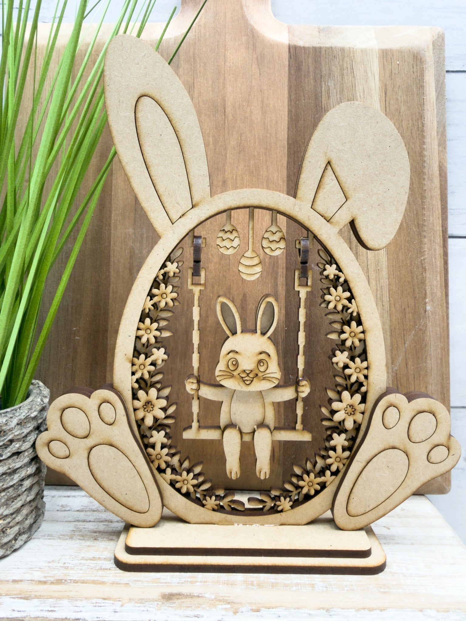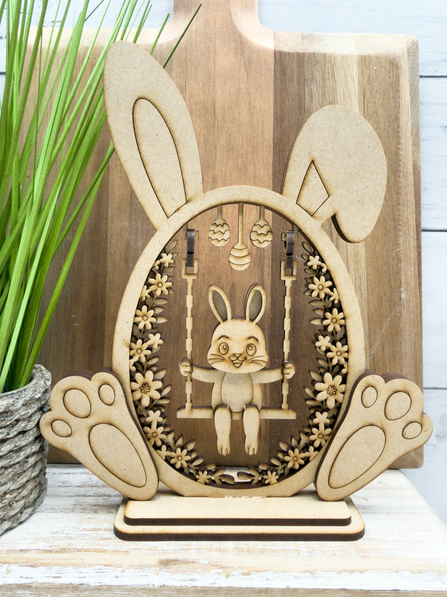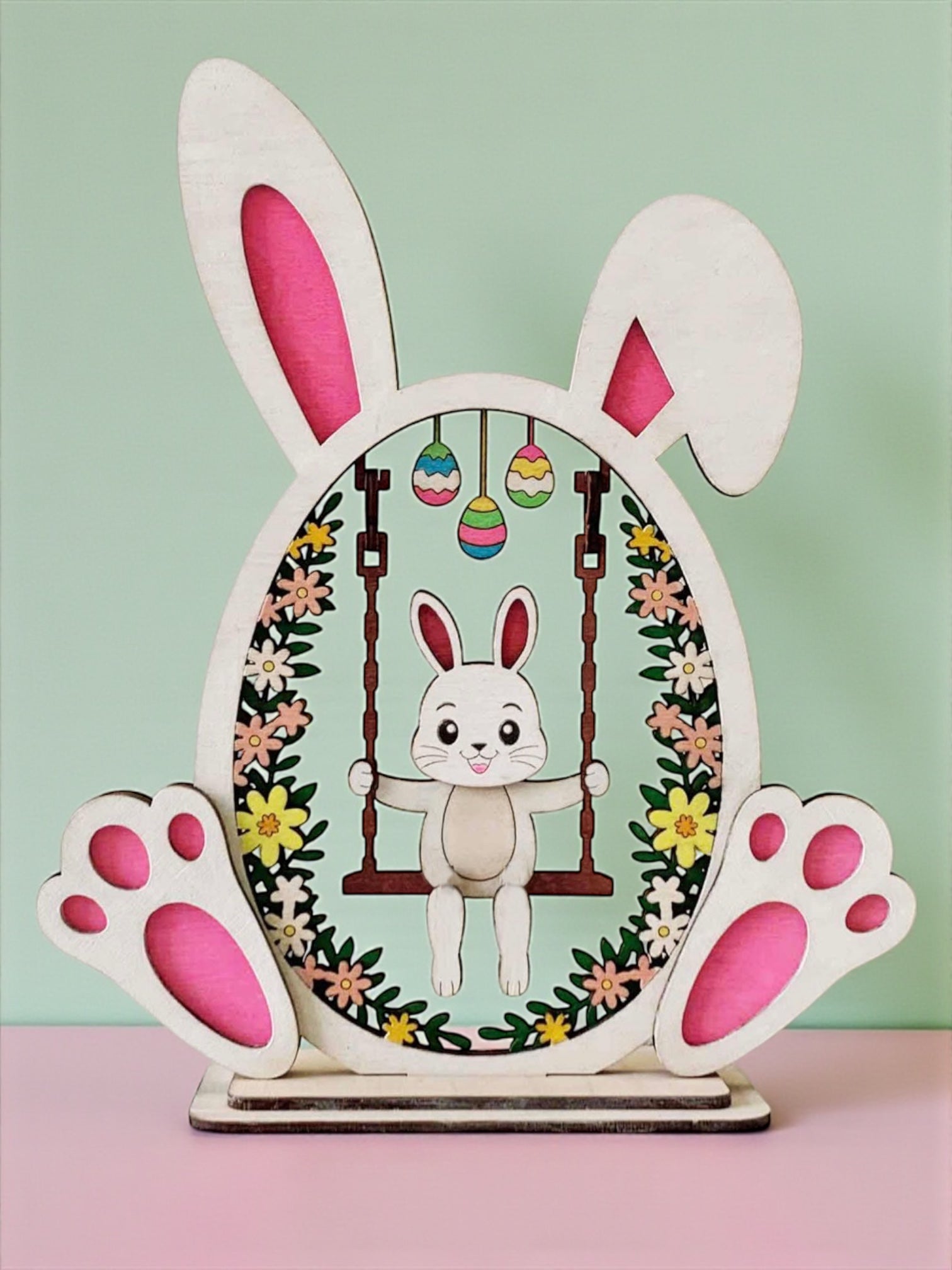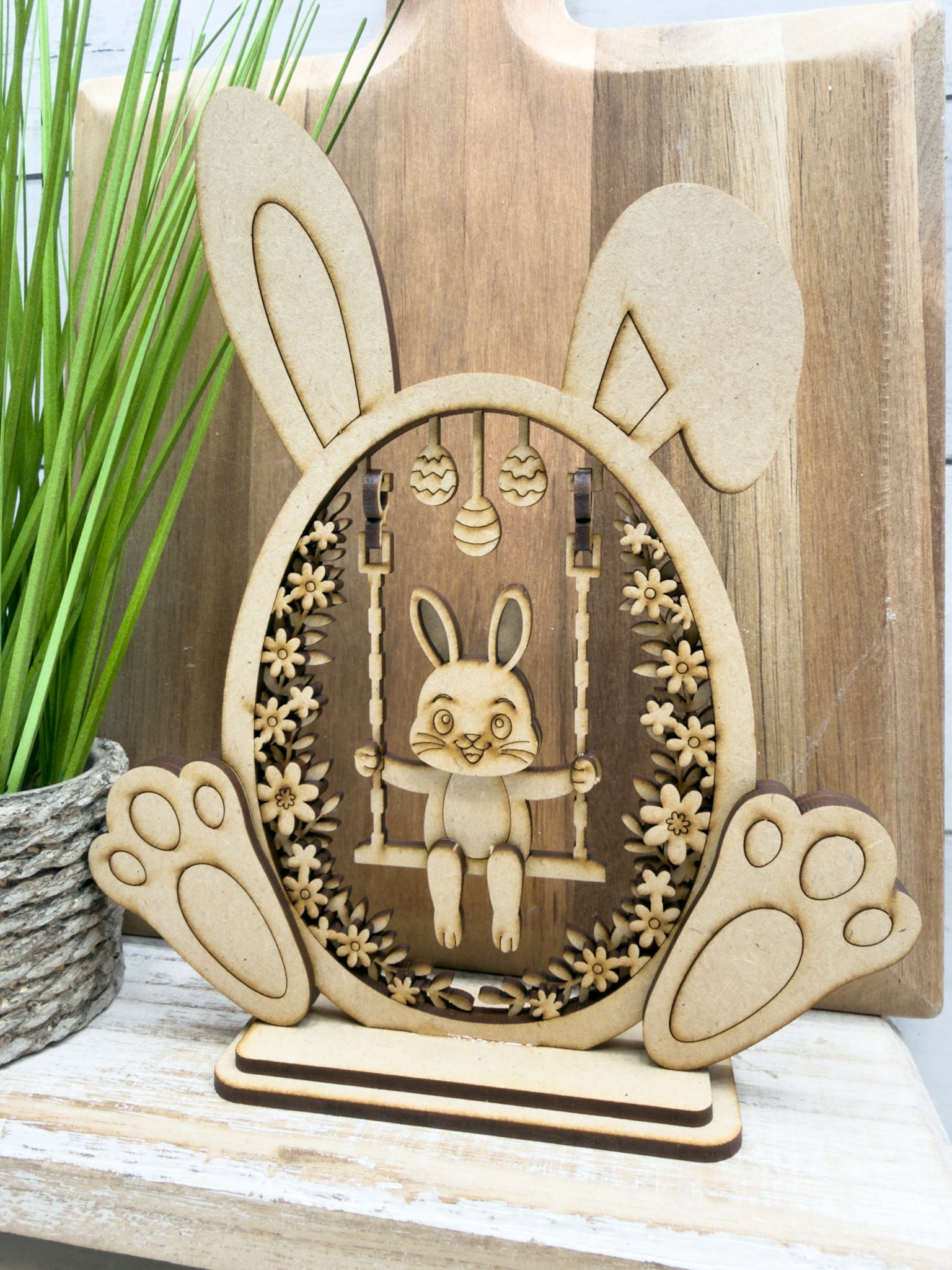 Bring an easter vibe to your decor with this bunny body Swinging bunny DIY Craft Kit! This unique shelf sitter features a cute bunny swinging inside the belly of a bunny body — the perfect blend of holiday and cute.