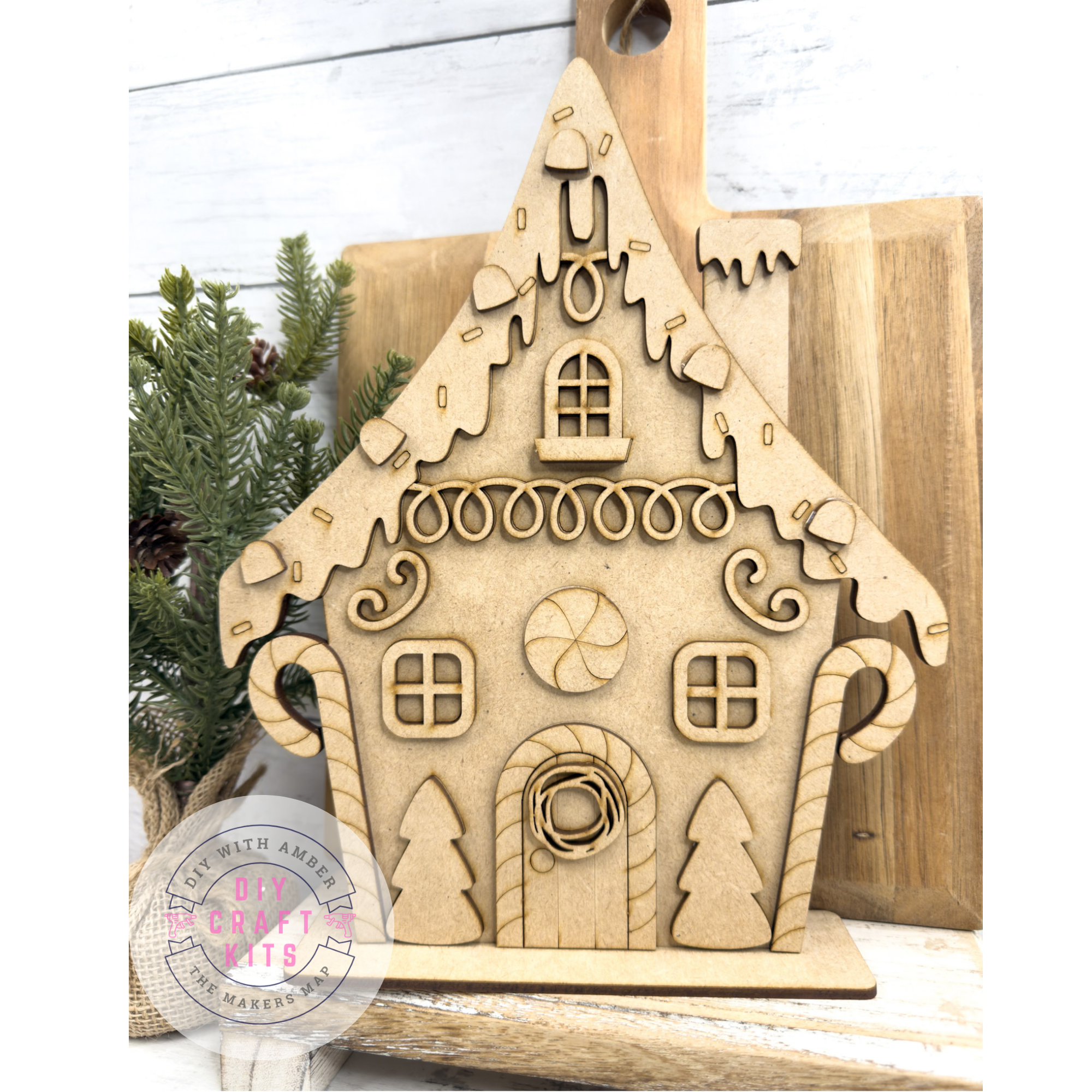 This gingerbread house comes unfinished and ready to decorate, making it an ideal holiday project for families, crafters, or festive workshop activities. Display it on your mantel, shelf, or holiday table for a whimsical touch of Christmas cheer.