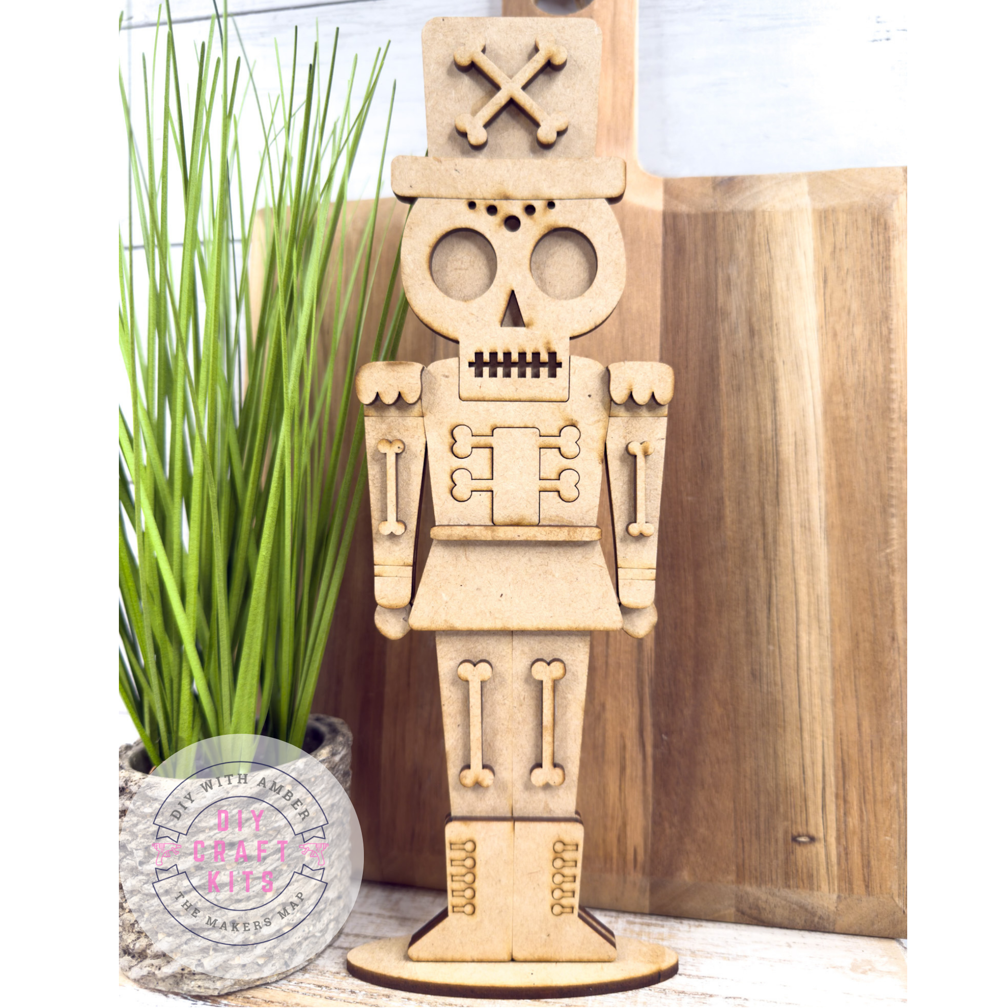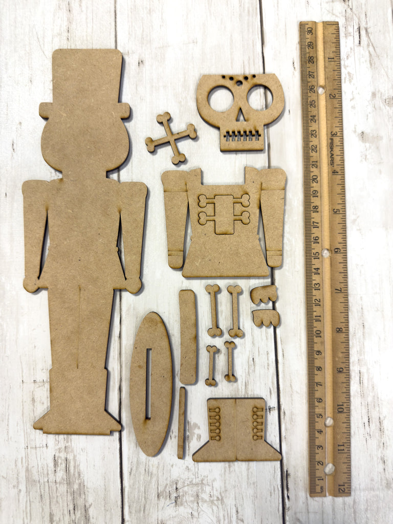 Bring spooky royalty to your Halloween décor with this Skeleton Zombie Nutcracker DIY Craft Kit! This unique design blends the classic nutcracker with a skeleton head with a top hat and crossed bones, complete with bone details on the body and boots.