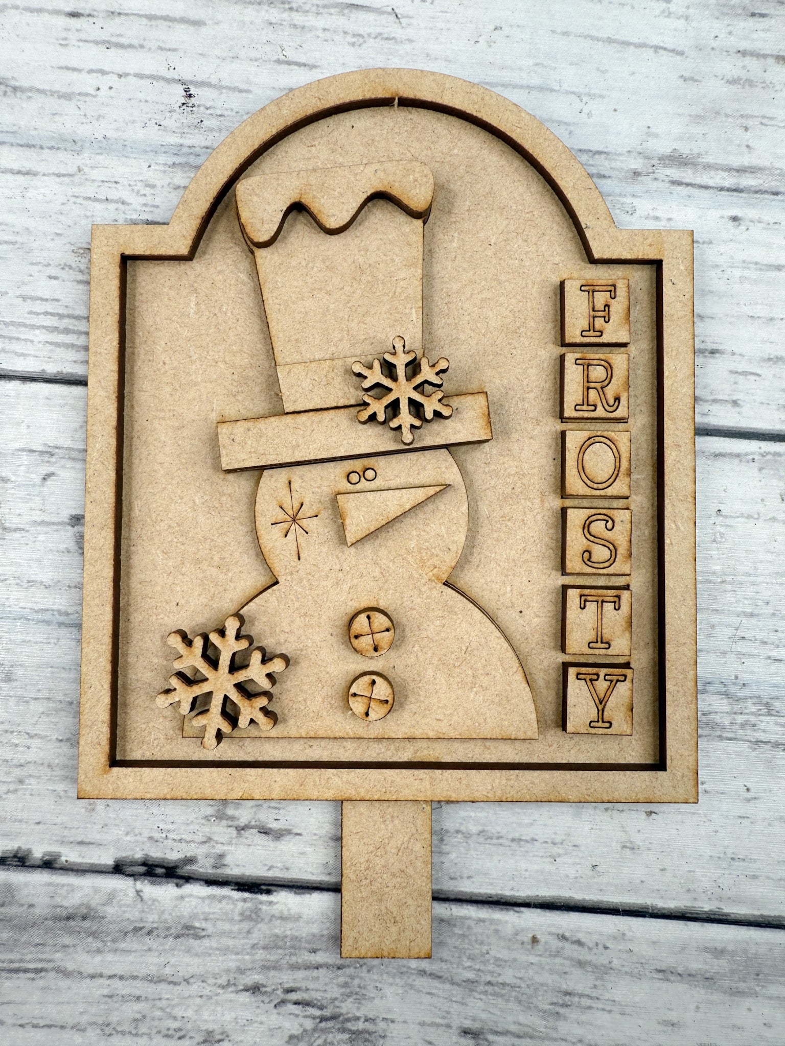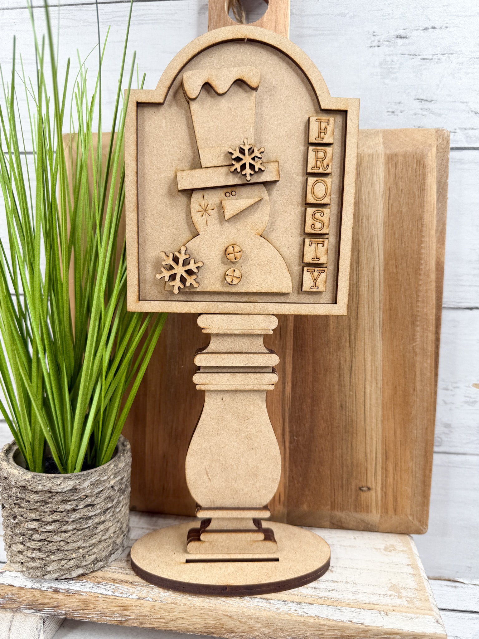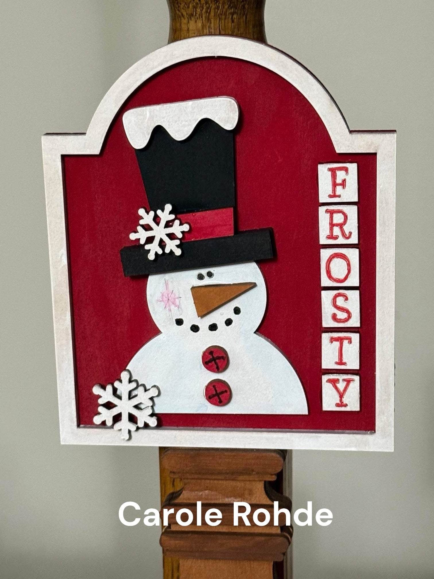 This Frosty Snowman insert for our Interchangeable Spindle Base would look amazing added into your home decor!