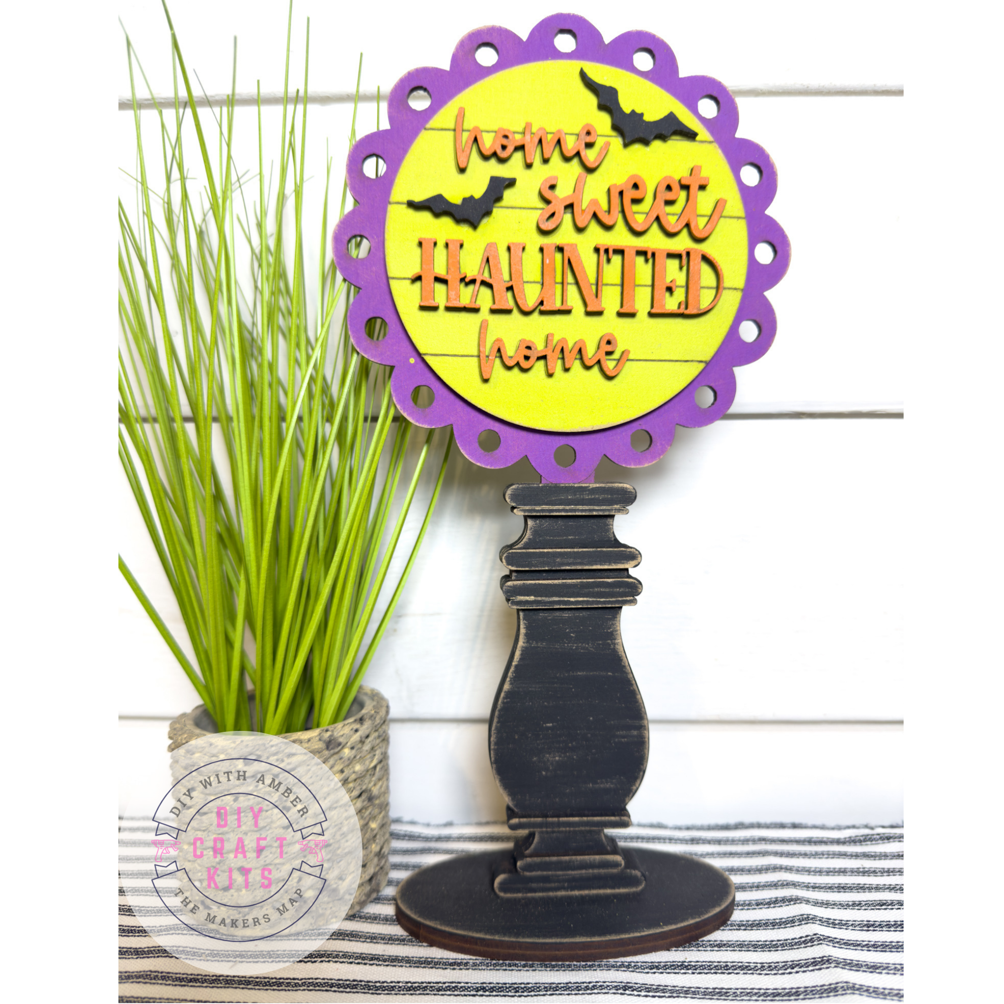 This Scalloped Home Sweet Haunted Home insert for our Interchangeable Spindle Base would look amazing added into your Halloween decor or mixed in with the decor on your shelves.