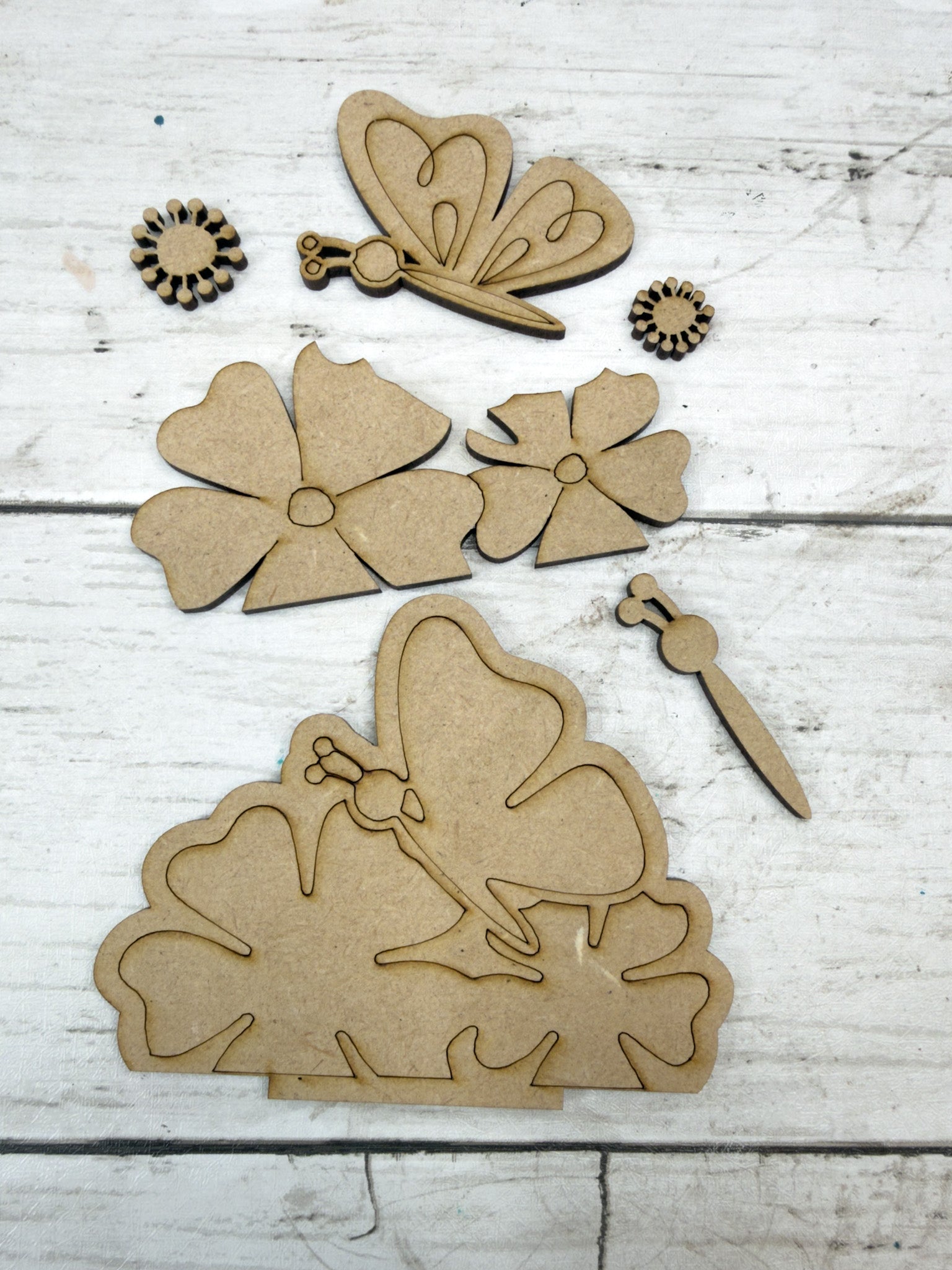 You will only receive the wooden craft kit pieces shown in the photos. Finished, painted examples are for inspiration only.
