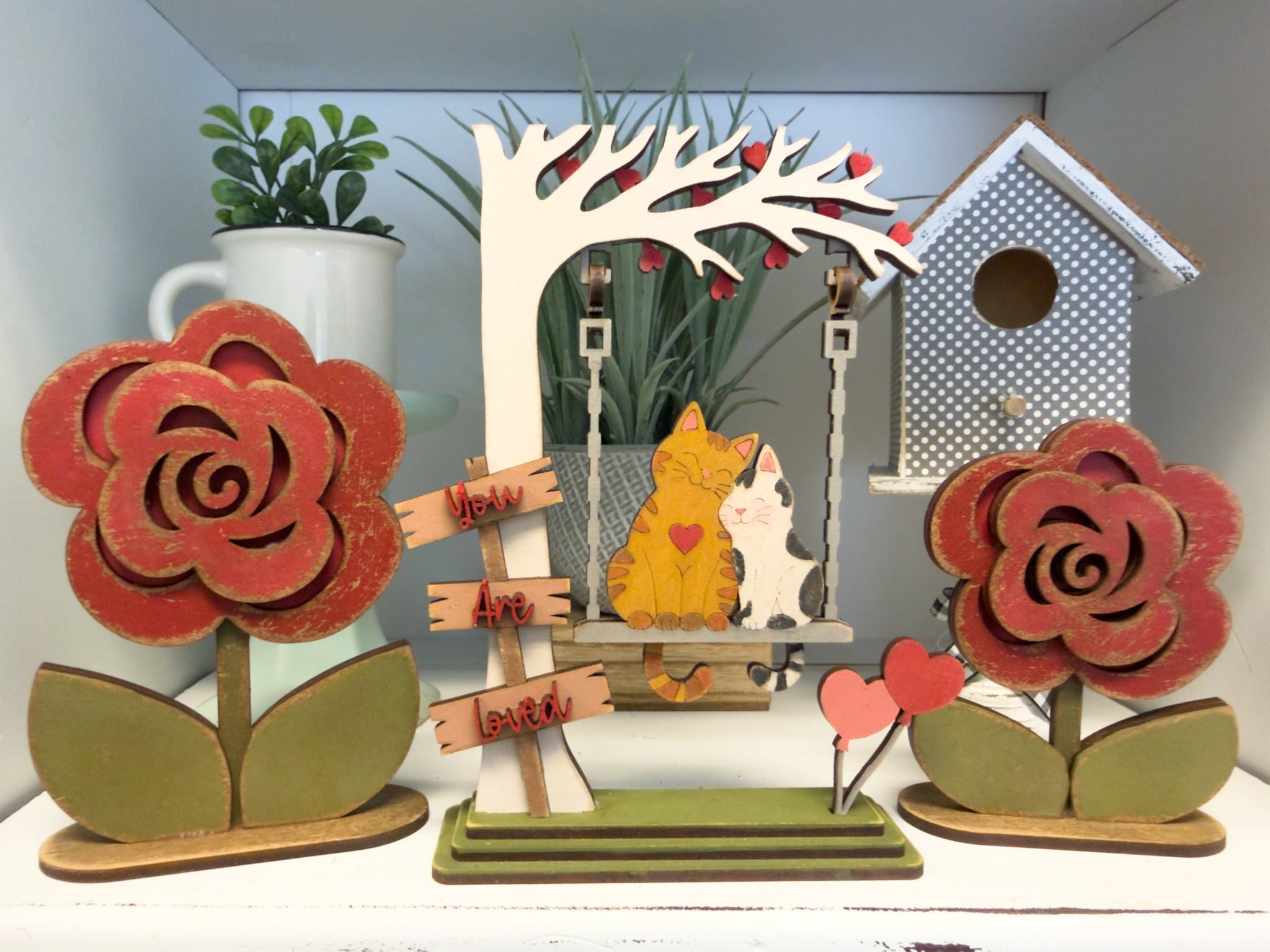 Bring a love filled vibe to your valentines decor with this Swinging cAt couple DIY Craft Kit! This unique shelf sitter features a cUte kitten couple swinging — the perfect blend of holiday and cute.