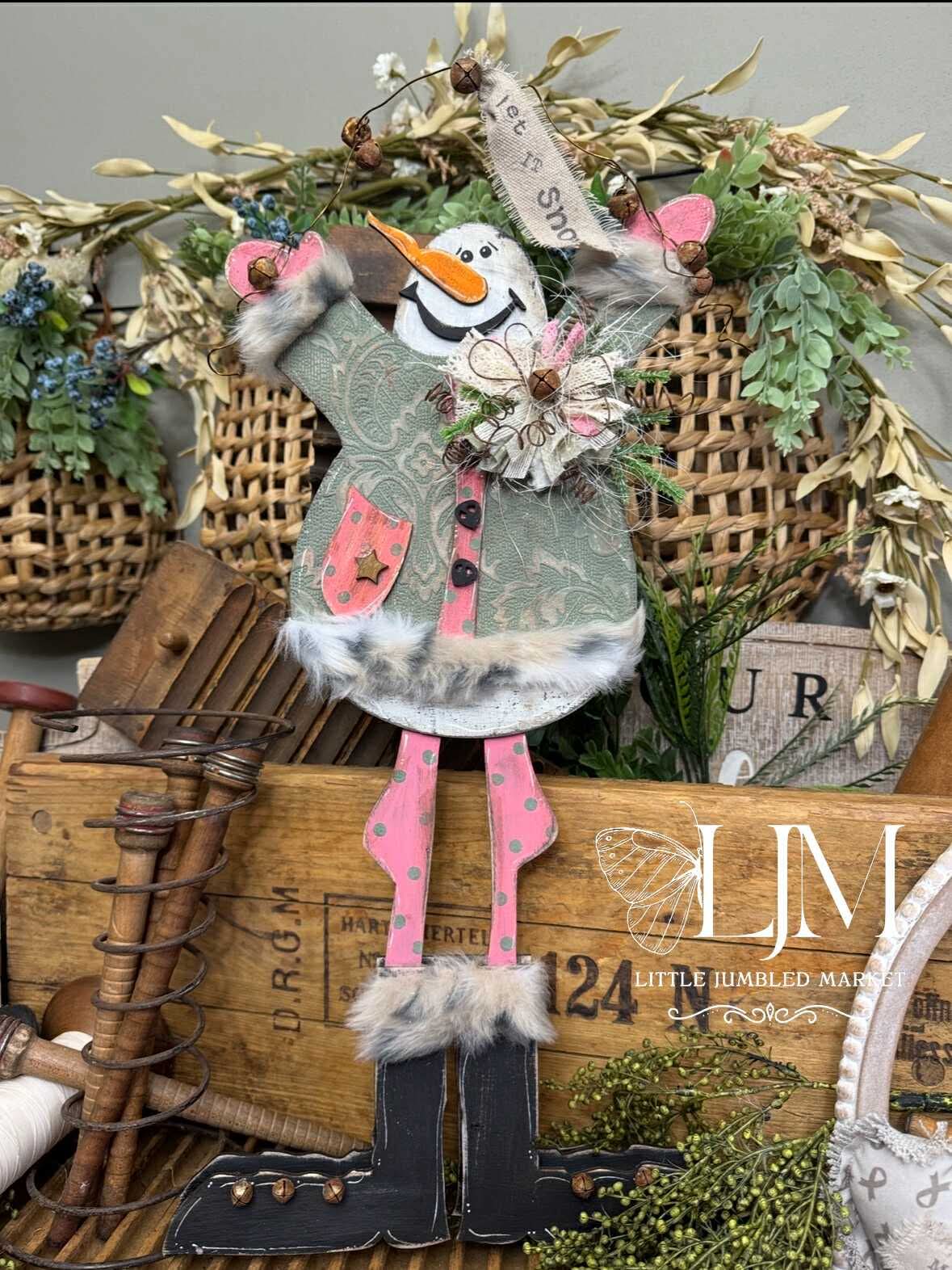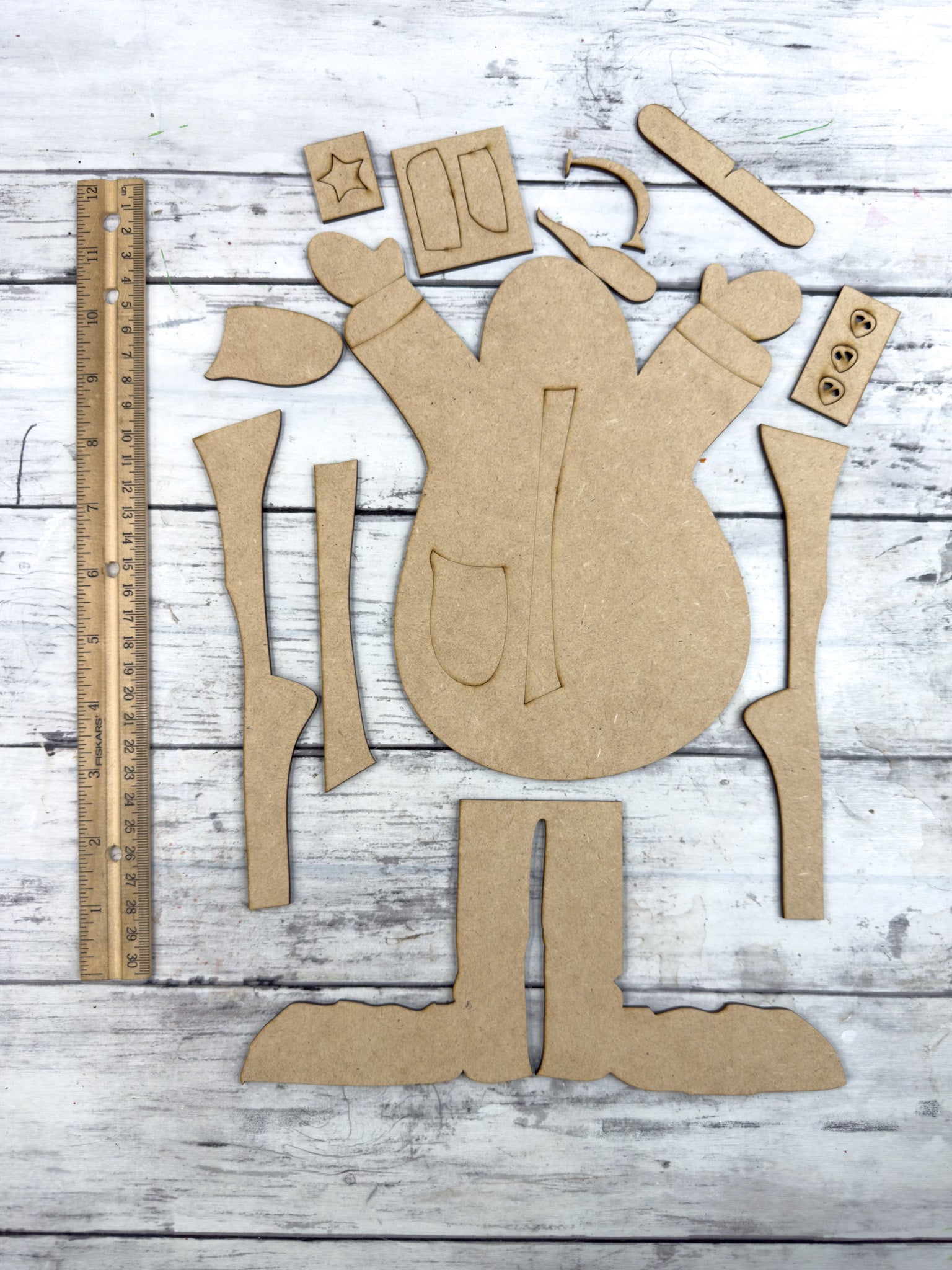 Bring a touch of rustic charm to your holiday crafts with this Tall Cheerful Primitive Snowman Leaner DIY Kit. This unfinished wood cutout features a whimsical snowman design with raised details like mittens, buttons, a pocket, and tall boots—perfect for painting, staining, or embellishing to match your seasonal style.