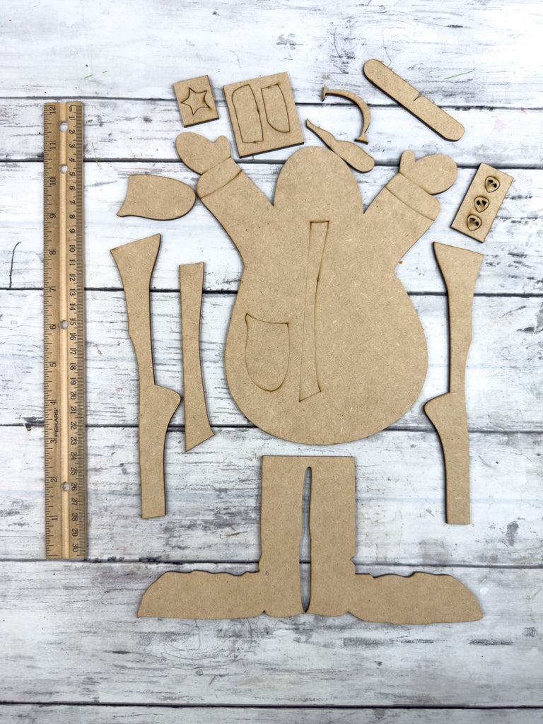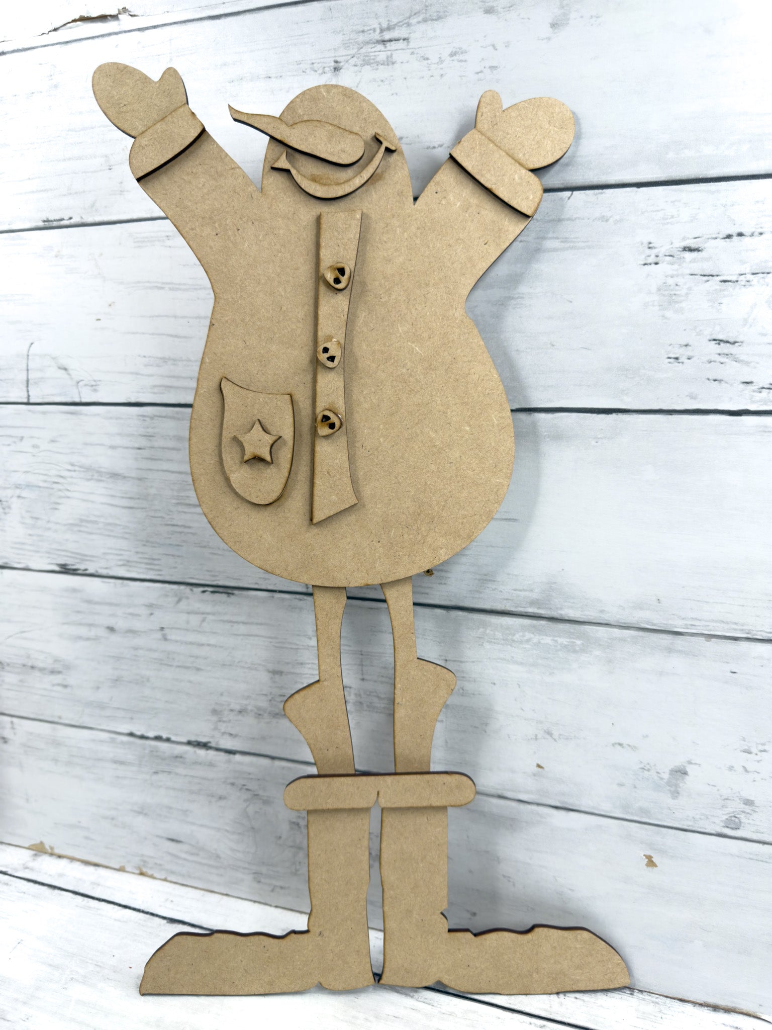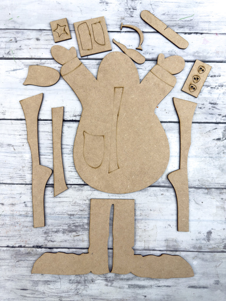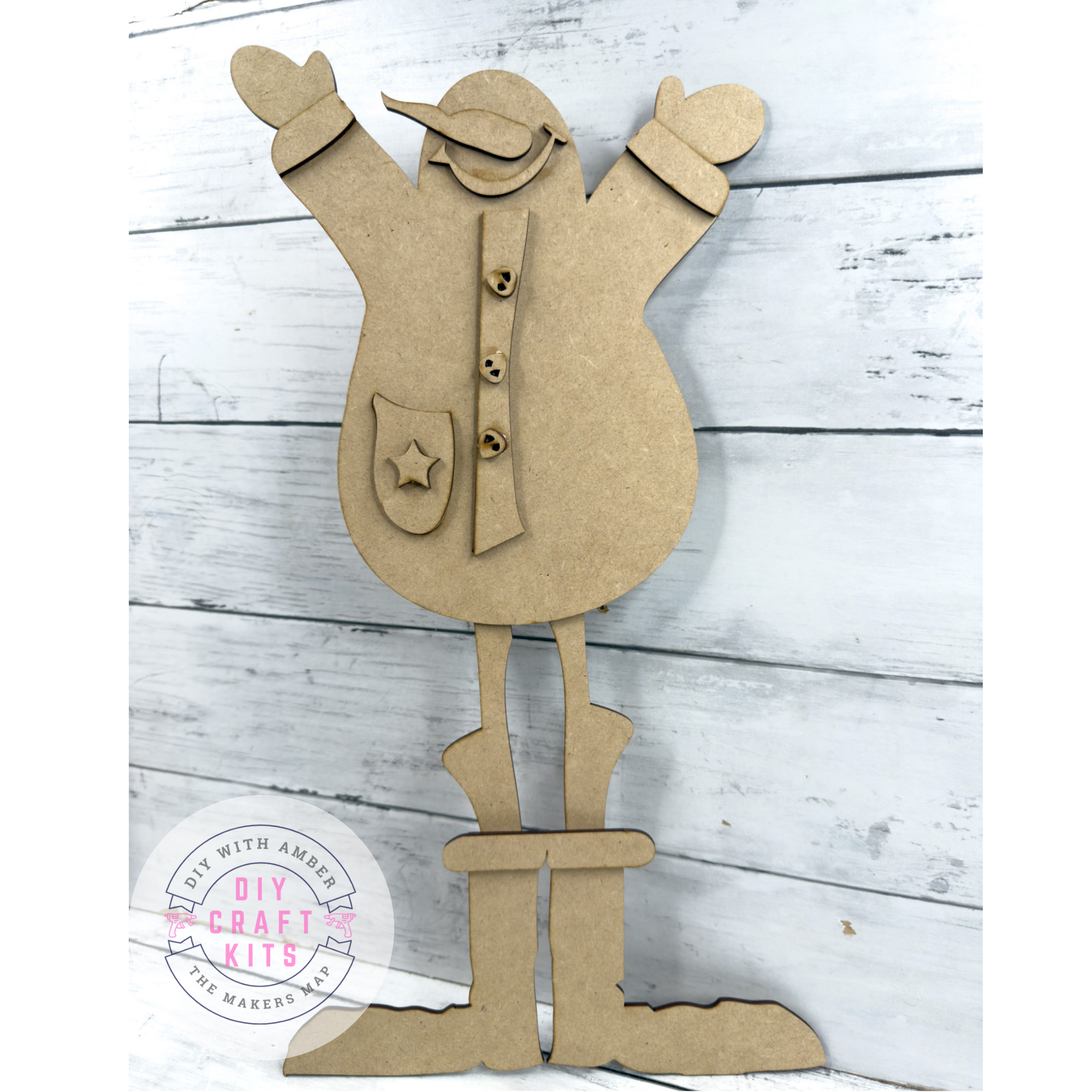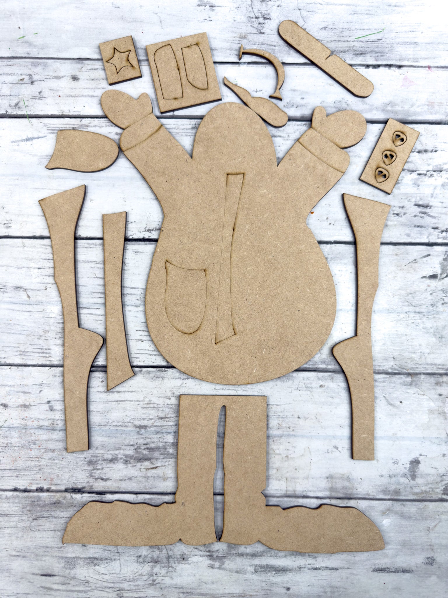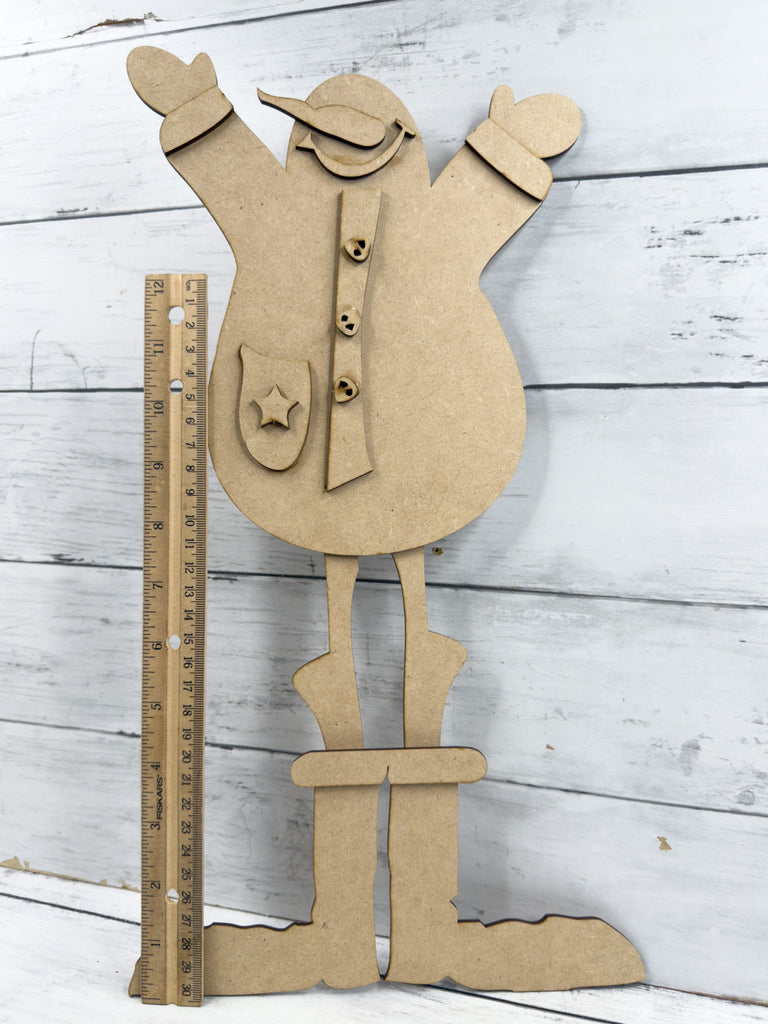 Crafted from smooth laser-cut HDF, this snowman leaner arrives unfinished and ready for your creative touch. Use it as a festive porch leaner, indoor holiday decoration, or a fun project for winter crafting workshops.