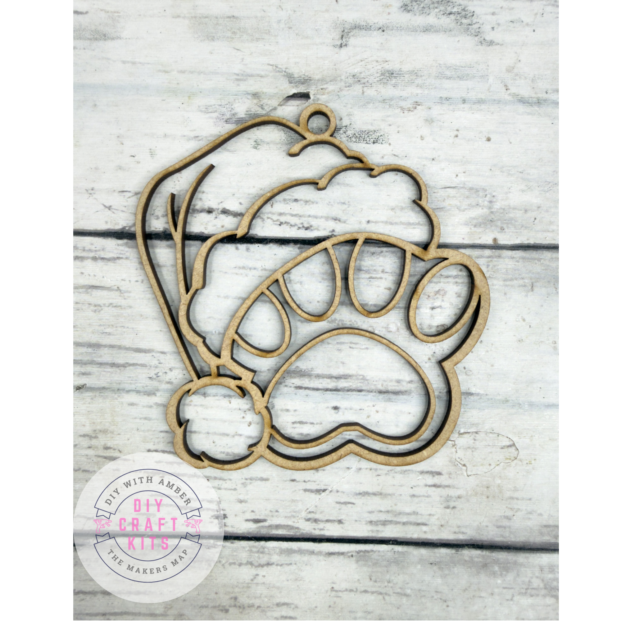 This Hollow Paw Print Santa Hat Ornament is a simple way to add creativity to your holiday season. Laser cut from smooth 1/8” HDF and measuring about 4 inches tall, it’s the perfect size for hanging on your tree, tying onto a gift, or turning into a handmade keepsake.