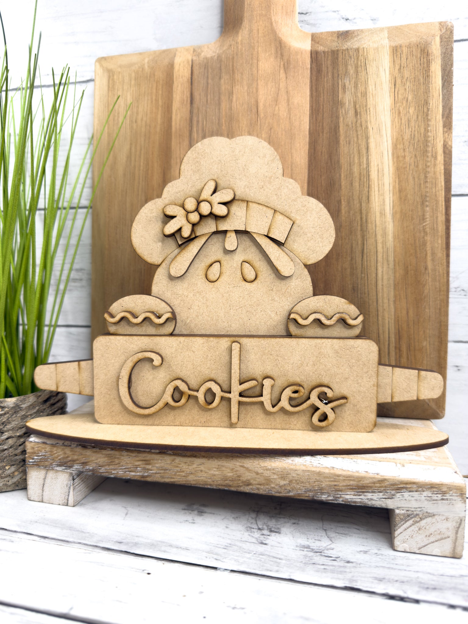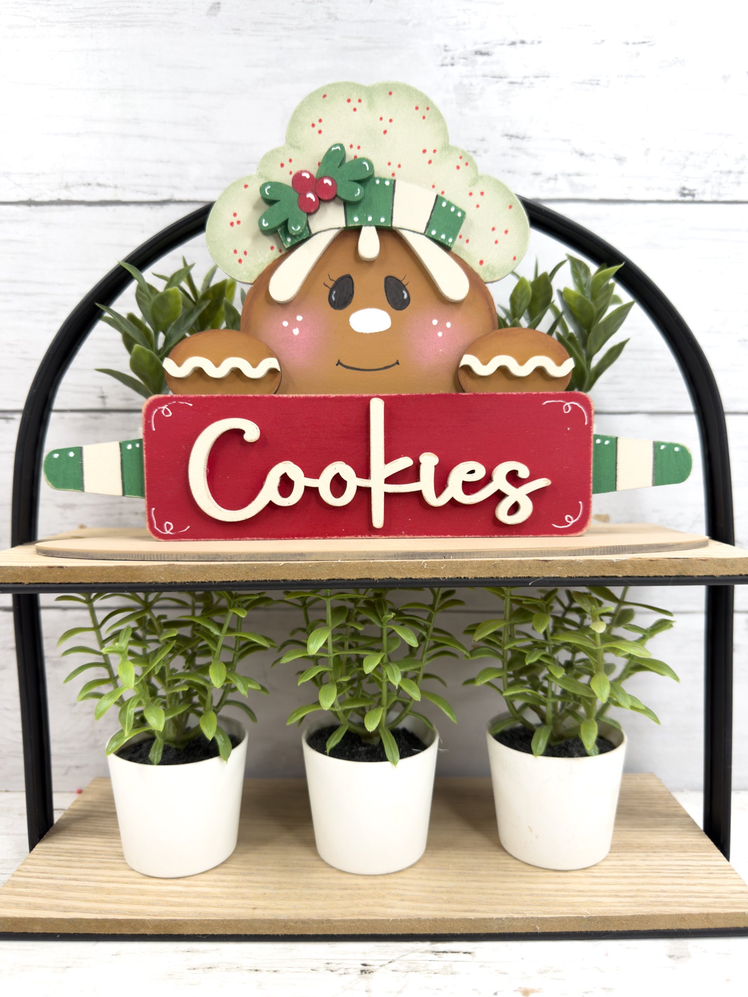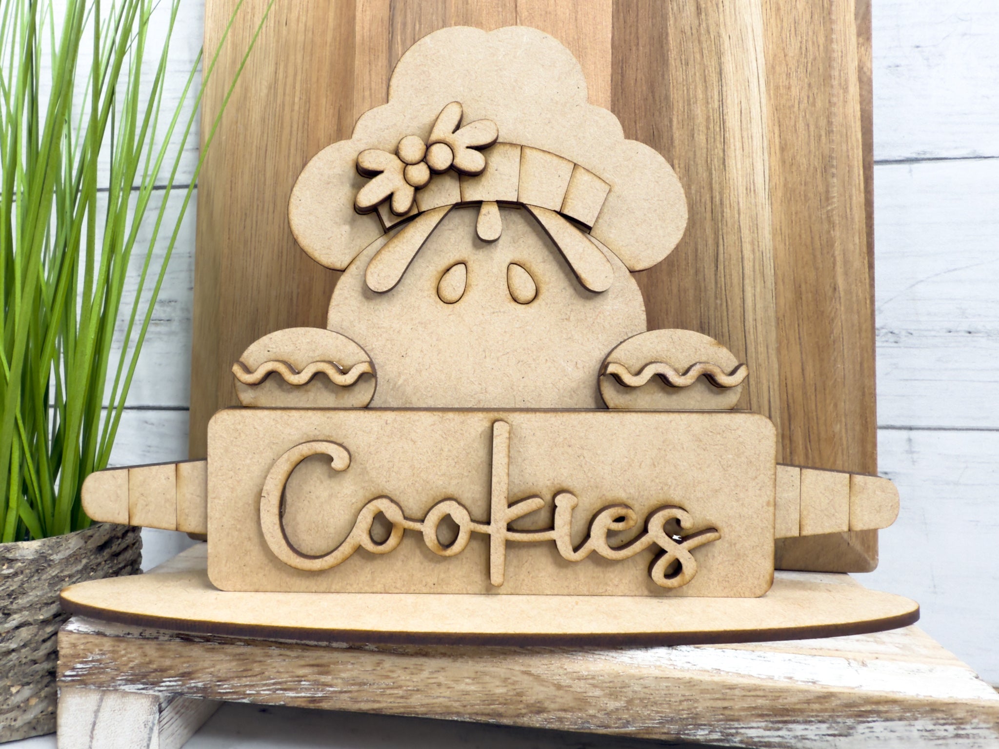 Sweeten up your holiday décor with this Gingerbread Cookies Shelf Sitter DIY Wood Kit 🍪🎄. Featuring an adorable gingerbread head with a chef’s hat and a “Cookies” sign, this piece is perfect for kitchens, coffee bars, or holiday baking displays.