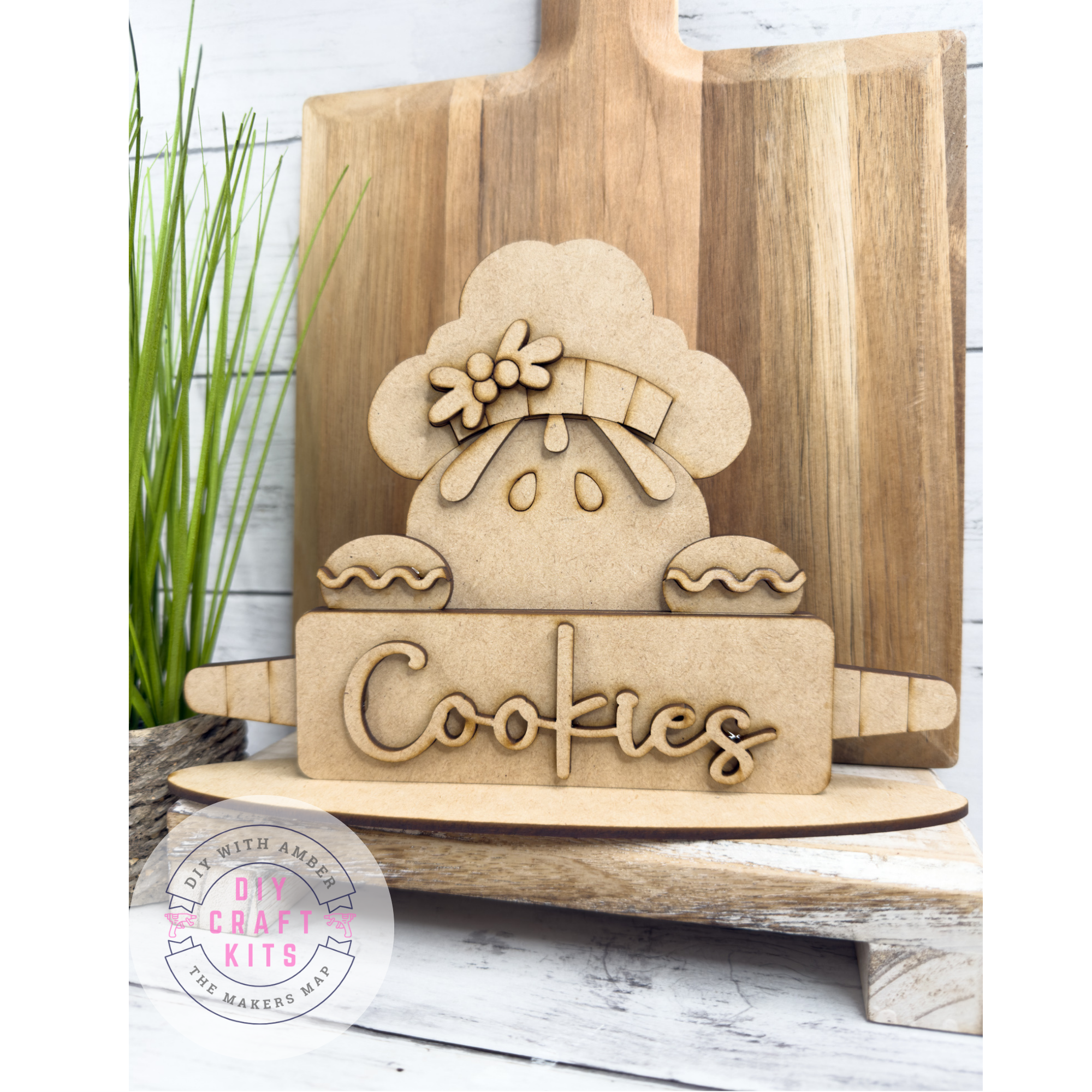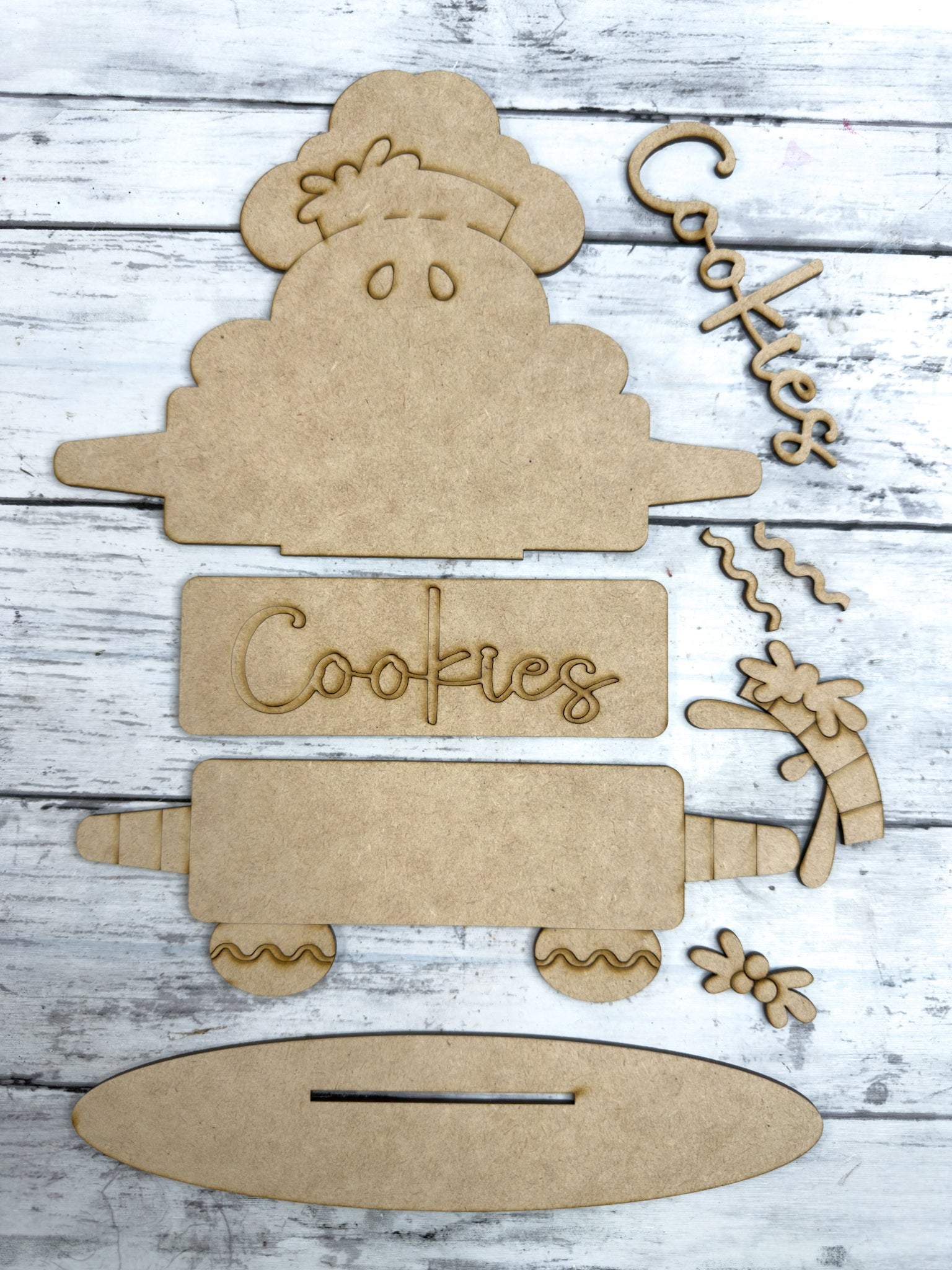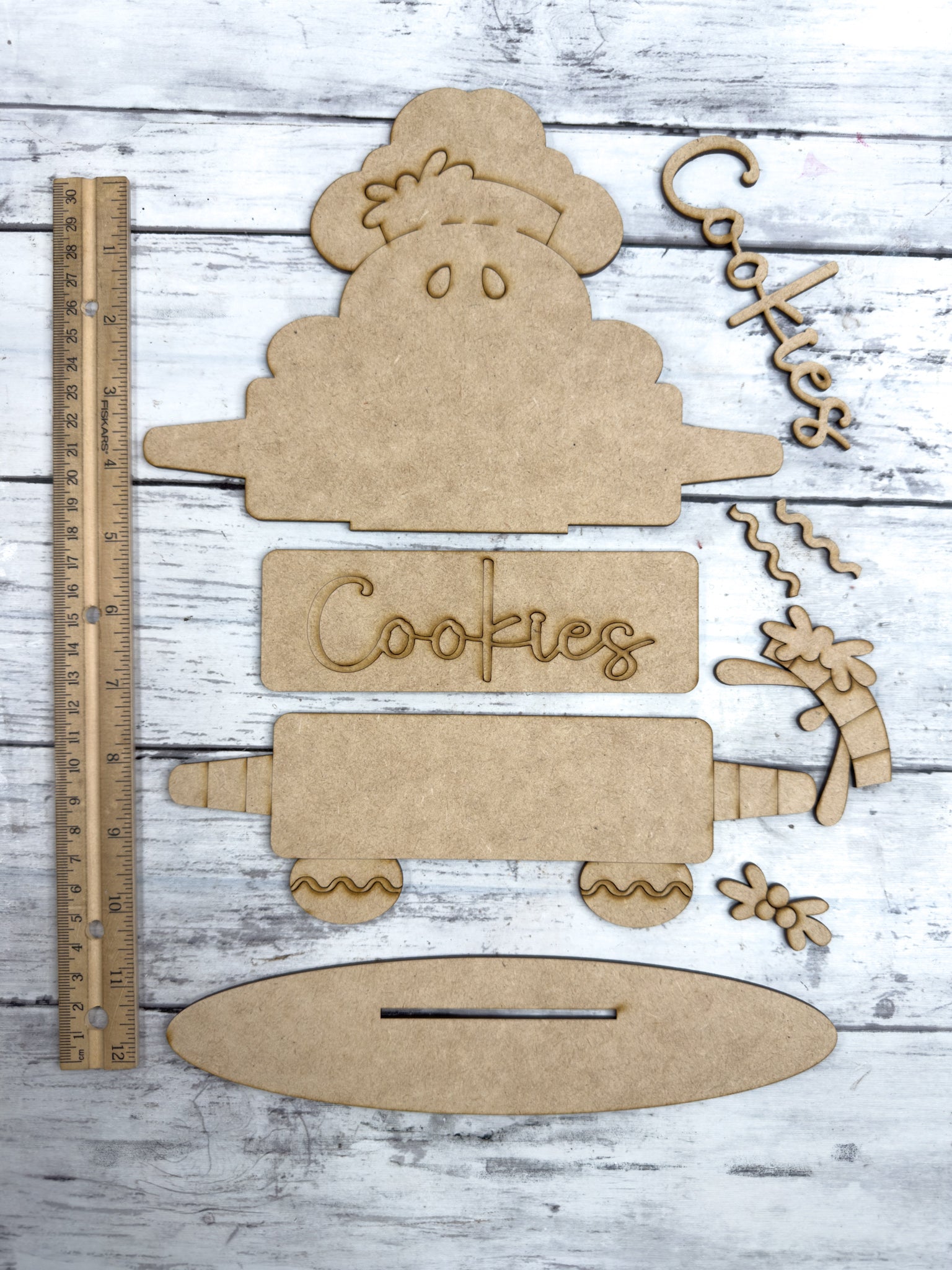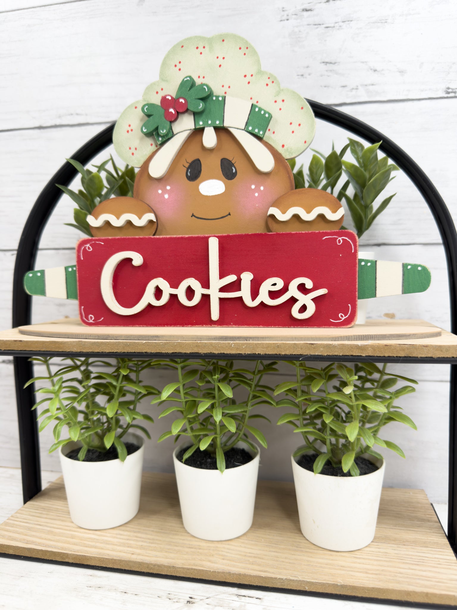 Sweeten up your holiday décor with this Gingerbread Cookies Shelf Sitter DIY Wood Kit 🍪🎄. Featuring an adorable gingerbread head with a chef’s hat and a “Cookies” sign, this piece is perfect for kitchens, coffee bars, or holiday baking displays.