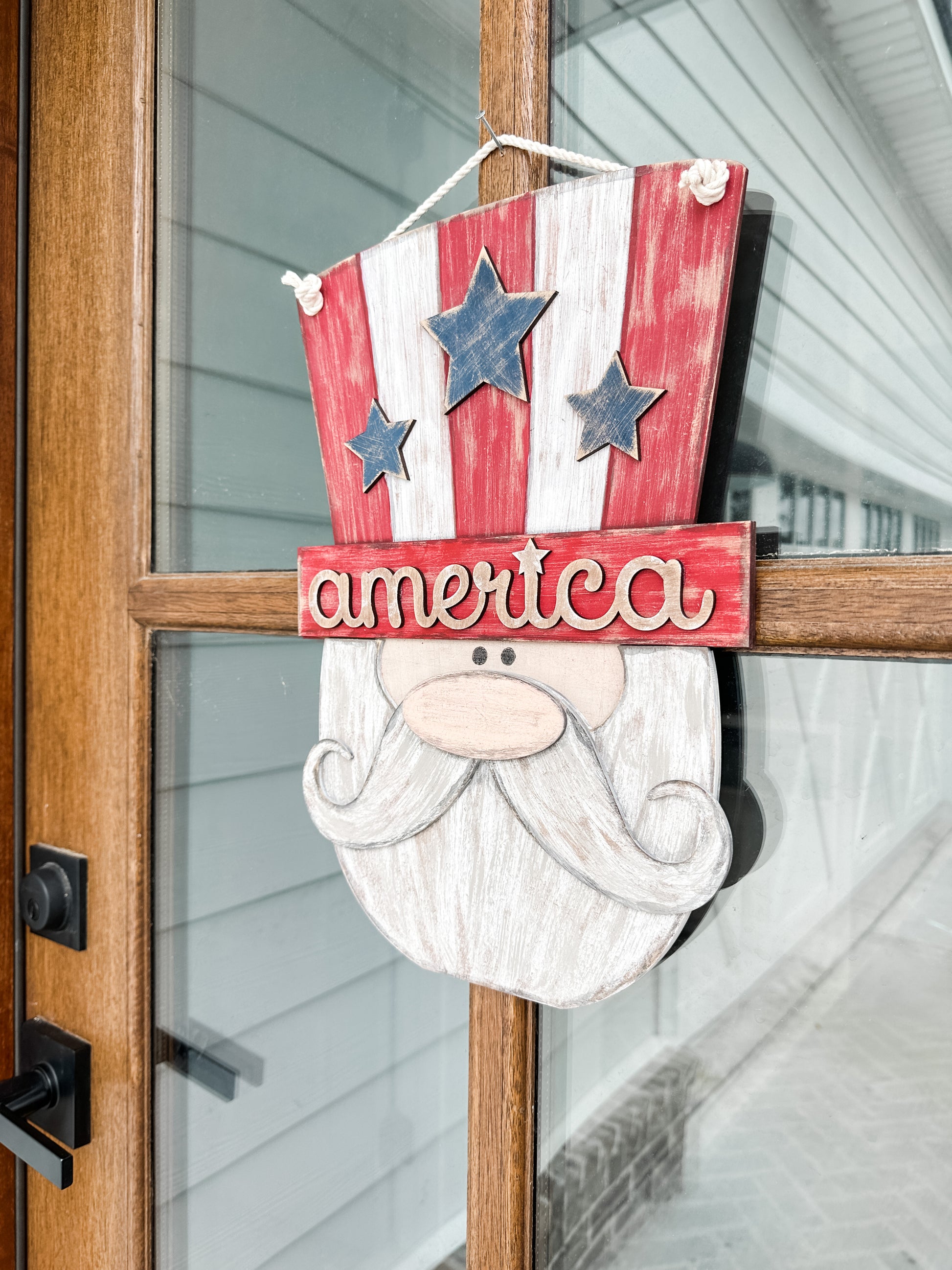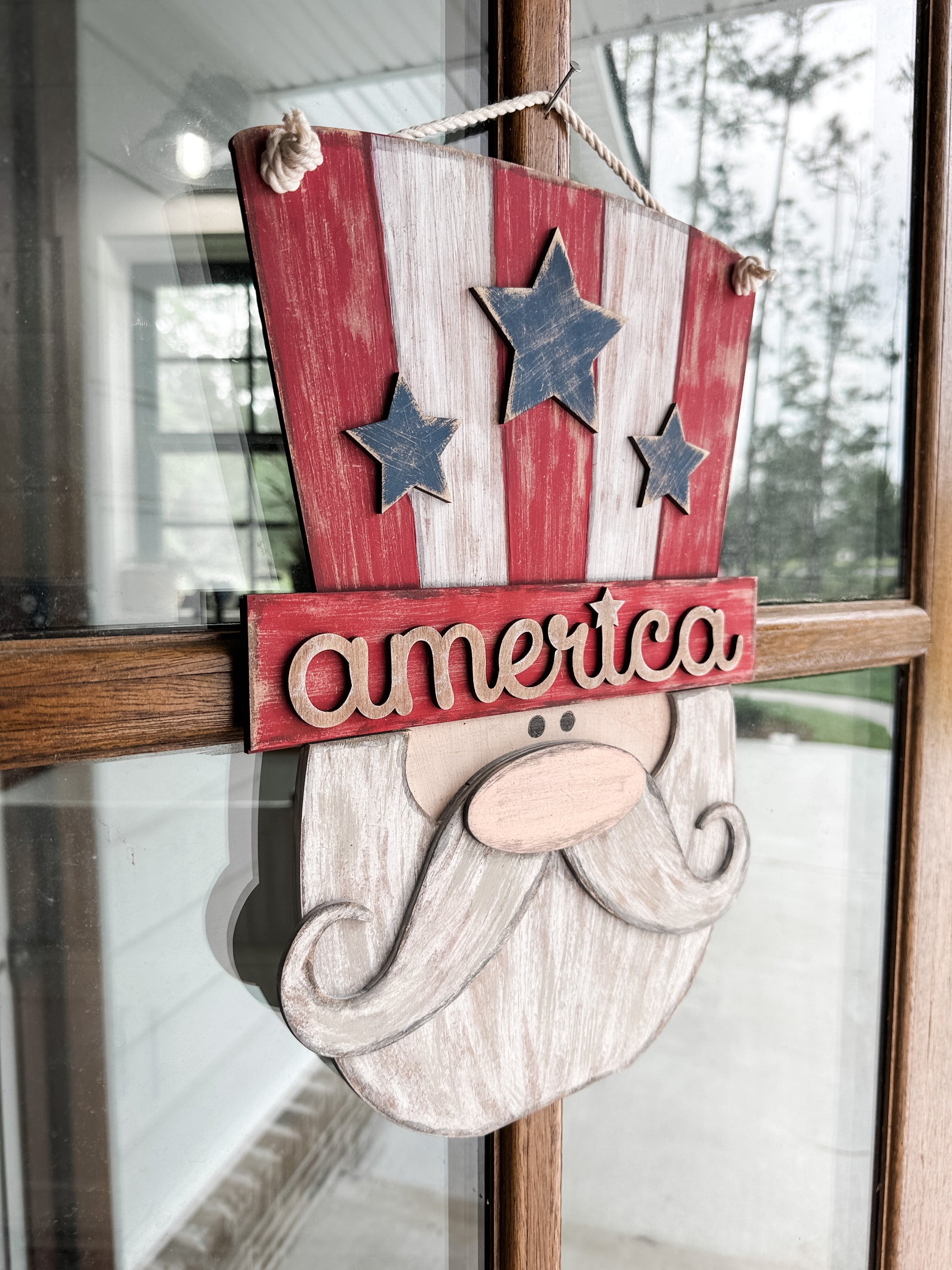 This Uncle Sam Patriotic Door Hanger Sign DIY Craft Kit is the perfect addition to your Fourth of July Decorations!