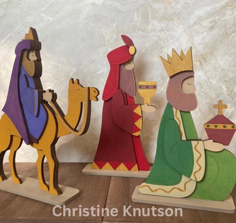 Each wise man is cut in layered detail to bring this nativity scene to life – just add paint, stain, or glitter to make it shine!
